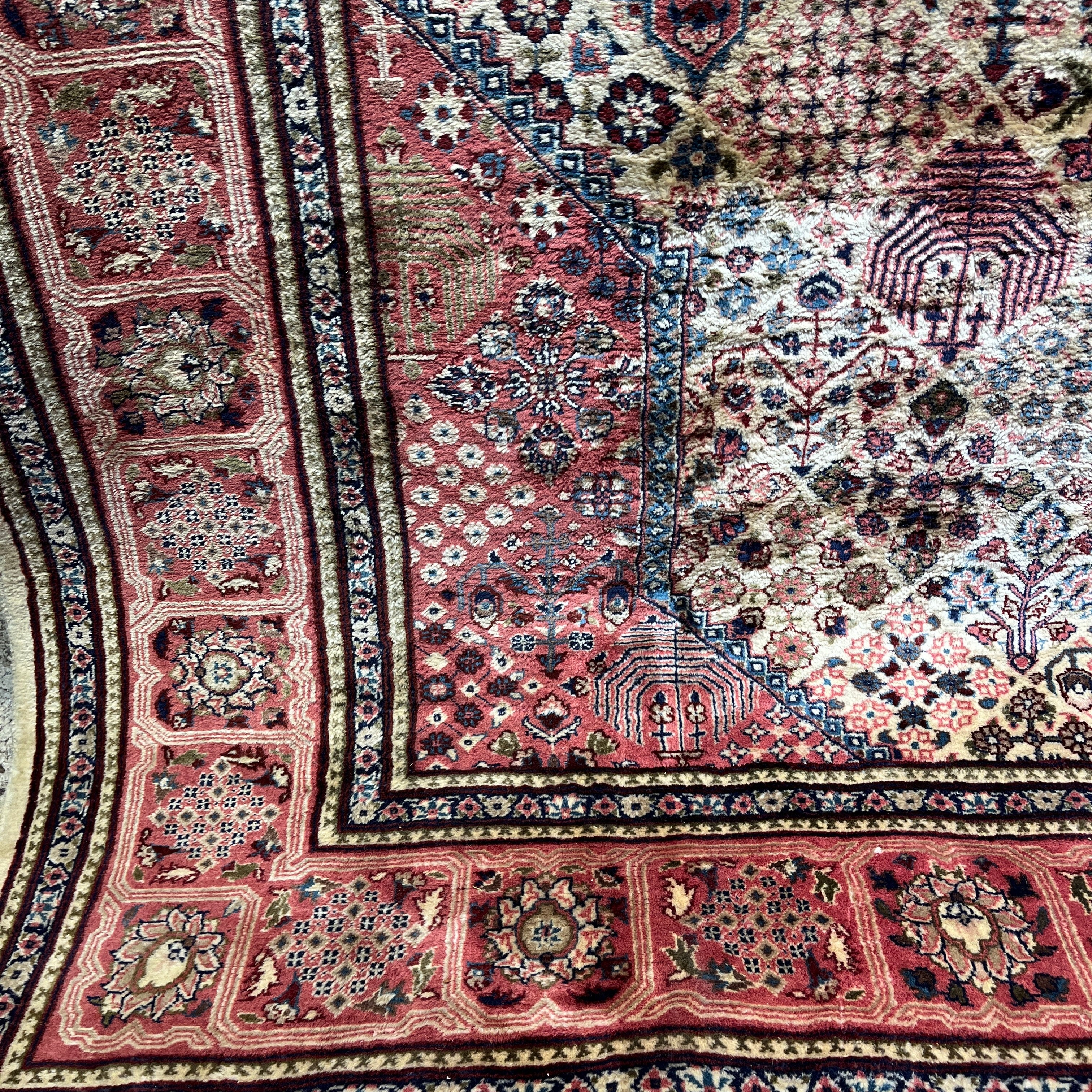 Alfombra Persa Bijar patrones rosa y marfil 360x275