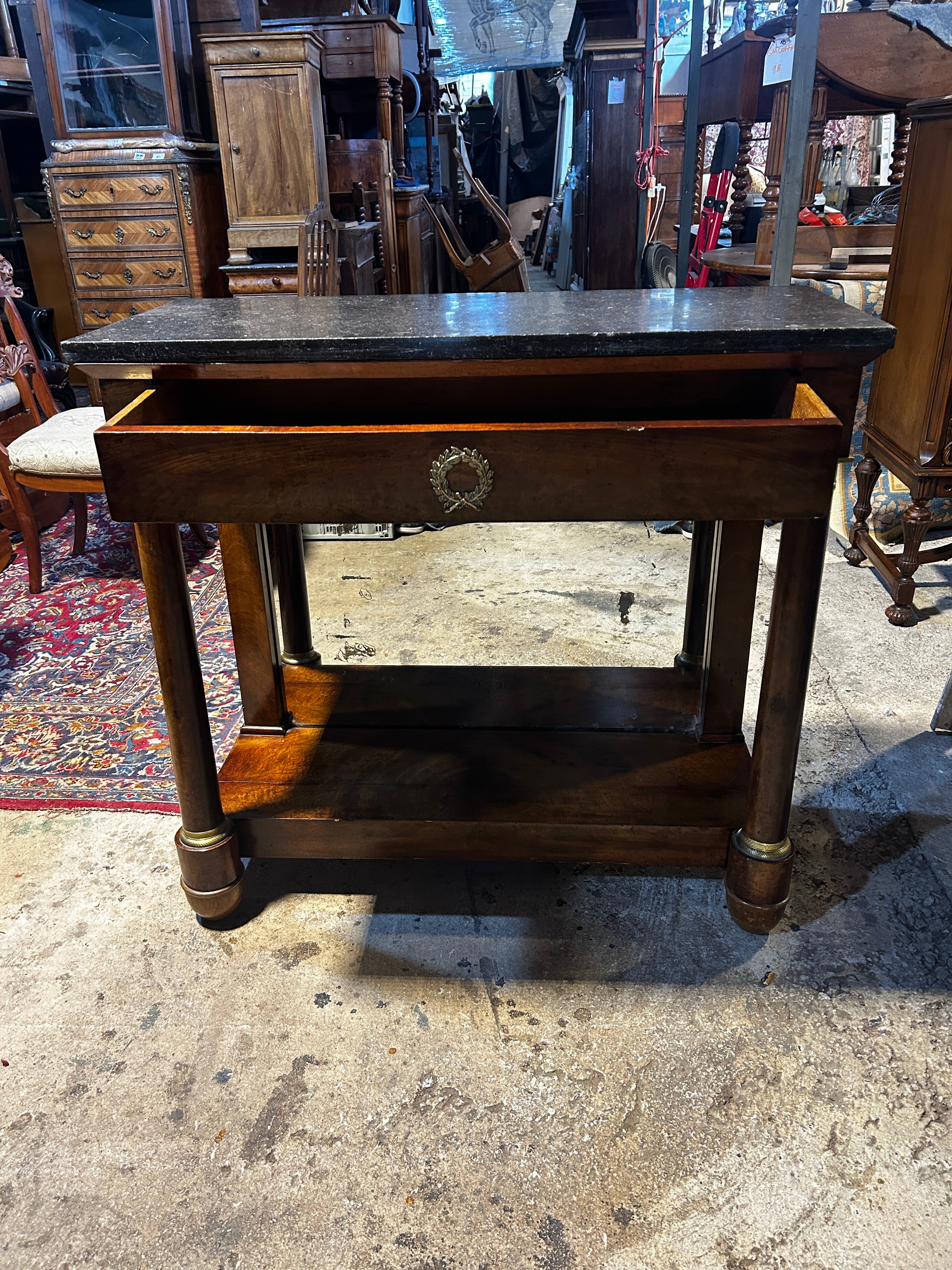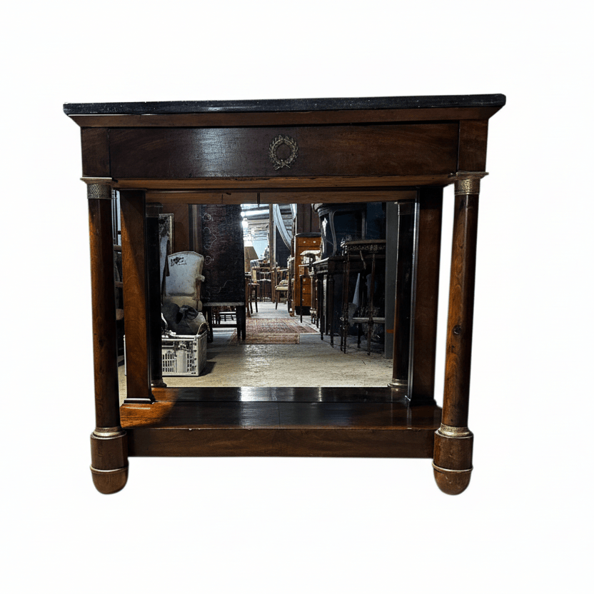 Arrimo francés imperio en caoba con espejo y cubierta de marmol