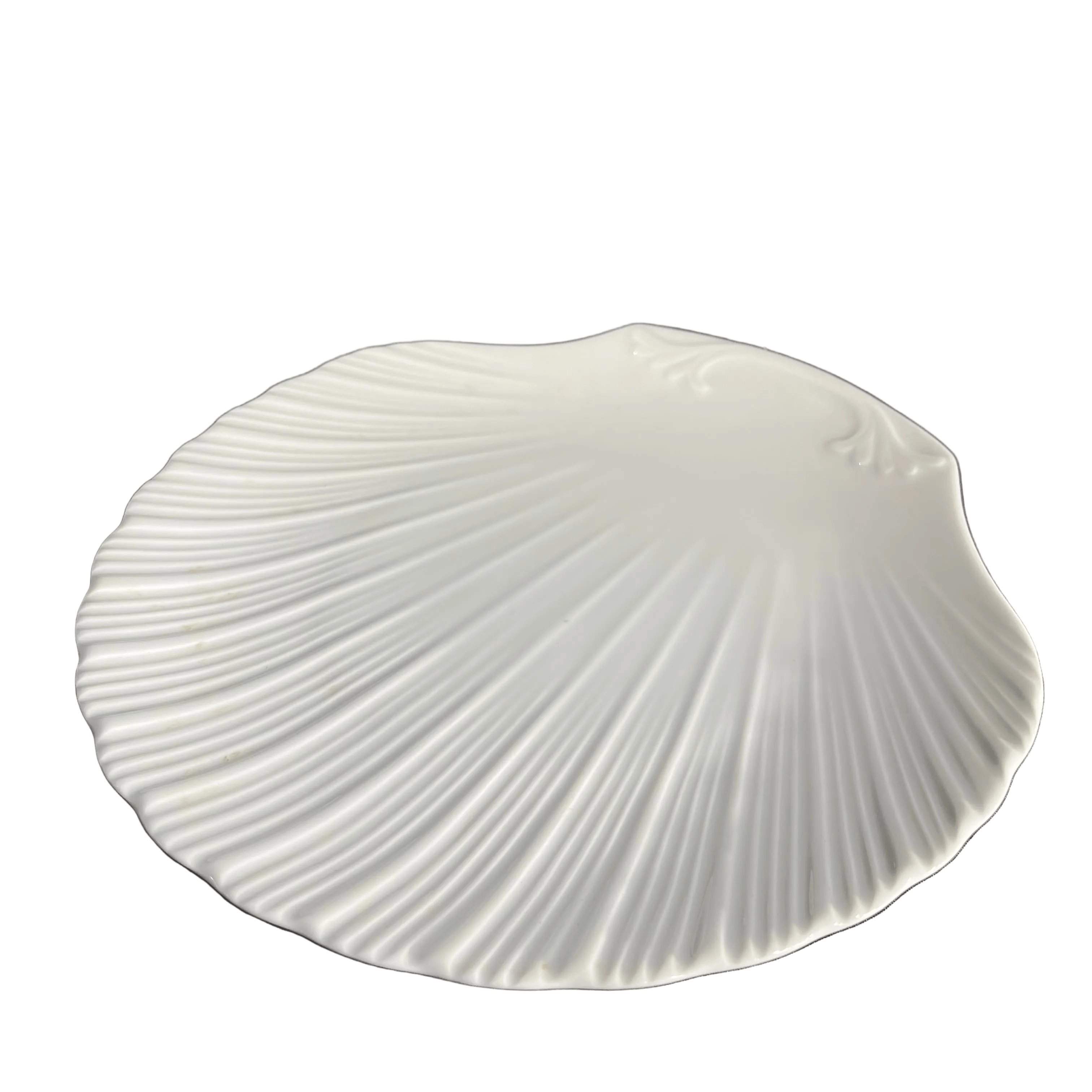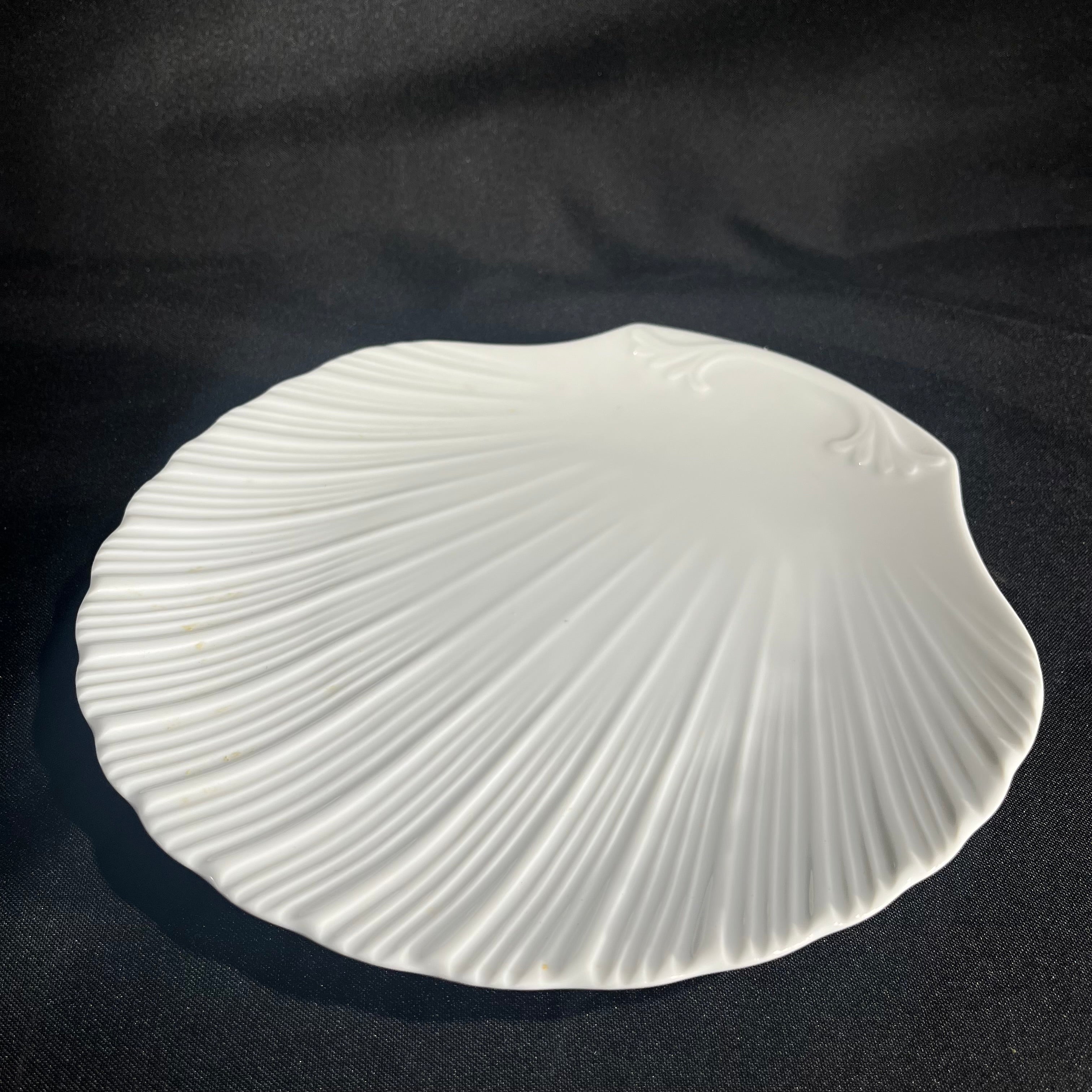 Especiales platos para ostras y mariscos de porcelana en forma de concha de ostión.