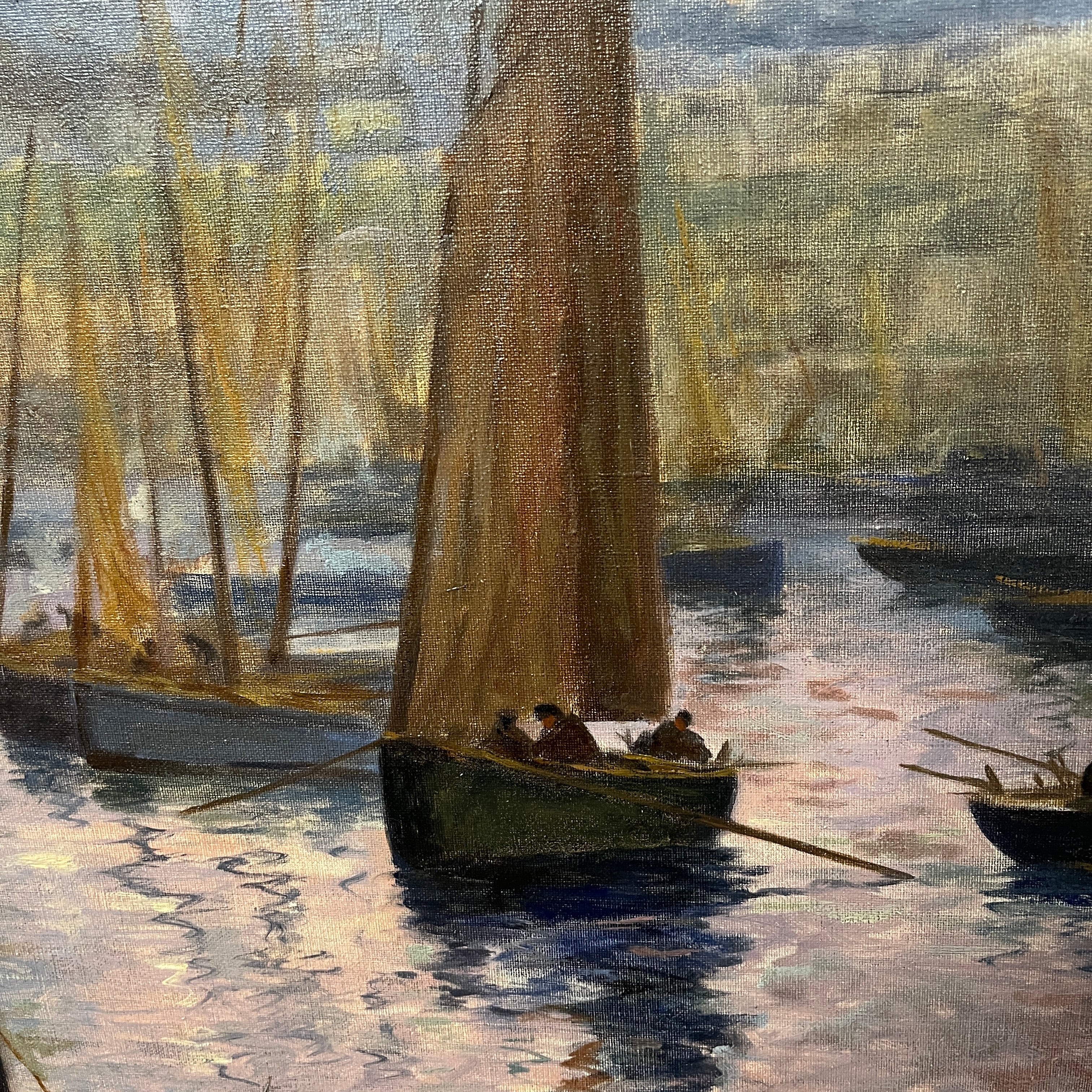Andrés Madariaga - Óleo sobre tela ‘Puerto de botes a vela’