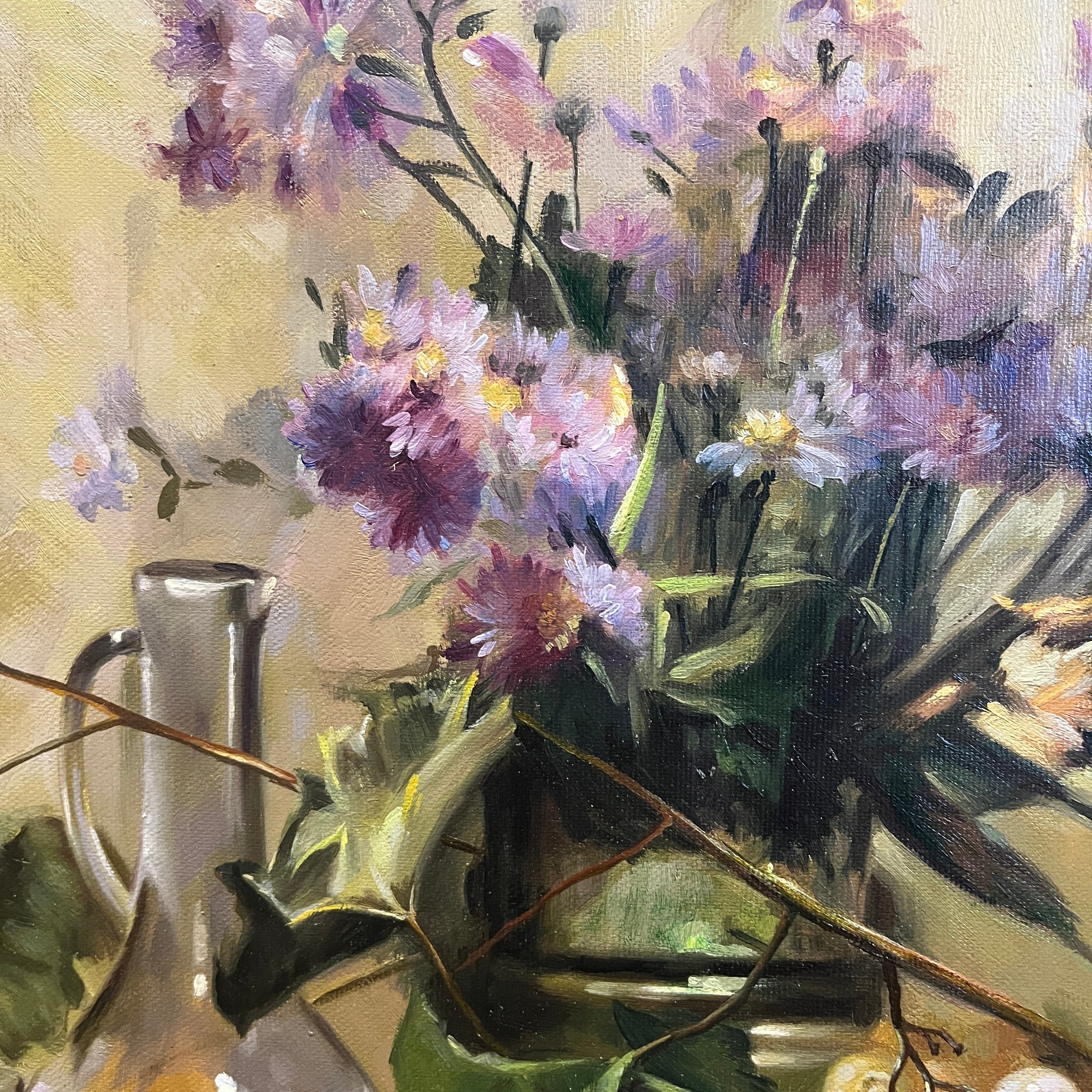 Laurent Brunel-Neuville - Óleo sobre tela bodegón ‘Flores y frutas’