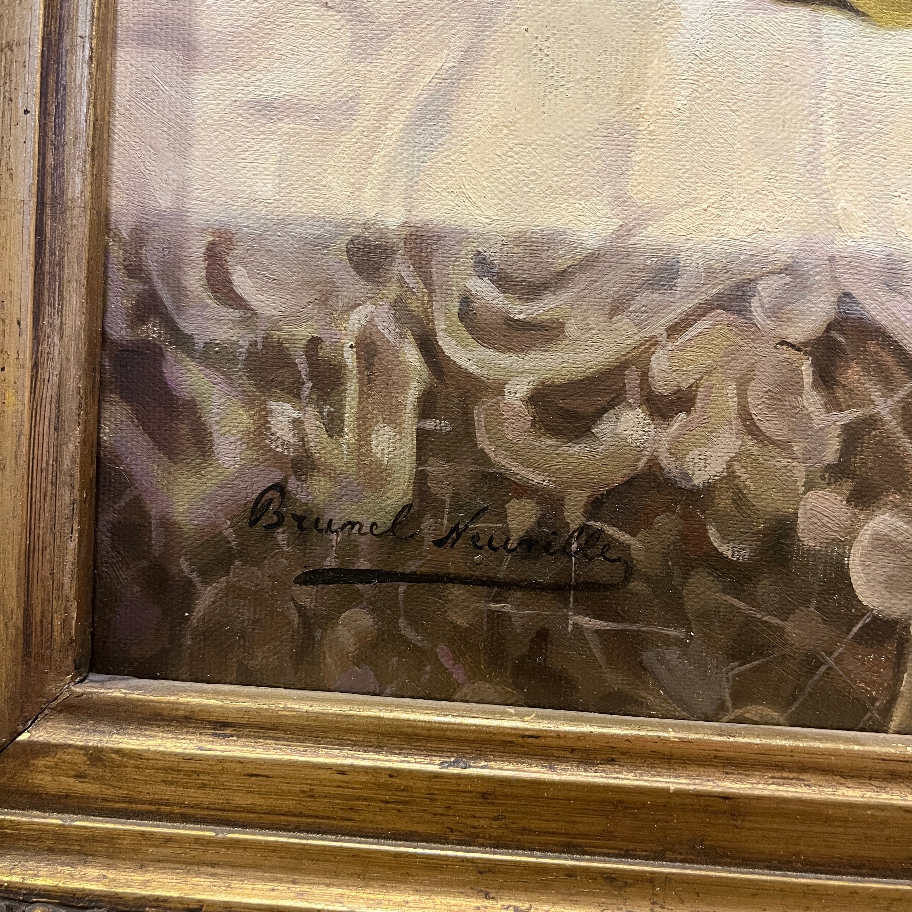 Laurent Brunel-Neuville fue un prolífico pintor parisino de finales del siglo XIX y principios del XX, famoso por su estilo realista y académico, con elementos reconocibles en su obra como los bodegones, los utensilios de cocina y los gatos.