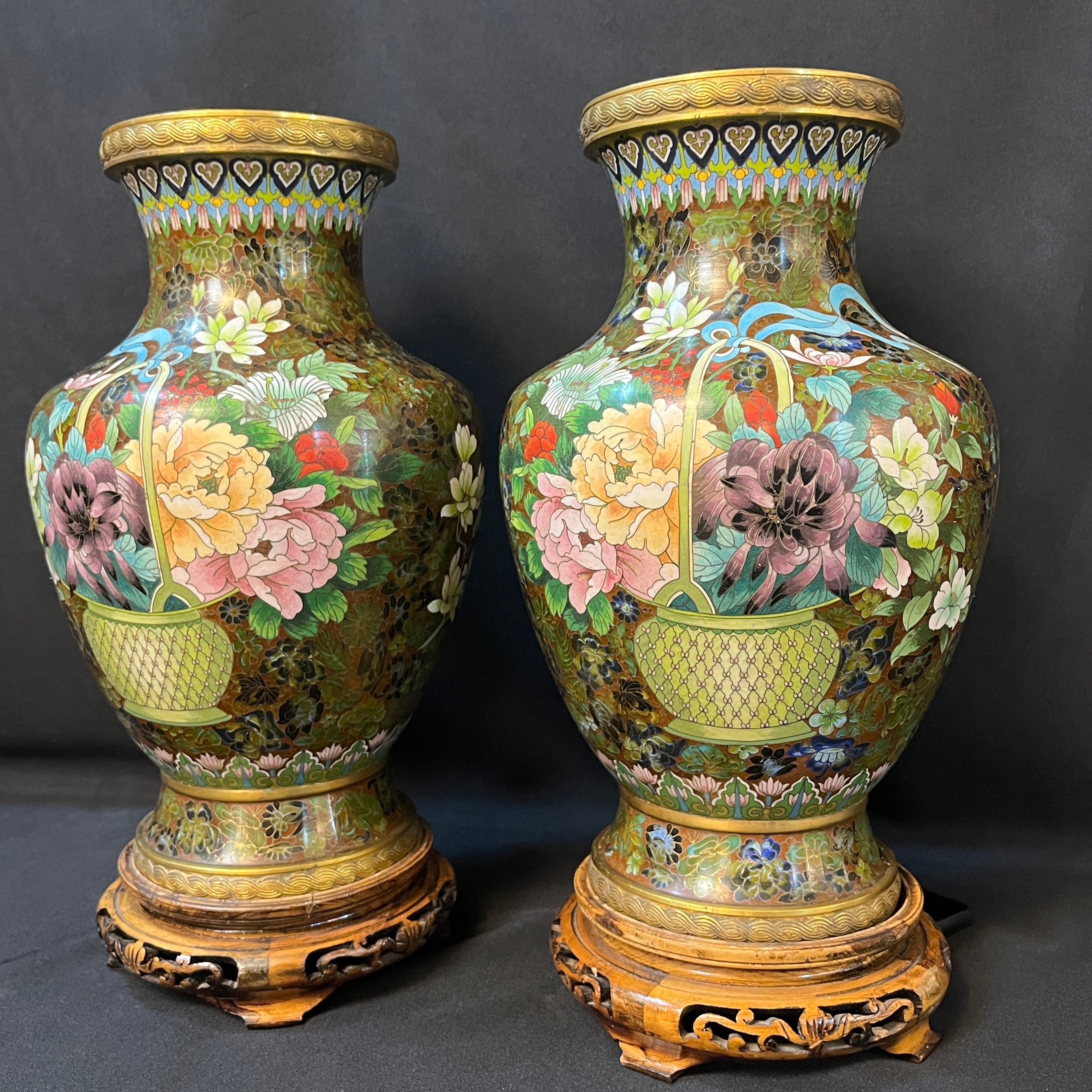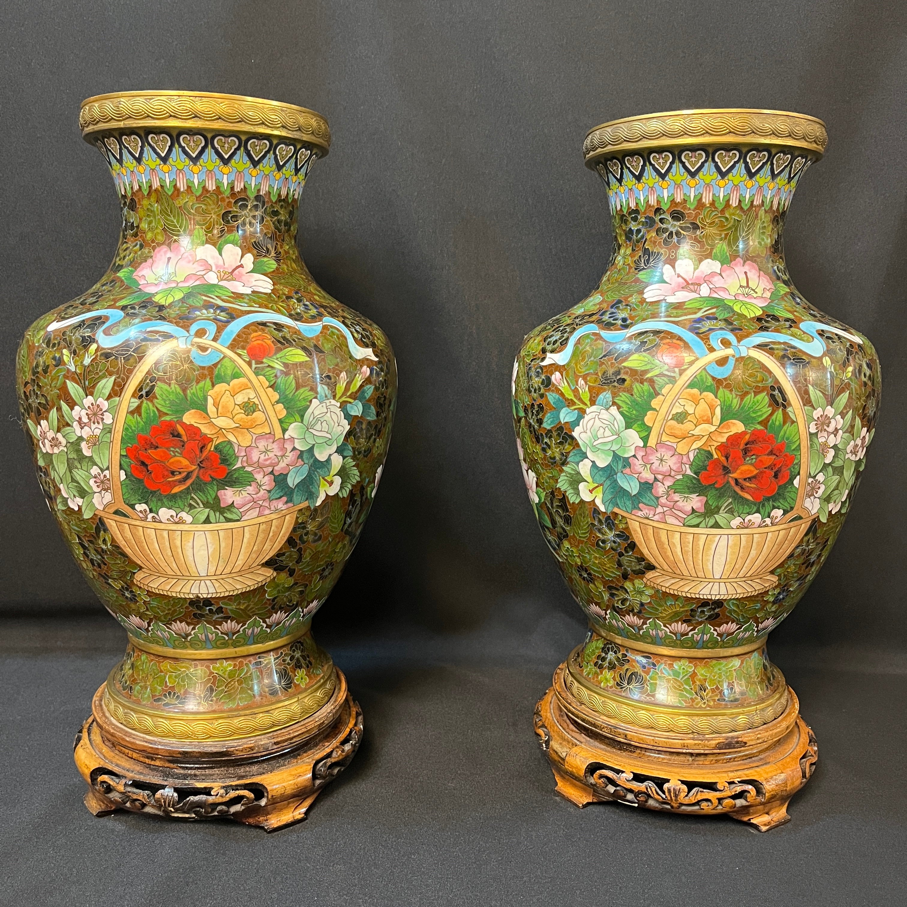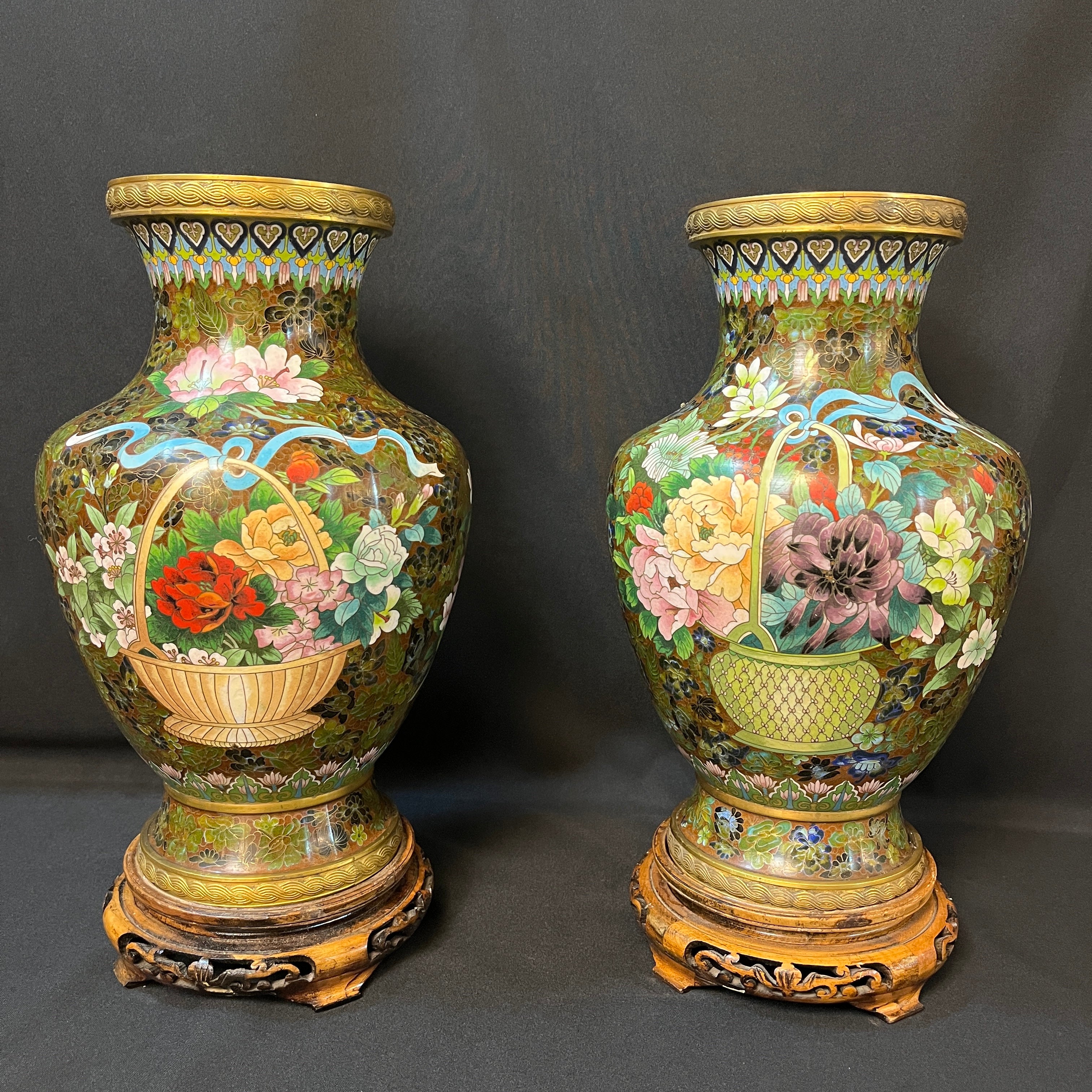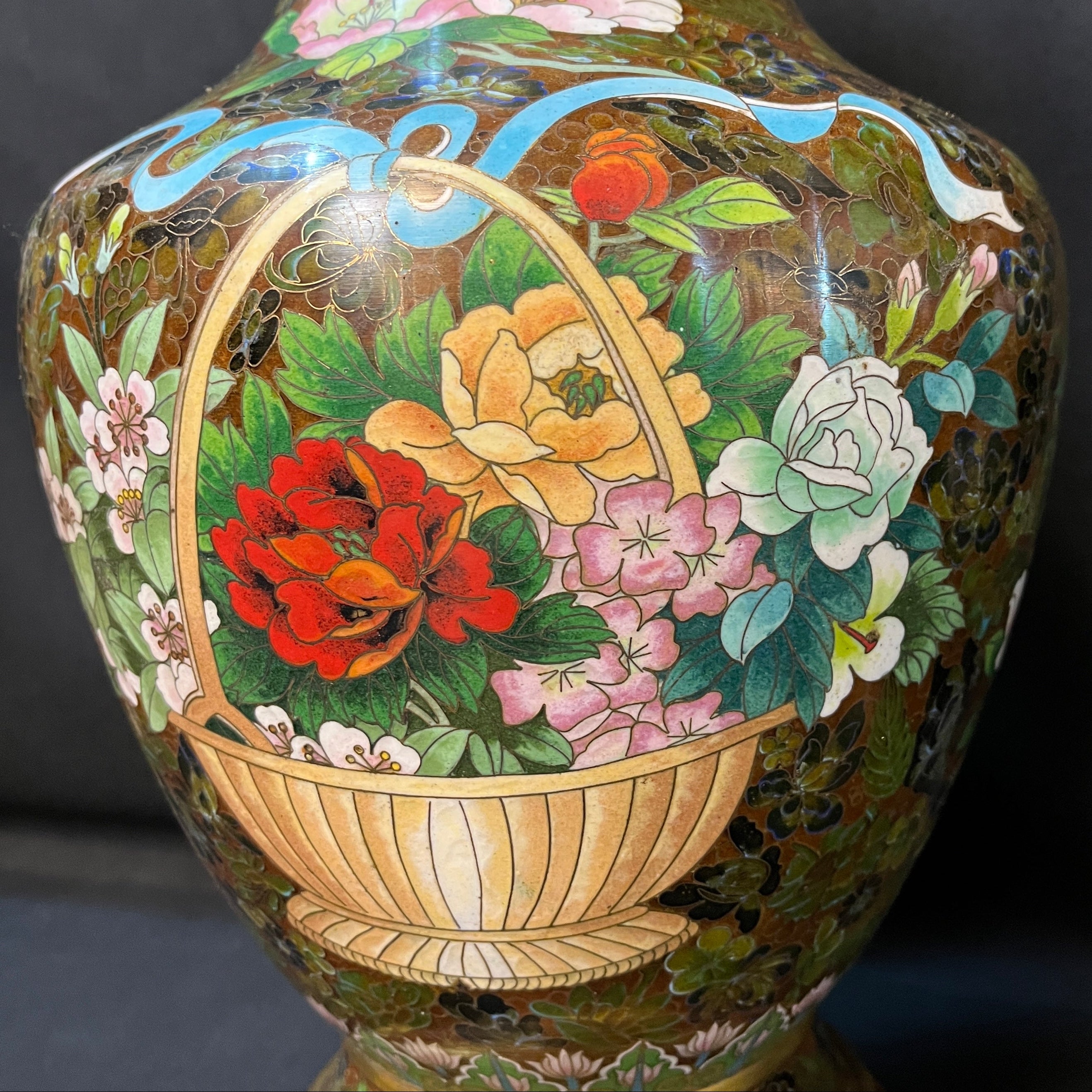 Par de jarrones cloissoné chinos 'Cestas con flores'