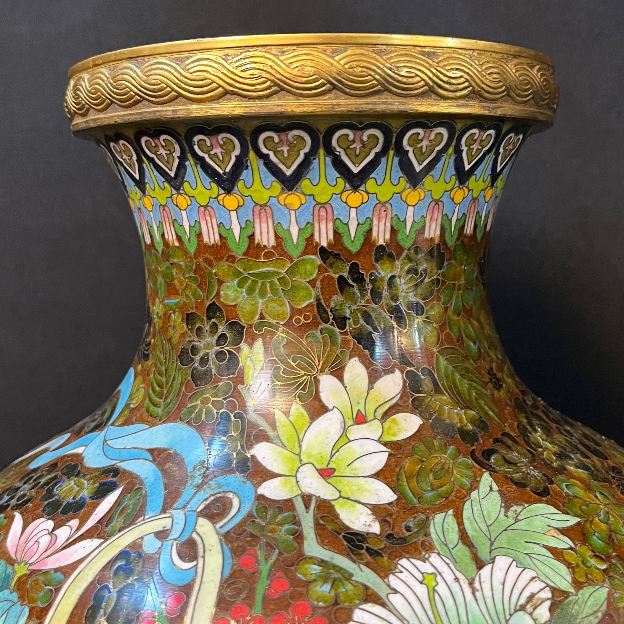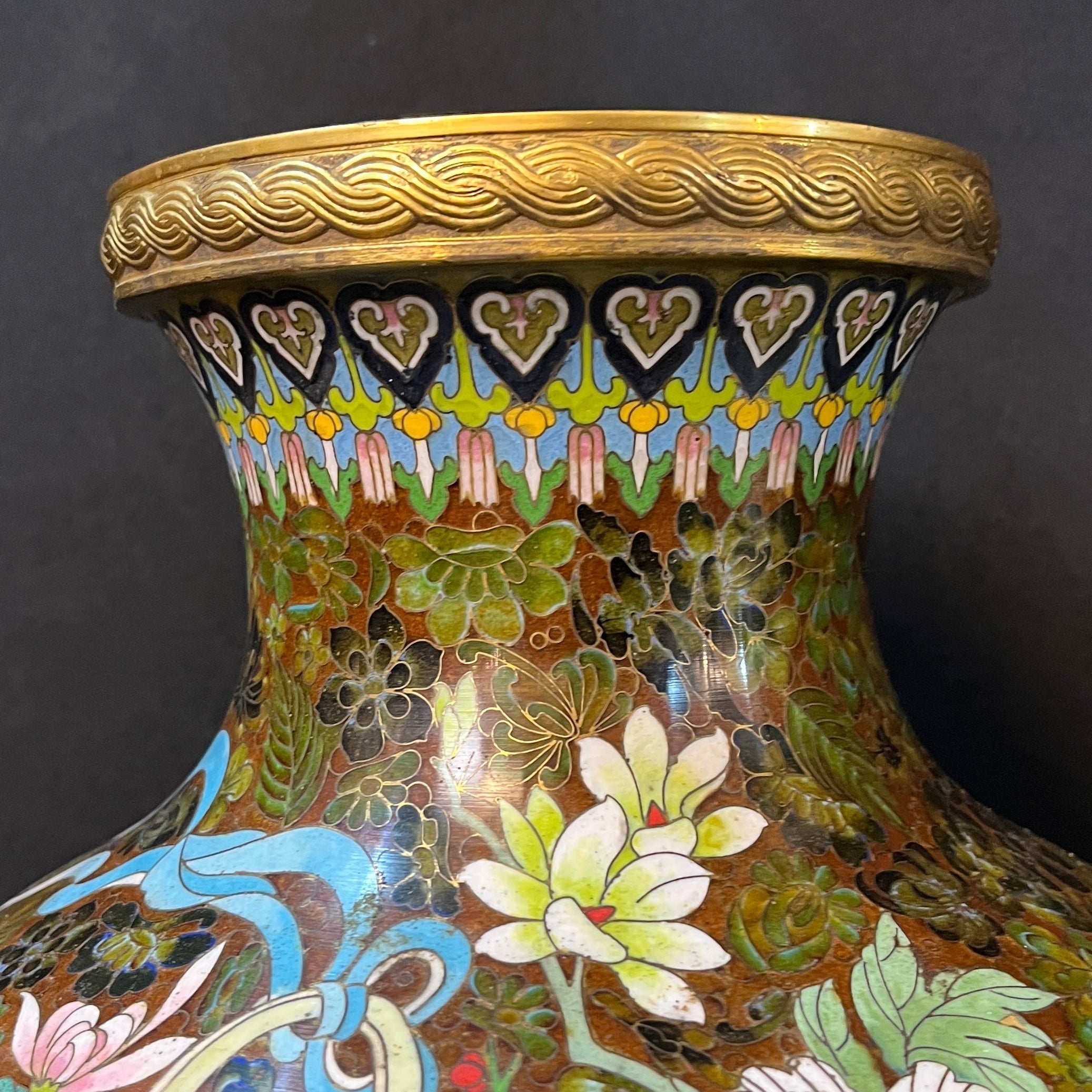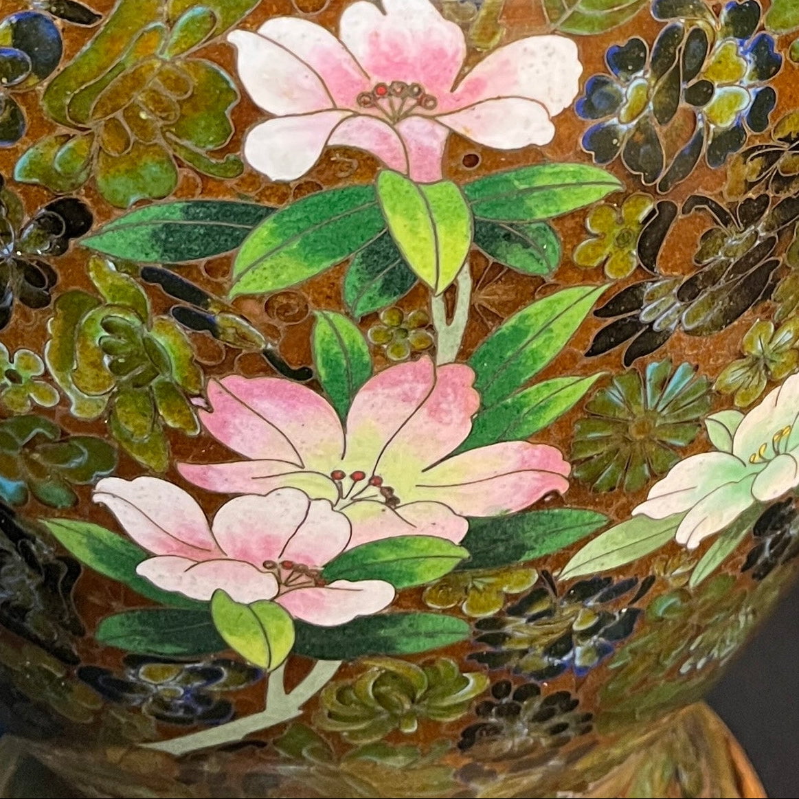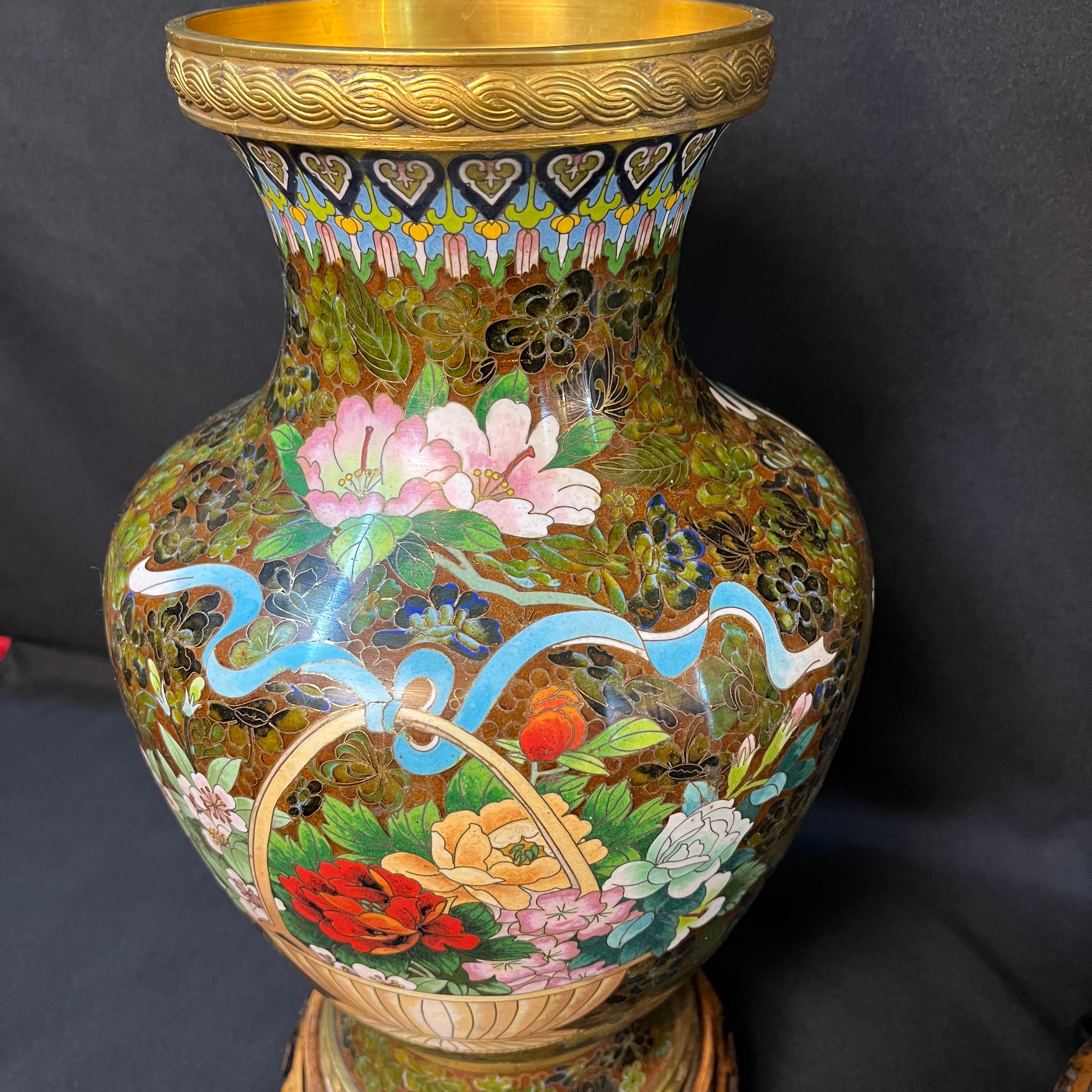 Par de jarrones cloissoné chinos 'Cestas con flores'