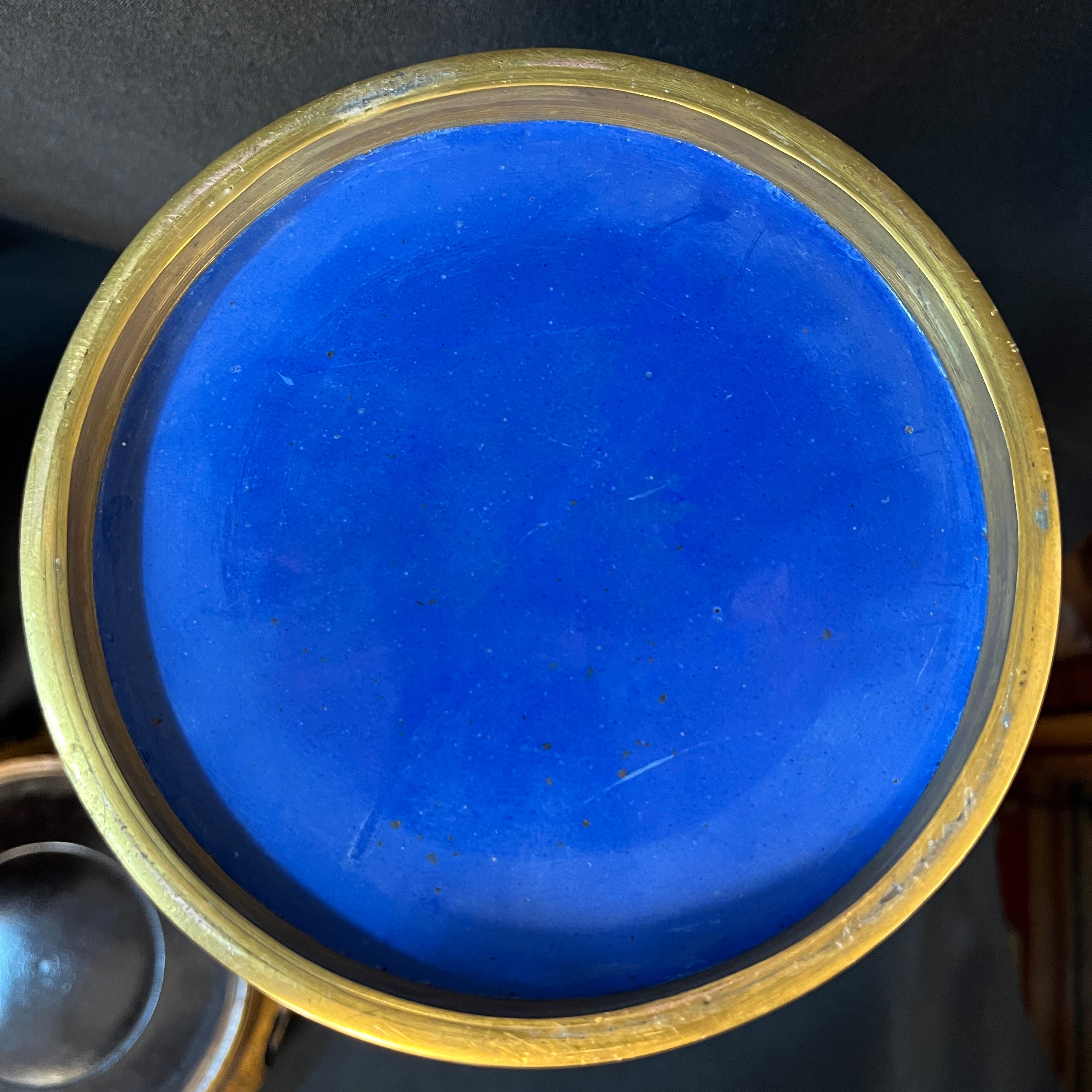 Hermoso par de jarrones cloisonné en bronce de origen chino, decorados con un refinado motivo floral de cestas con flores. Los detalles en tonos rojos, rosados, blancos y celestes destacan sobre un fondo que realza su delicadeza y elegancia. El acabado dorado del bronce aporta luminosidad y riqueza visual a la composición. Cada jarrón incluye su respectiva peana.