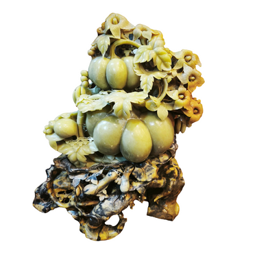 Escultura asiática en piedra dura 'Enredadera de frutos y flores'