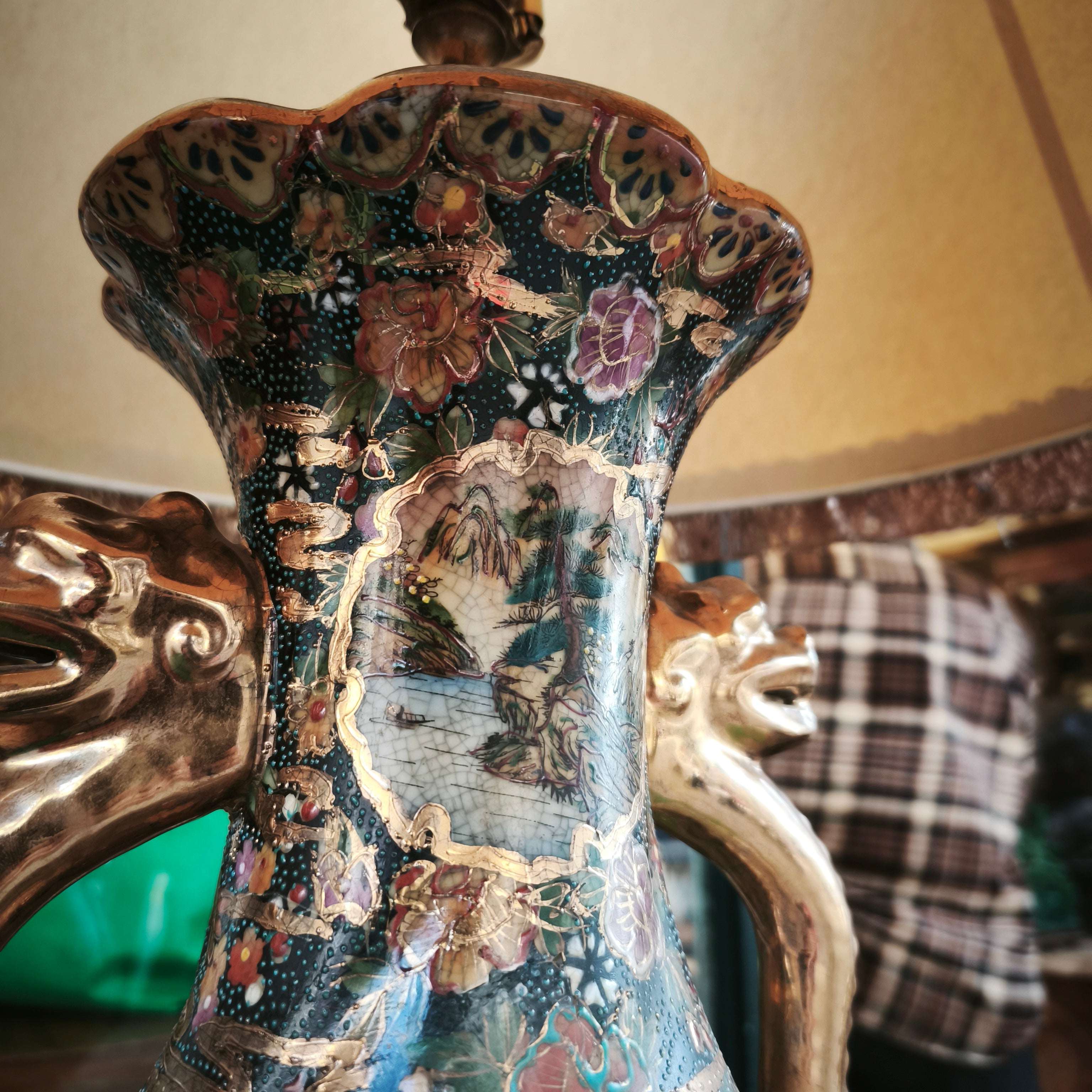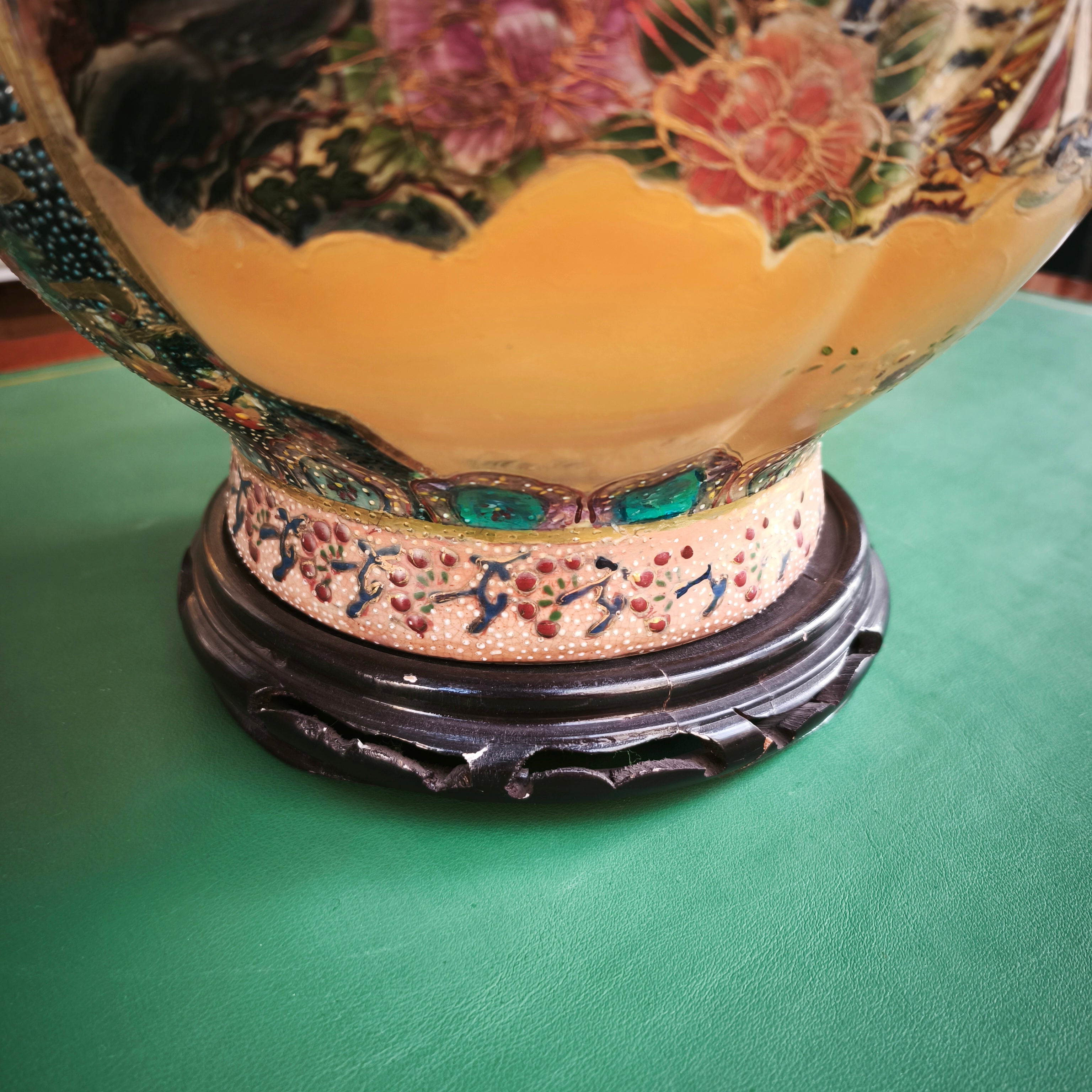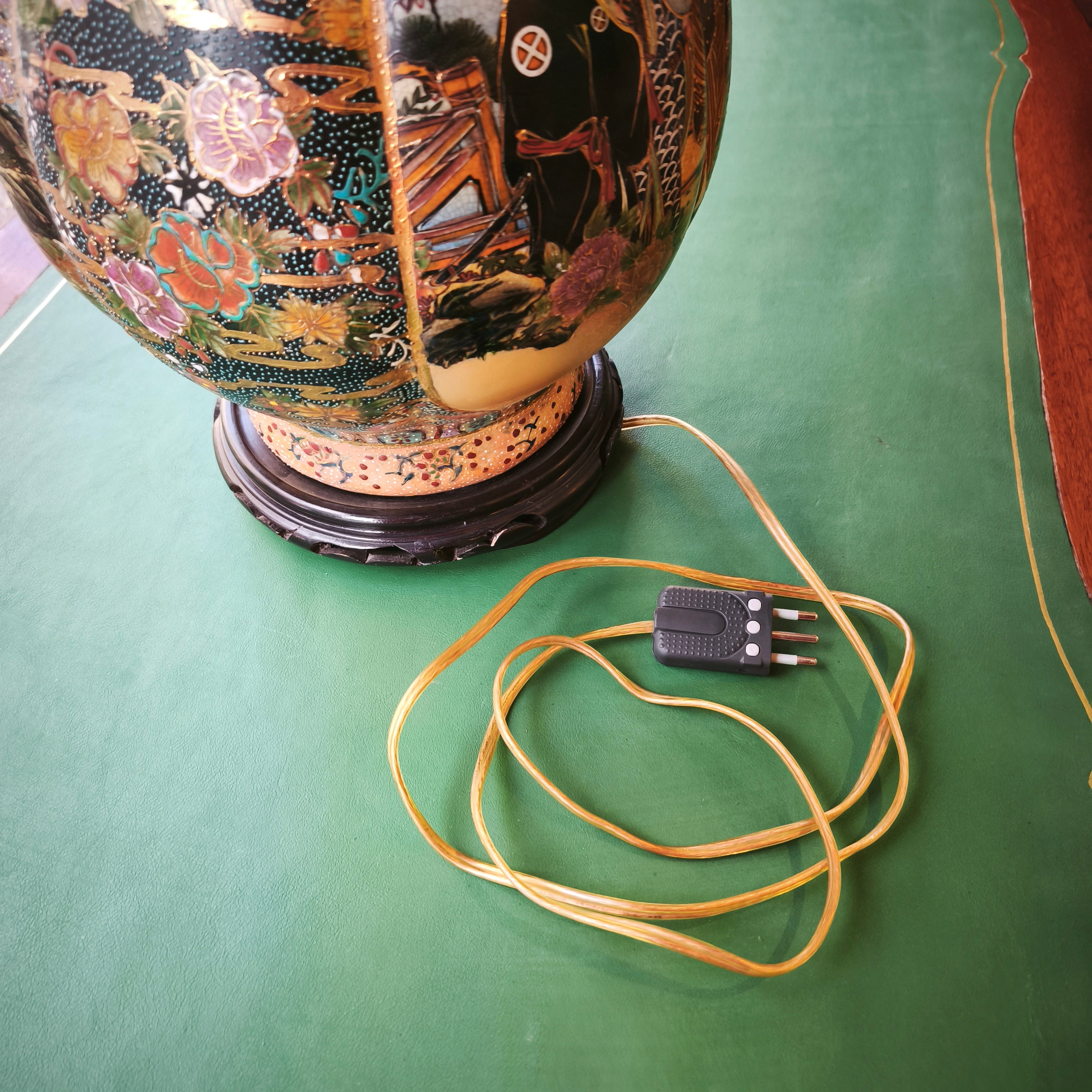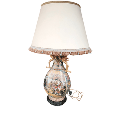 Lámpara china estilo Satsuma con peana diseño dorado y floral