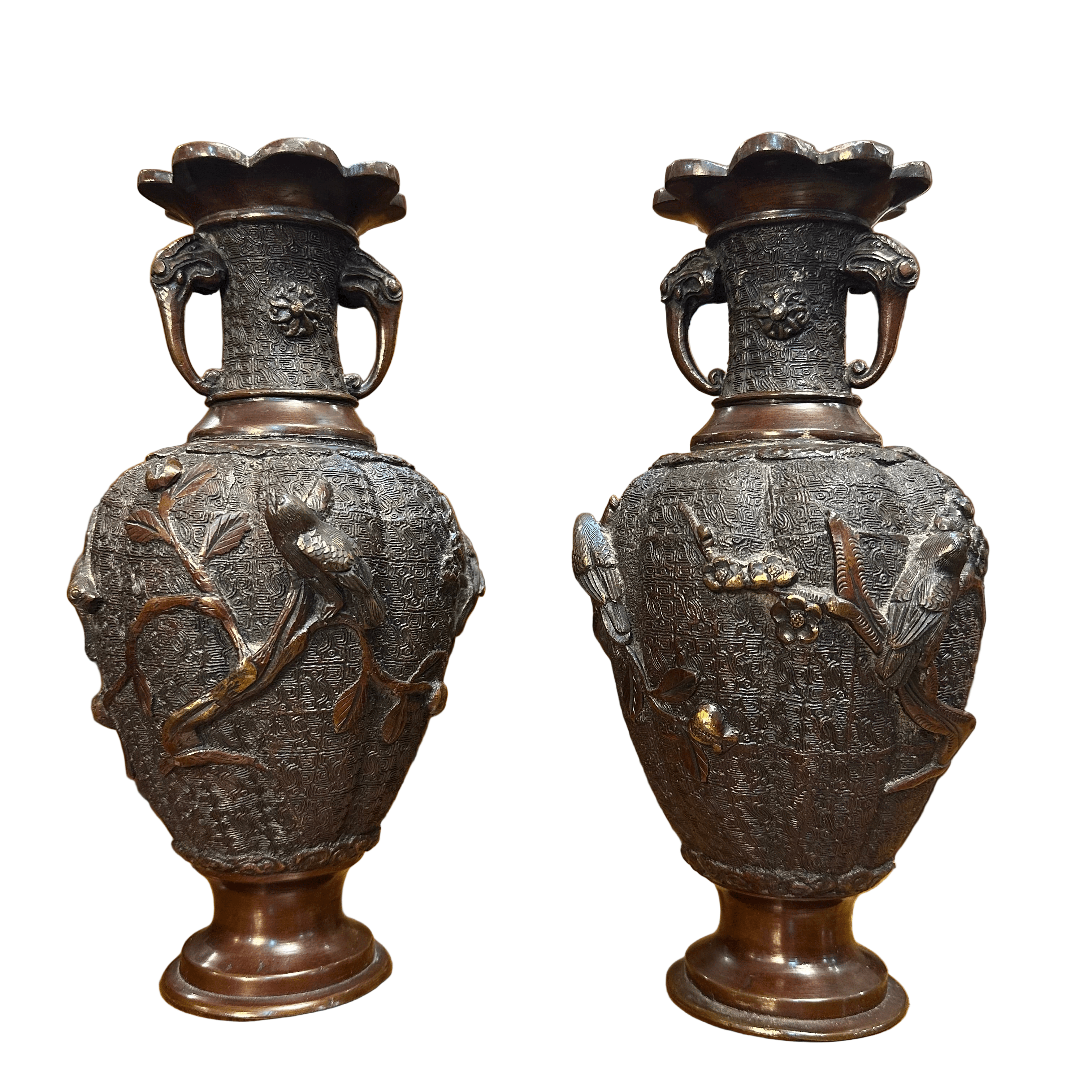 Par de jarrones de bronce Aves y Ciruelo Japón