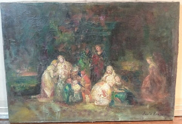 Emile Rousseau - Óleo 'Madres y niños en el parque'