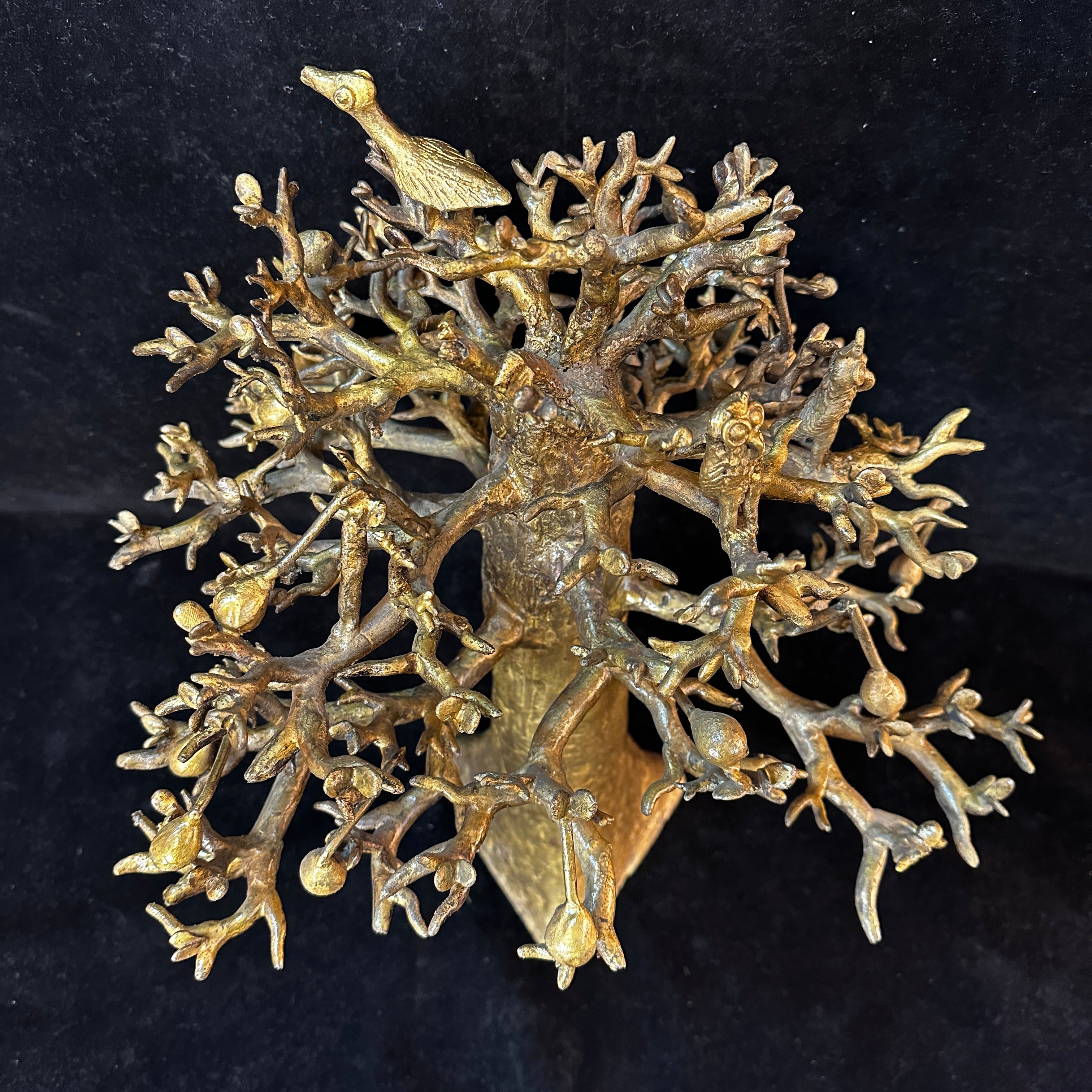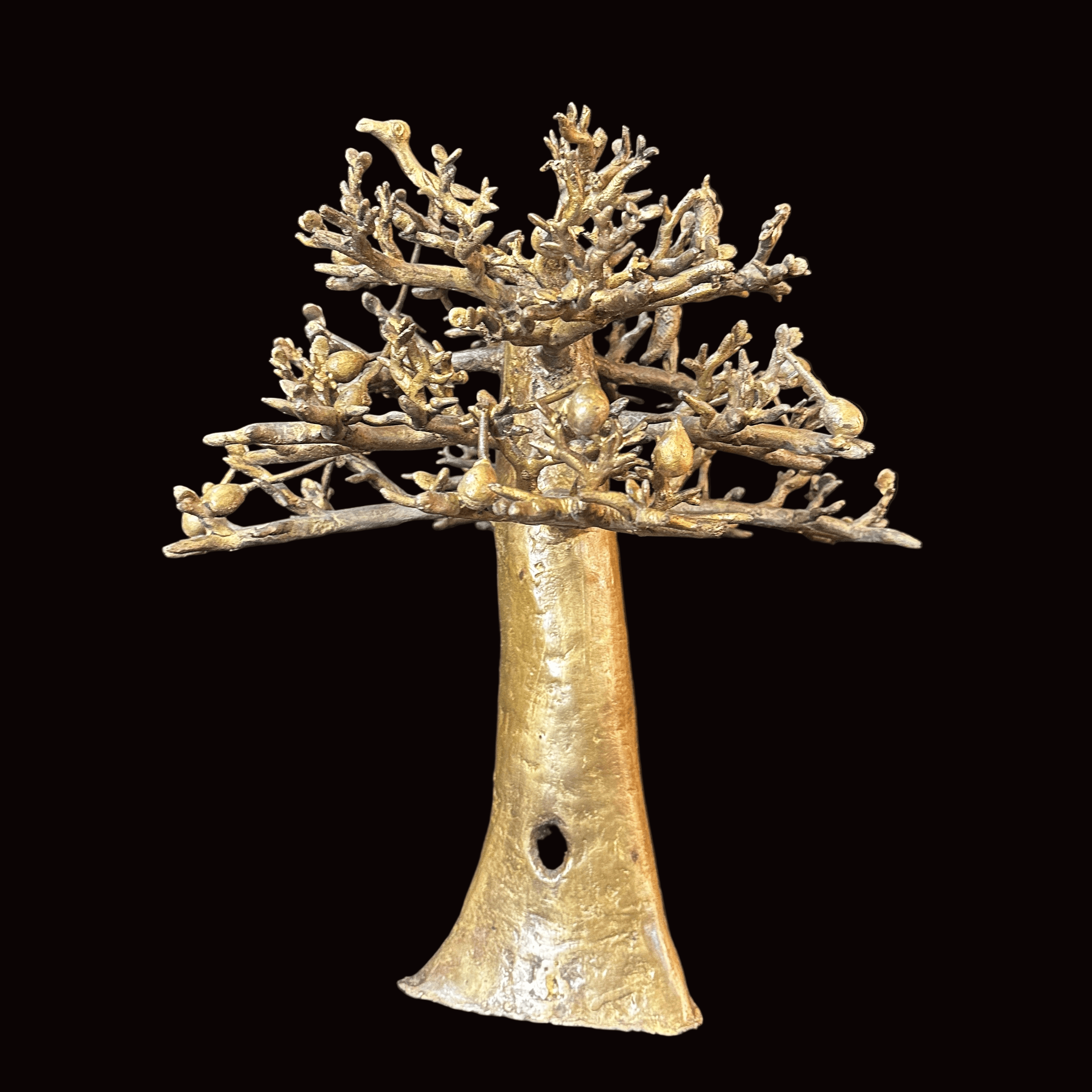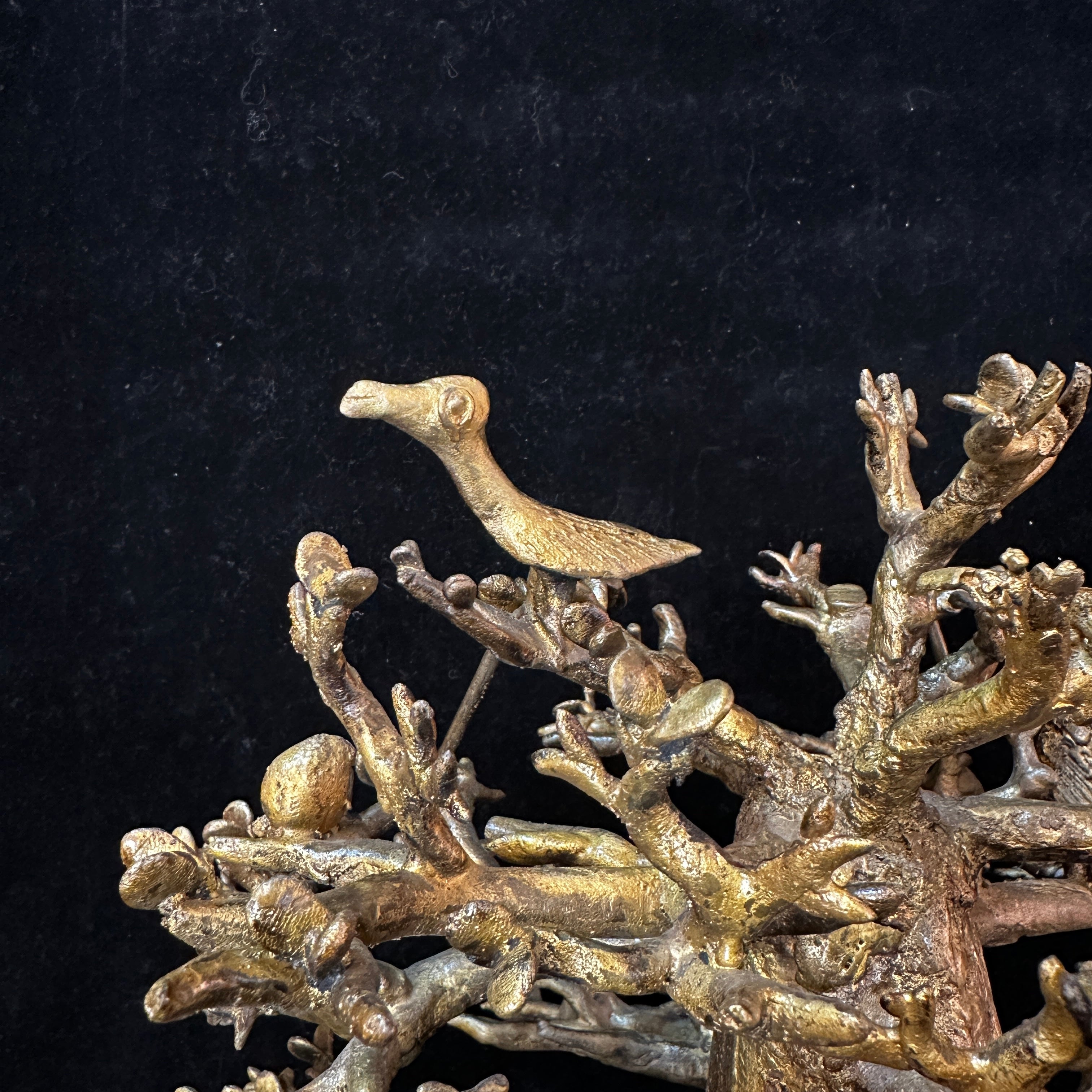 Bellísima escultura en bronce macizo representando a un baobab y aves posadas en sus ramas.