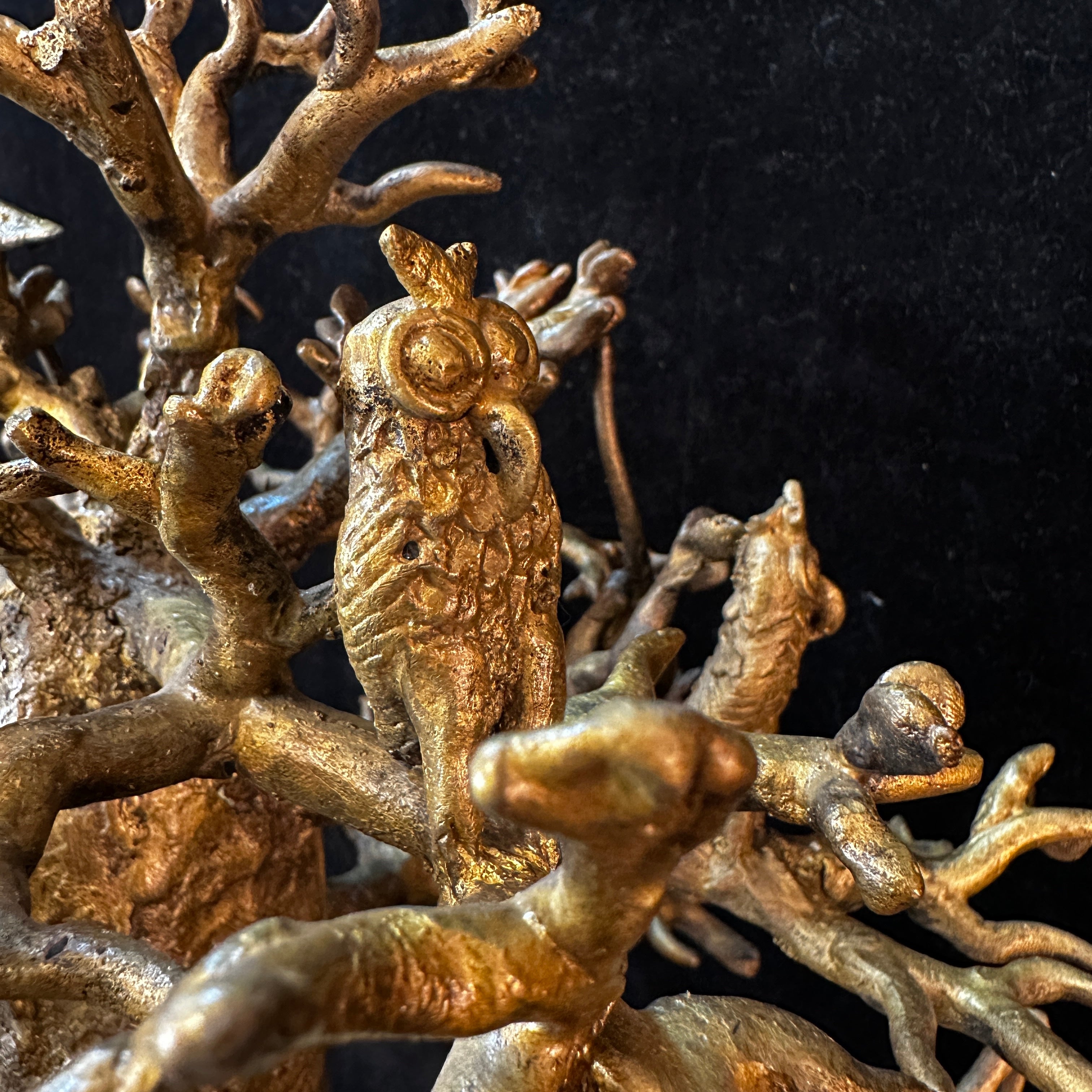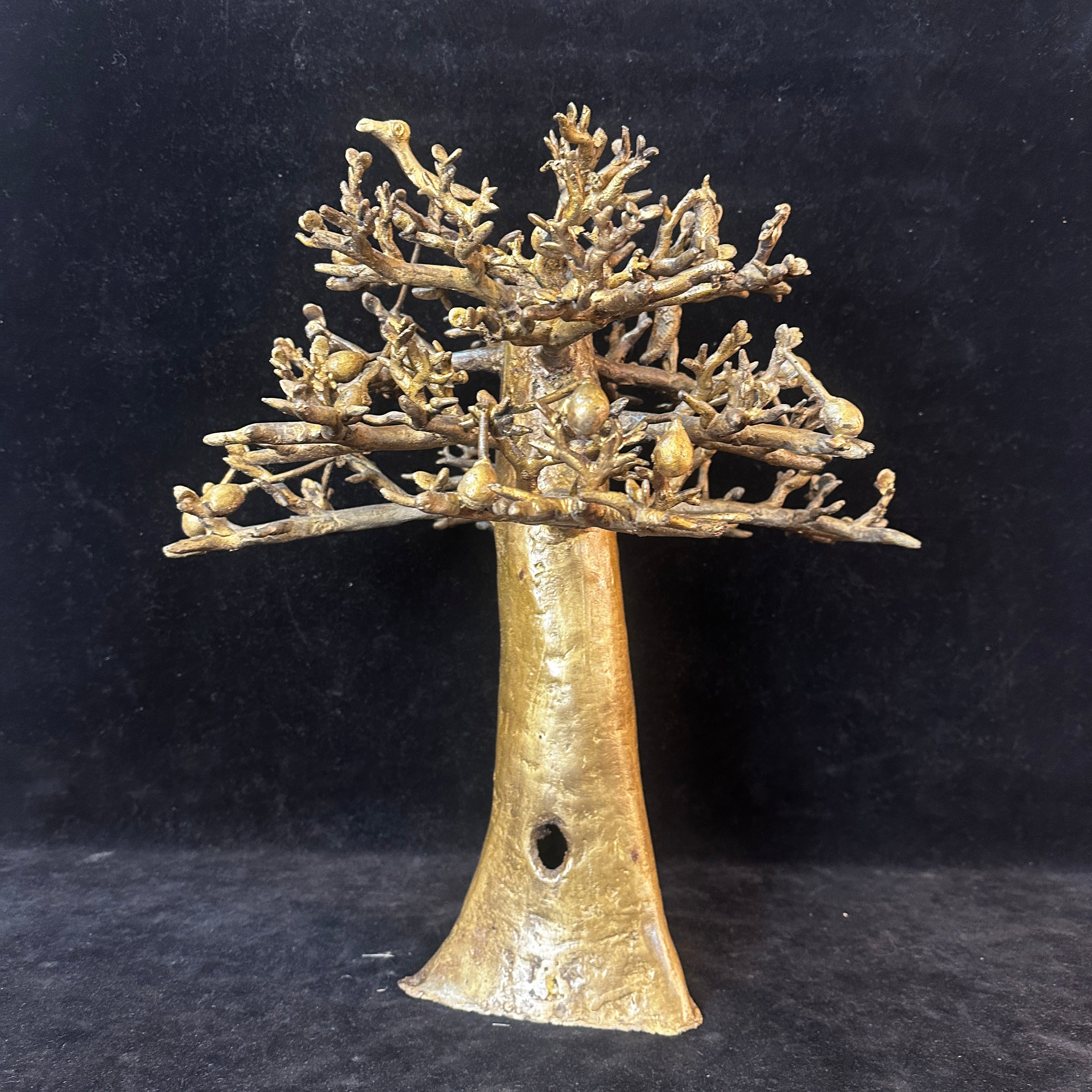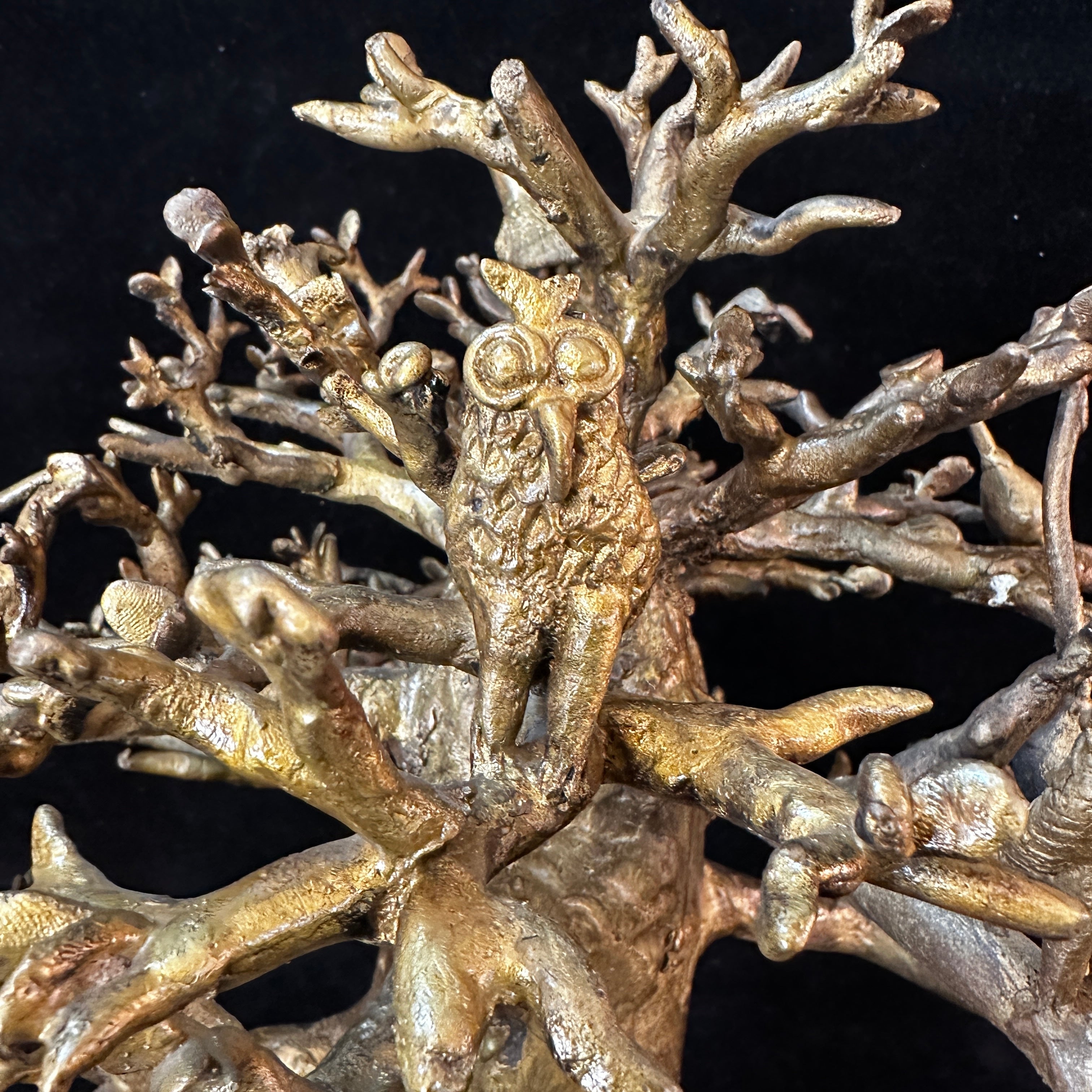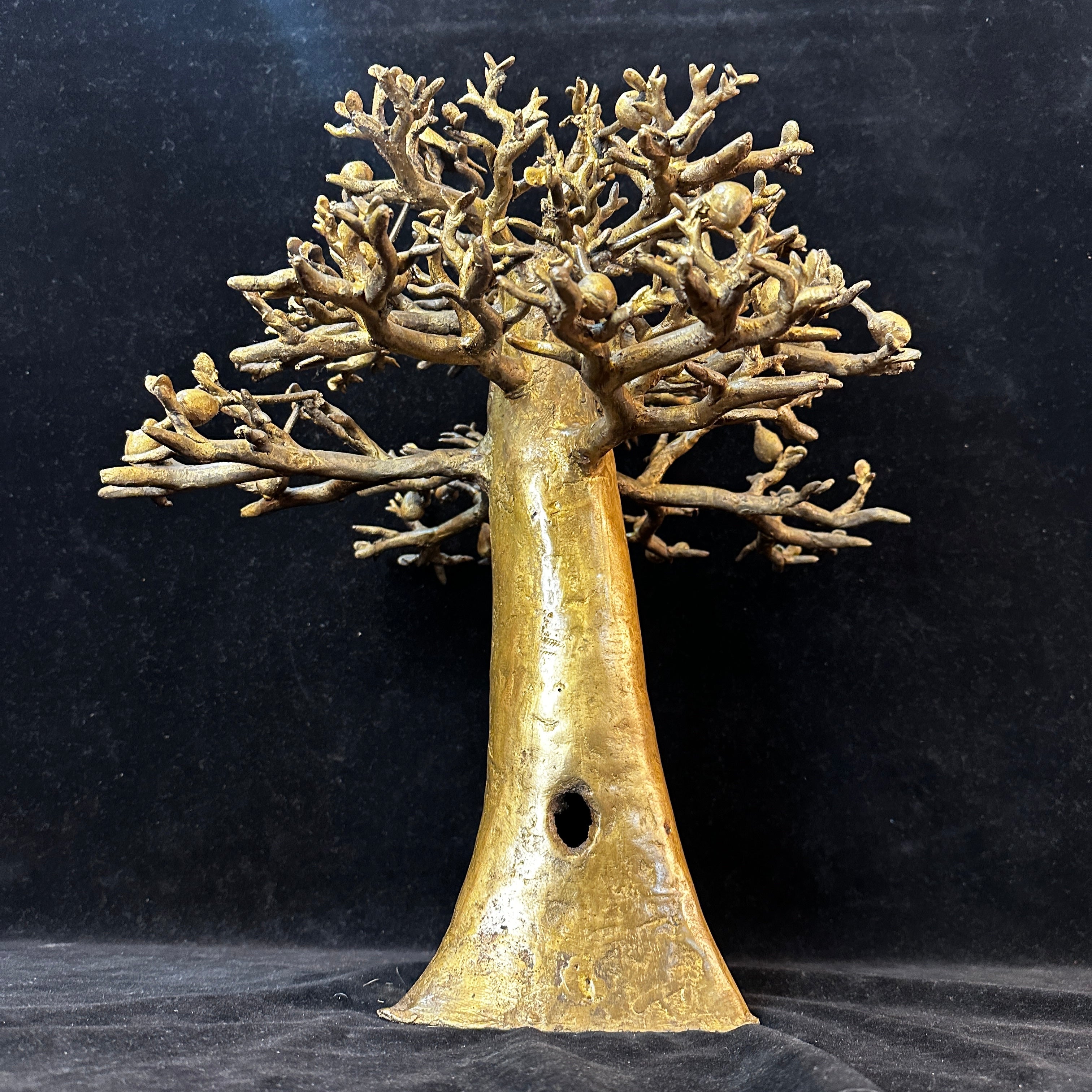 Bellísima escultura en bronce macizo representando a un baobab y aves posadas en sus ramas.