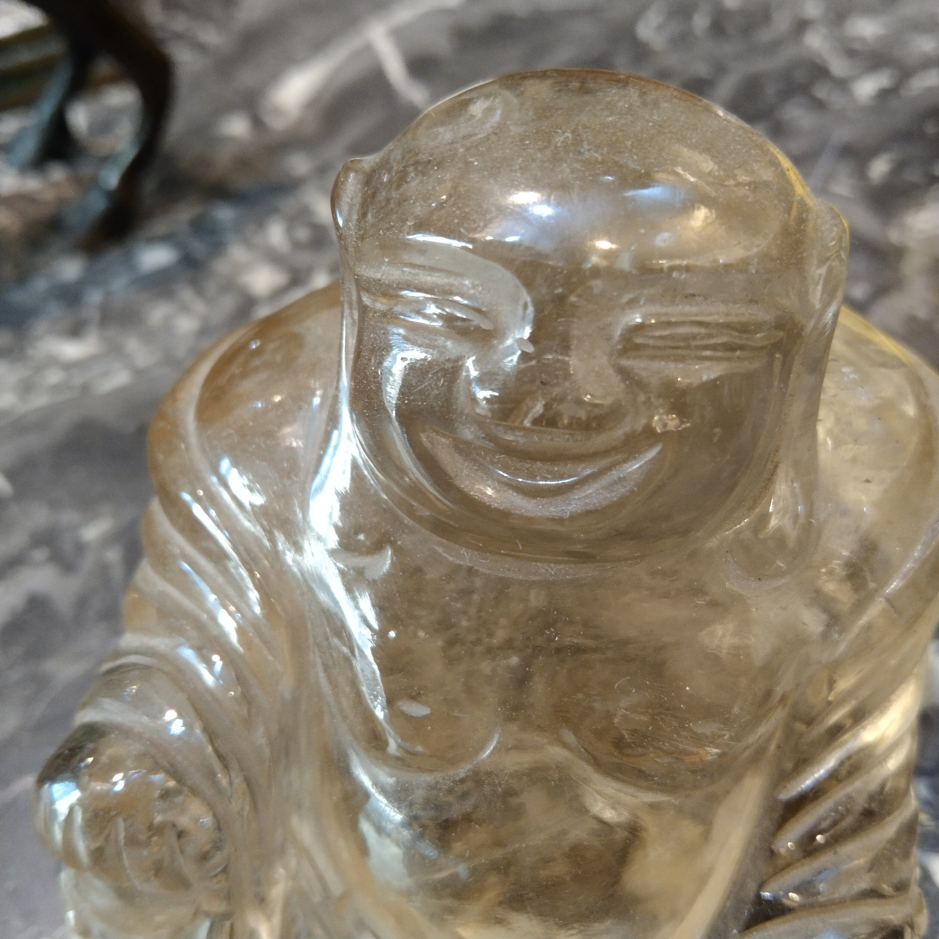 Simpática figura de un monje chino en cristal de roca.