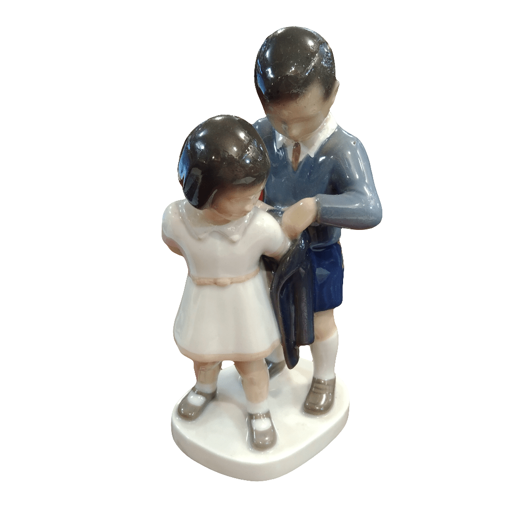 Figura de porcelana danesa Bing & Grondhal 'hermanos preparándose para el colegio'