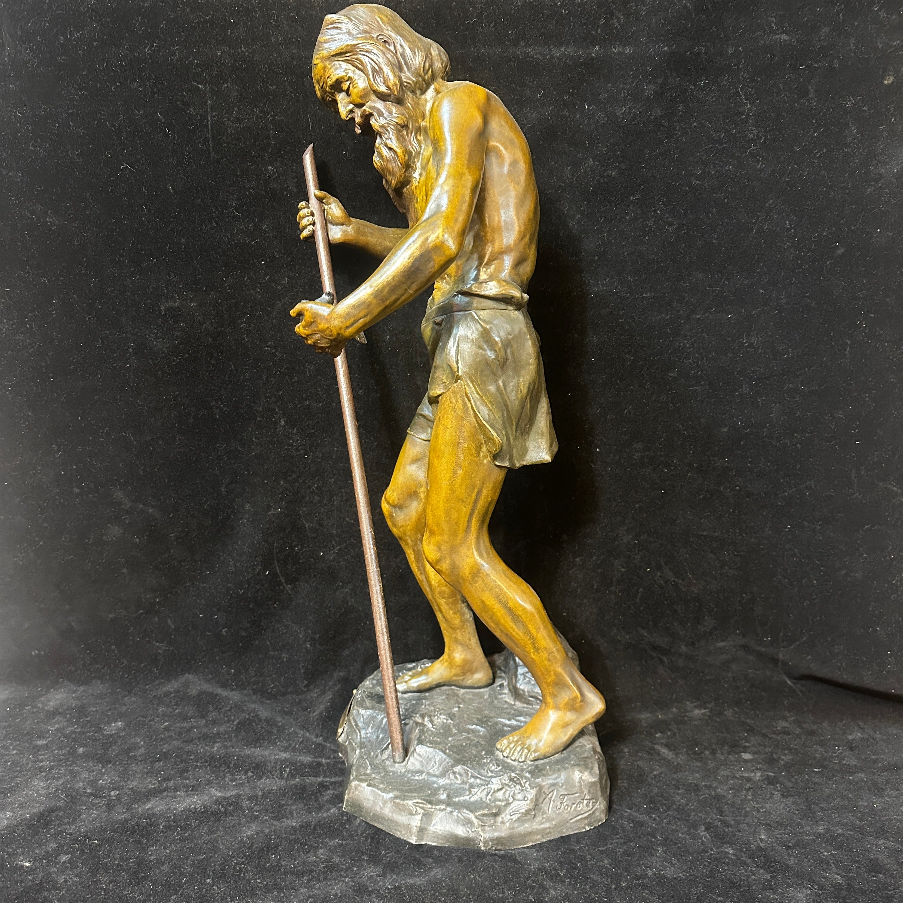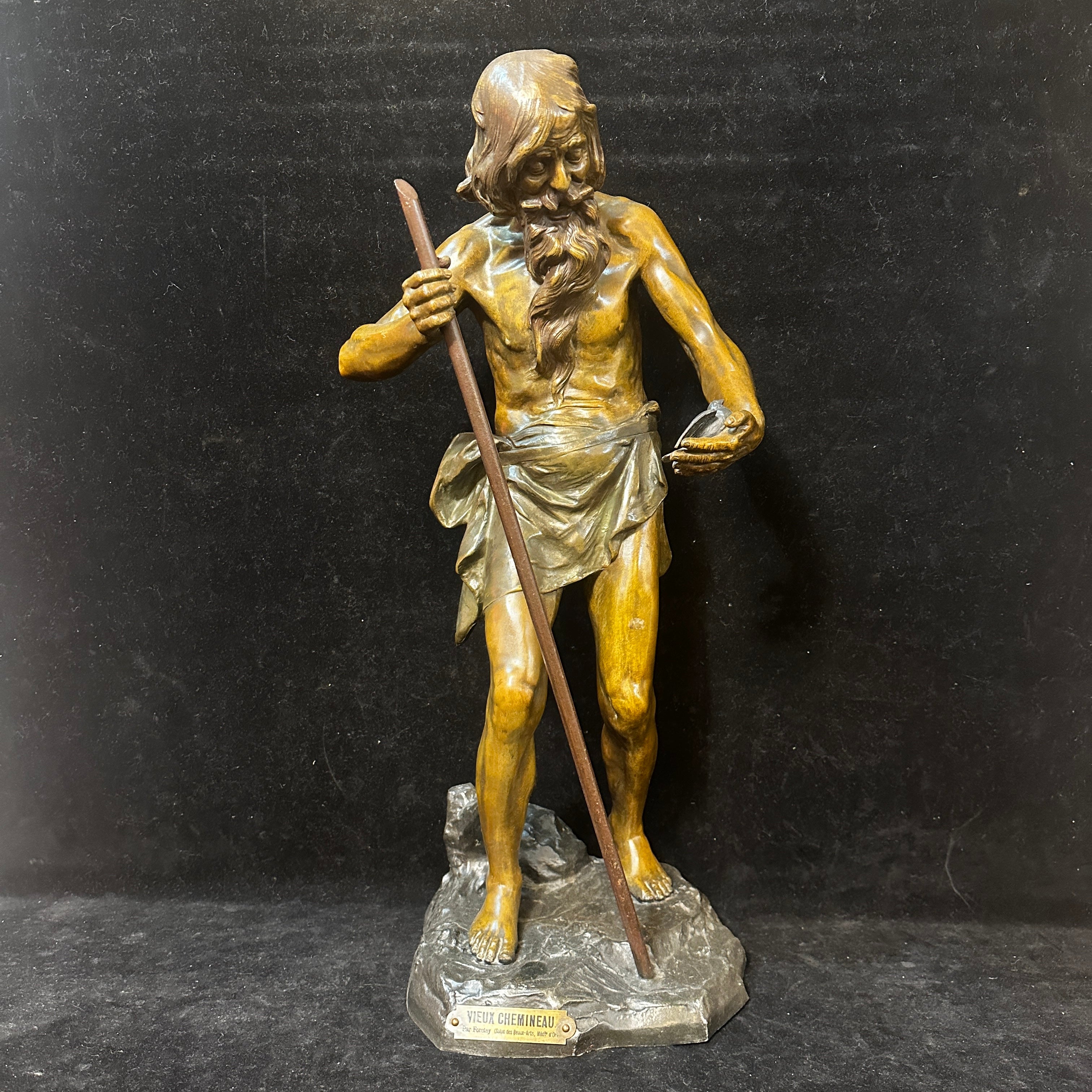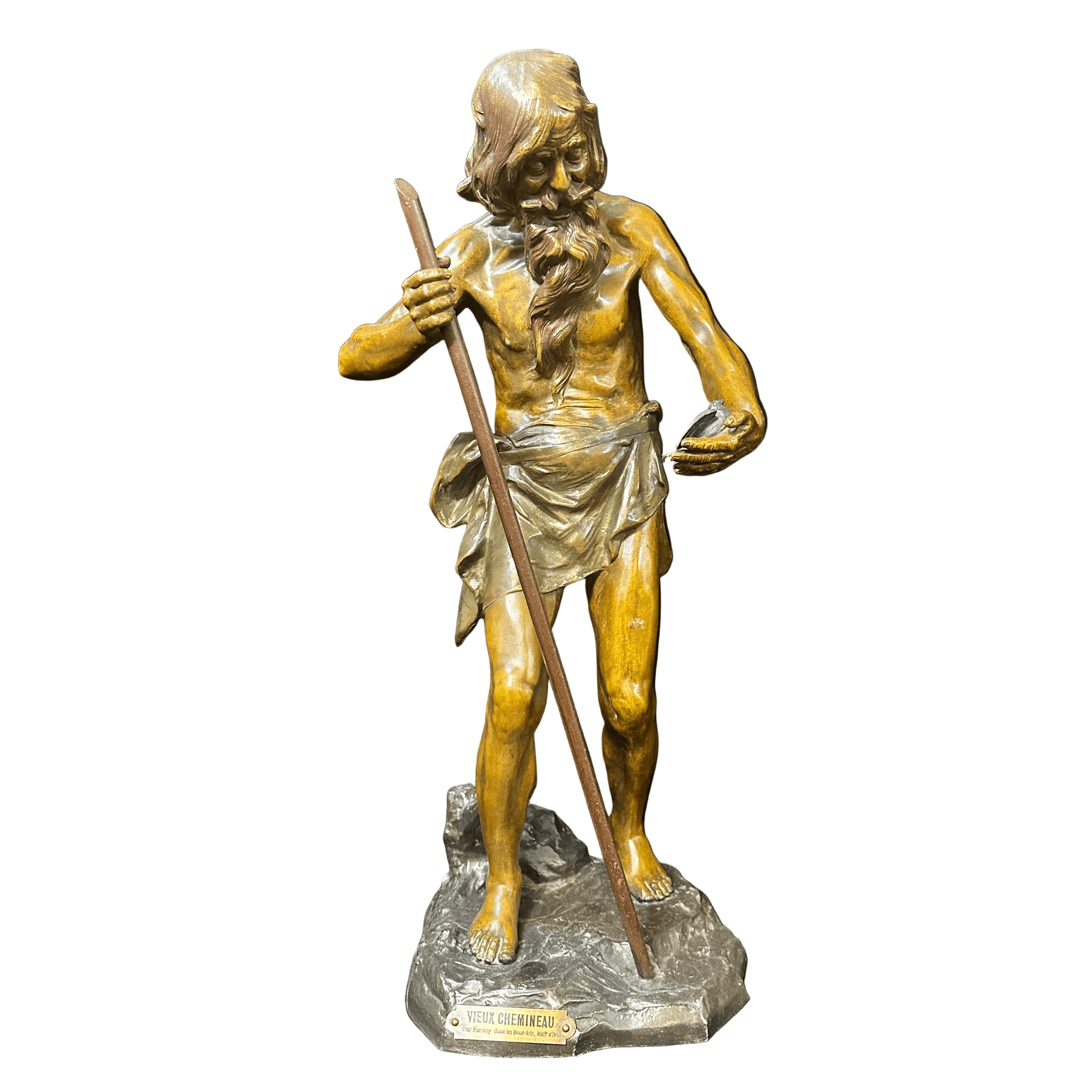 Escultura de peltre 'Le vieux chemineau' firmada Jean Foretay