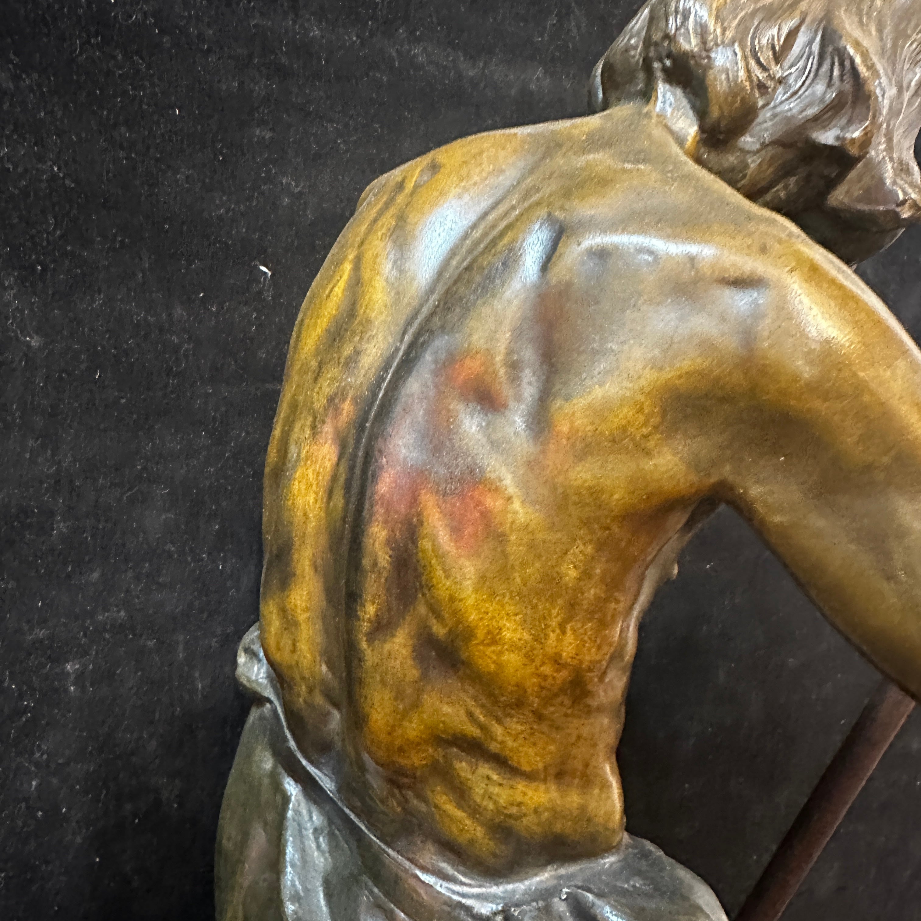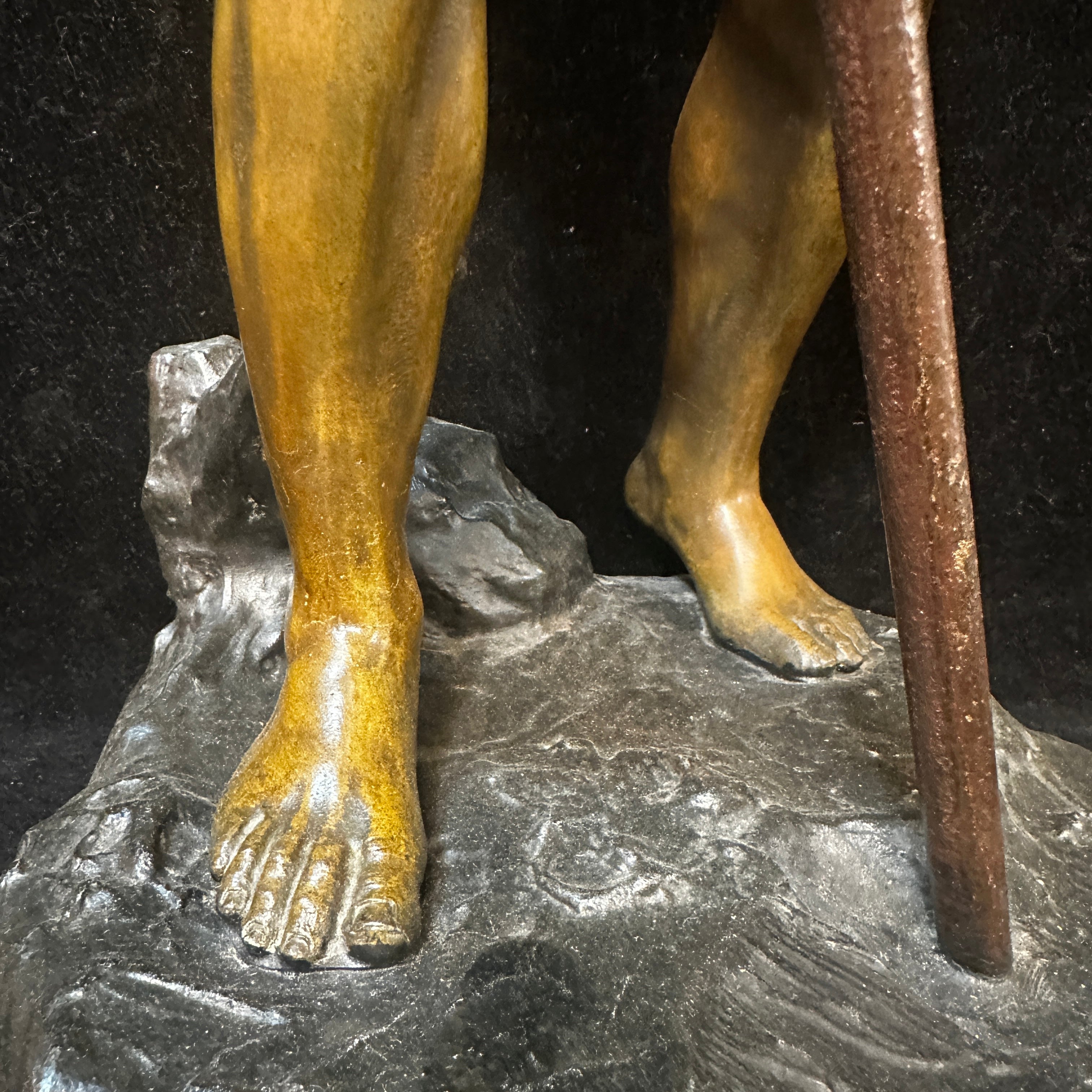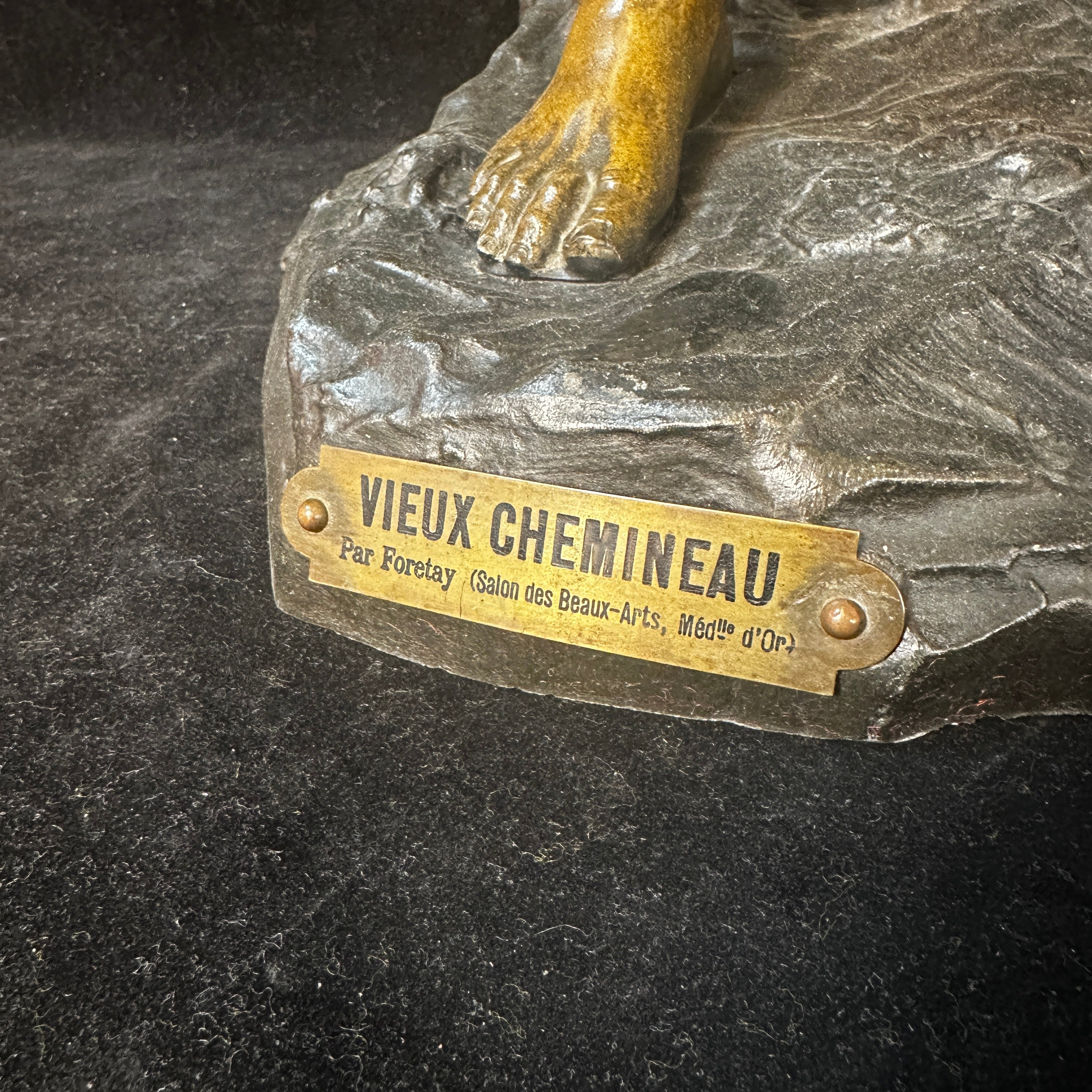 Escultura de peltre 'Le vieux chemineau' firmada Jean Foretay