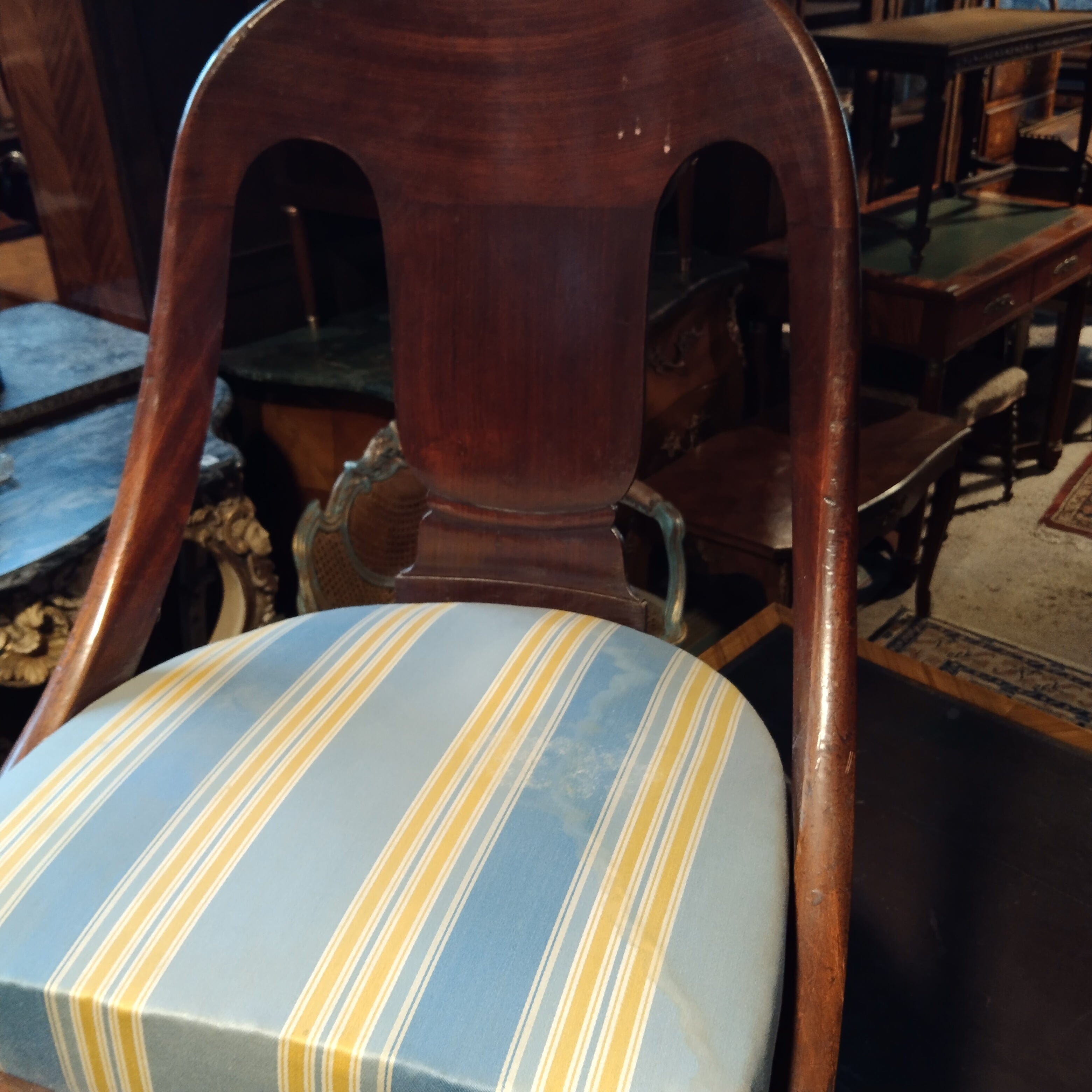 Silla imperio madera y tapiz a rayas