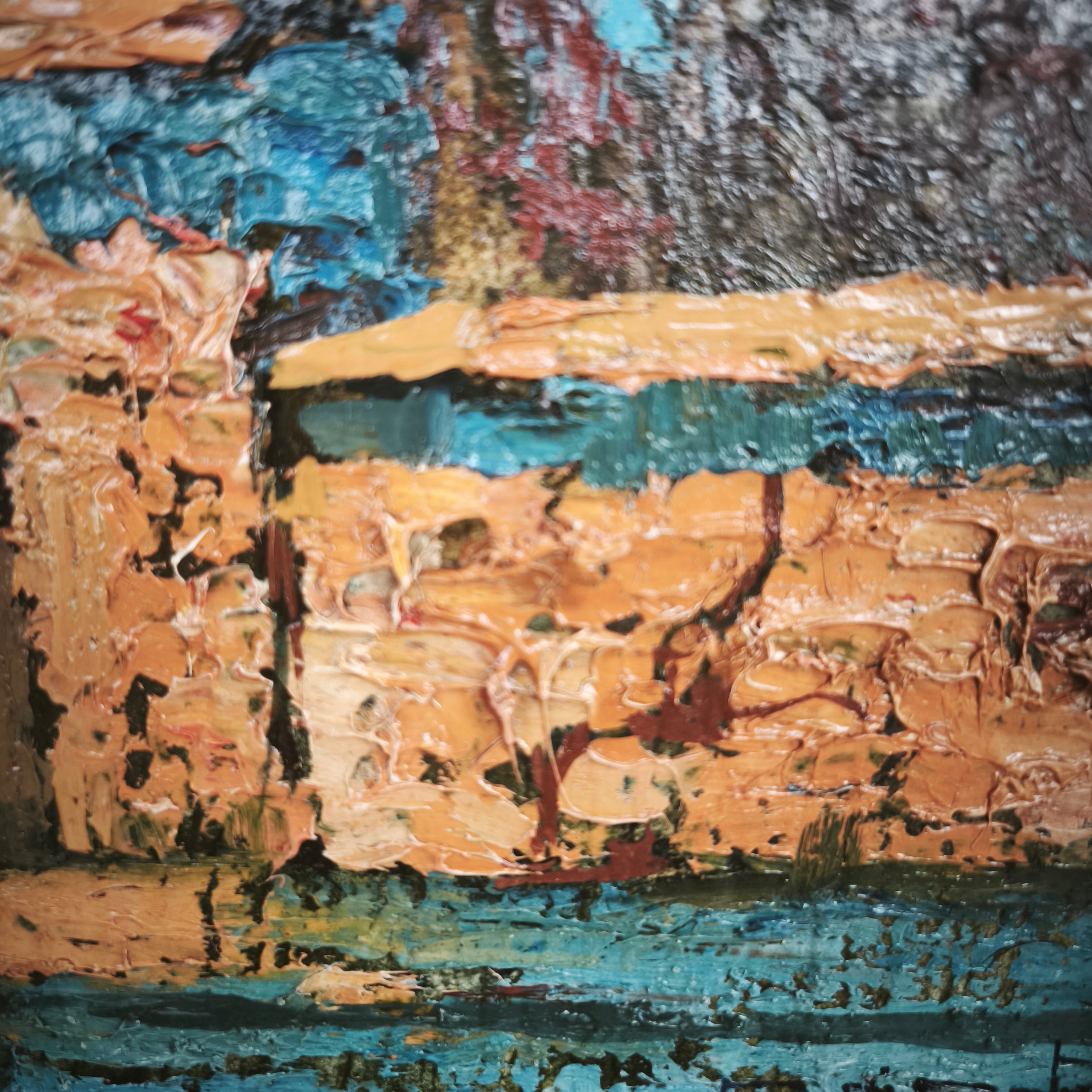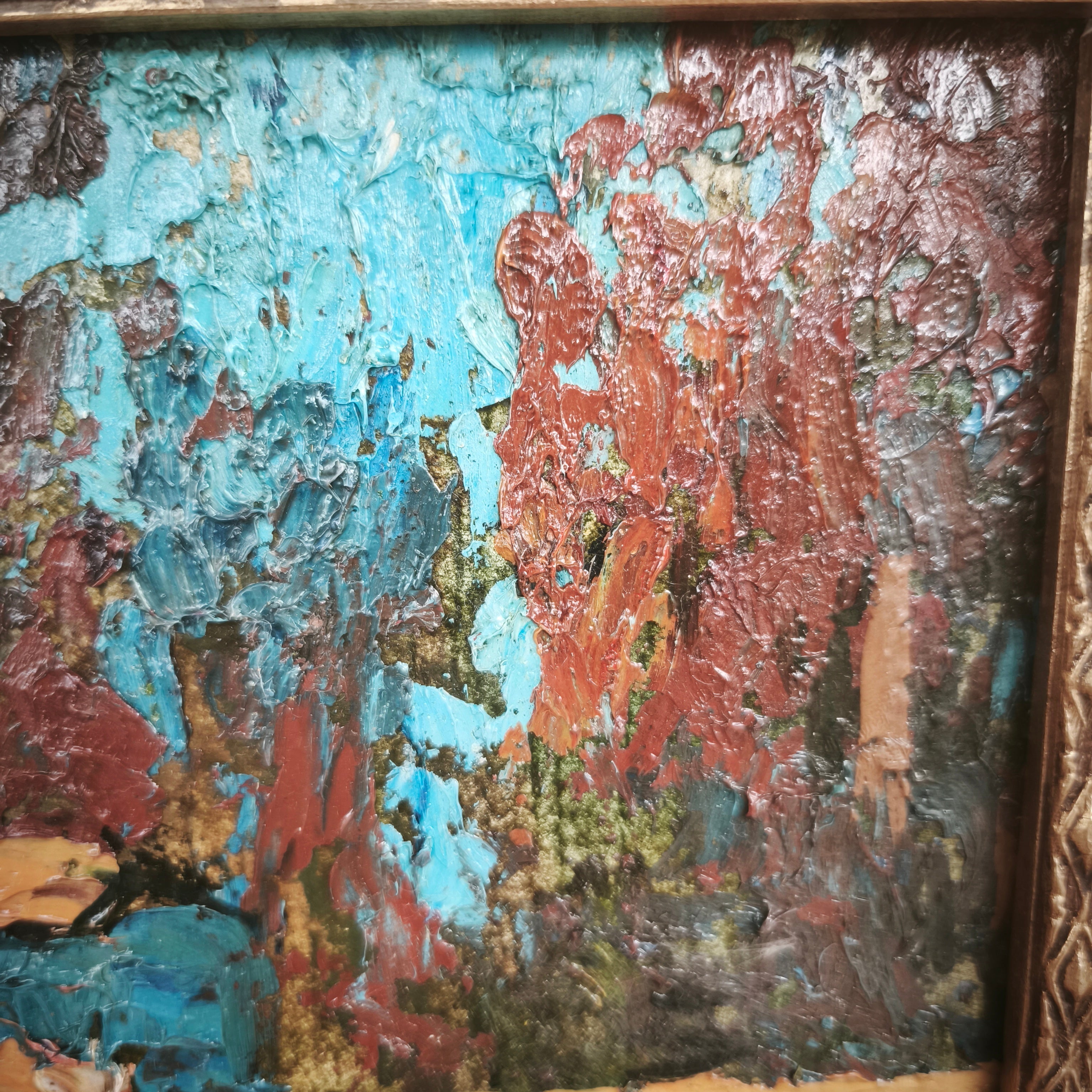 Dimensiones: Marco 45 x 7 x 38 cm de alto y Obra 28 x 20 cm.