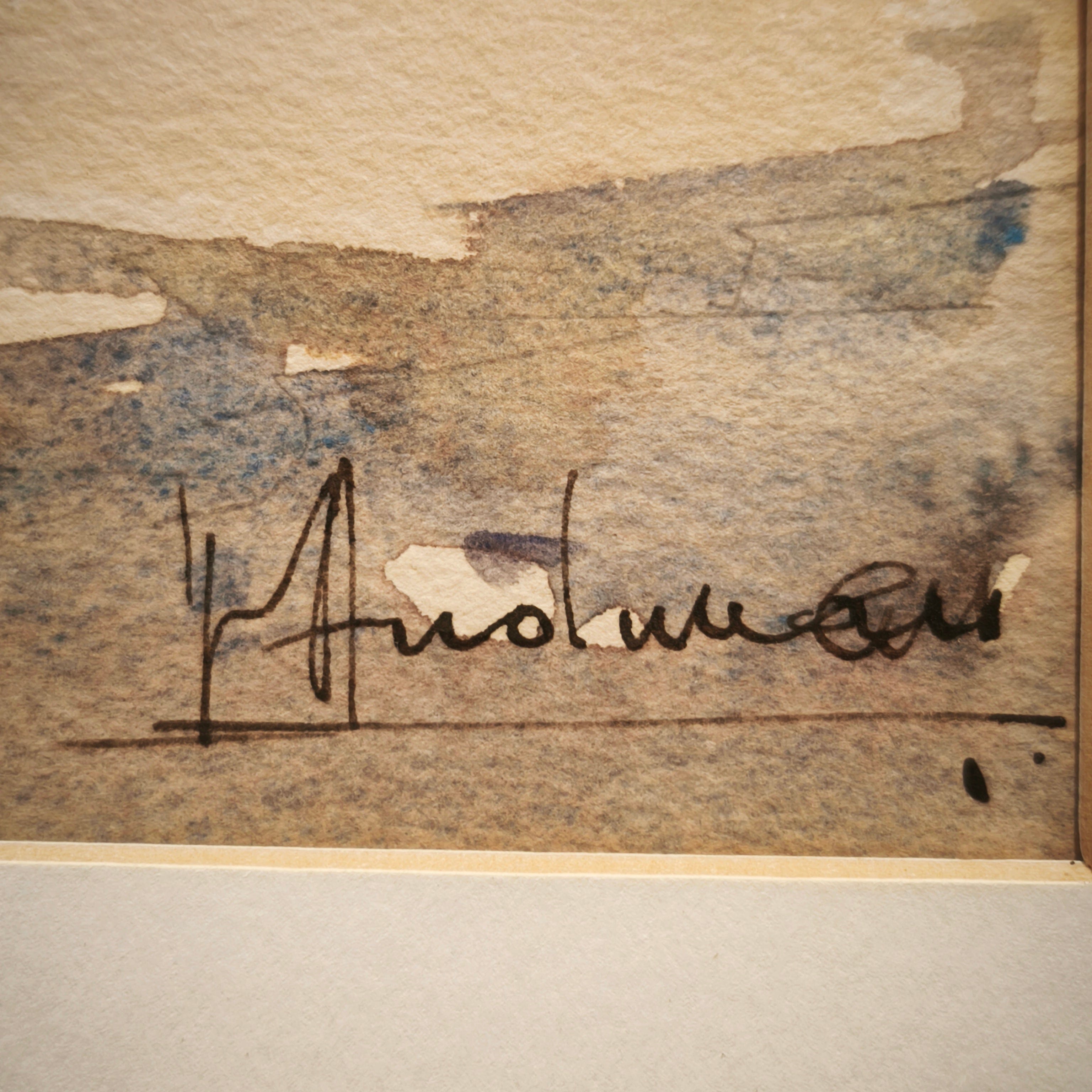 Firma ilegible - Acuarela 'Avenida de barcos'