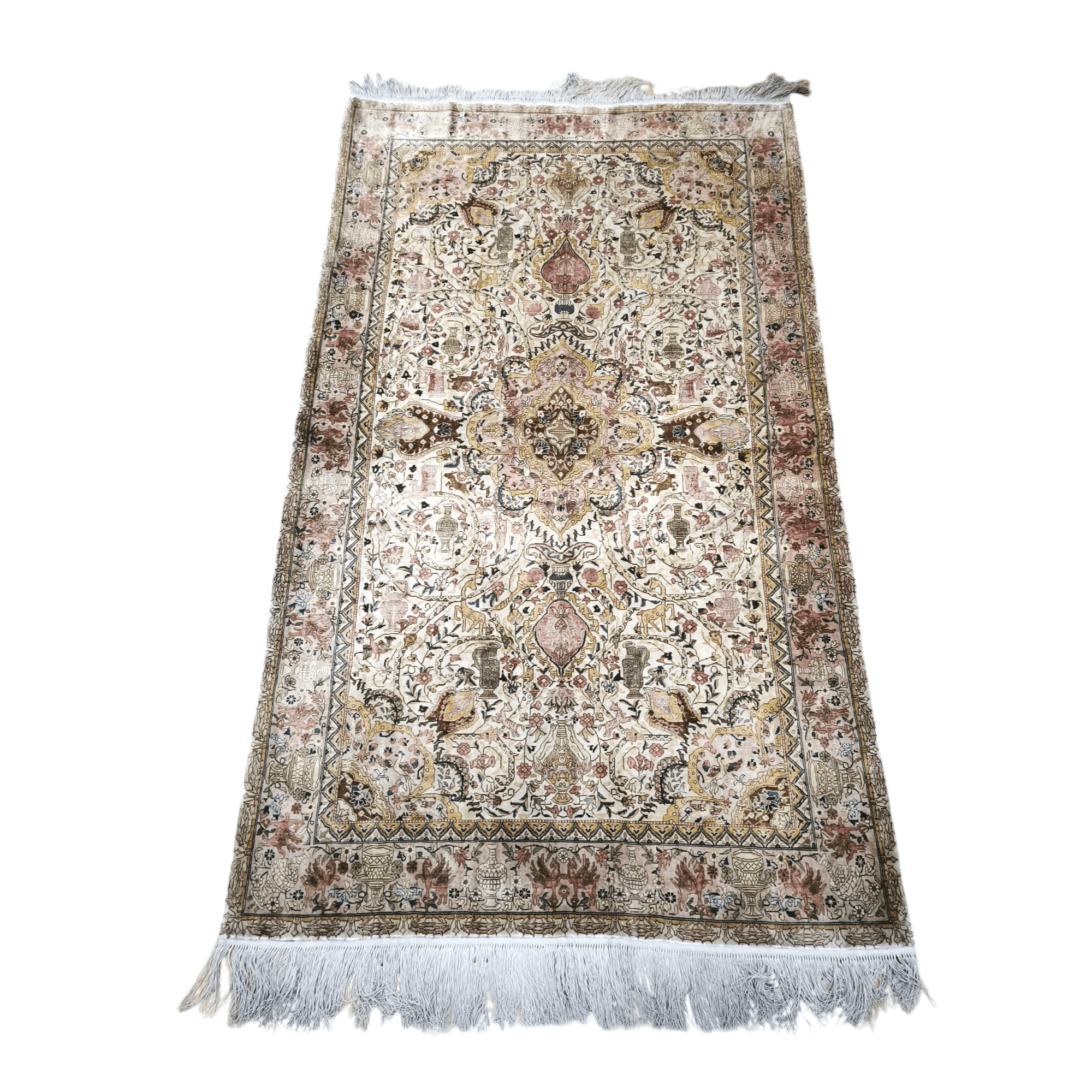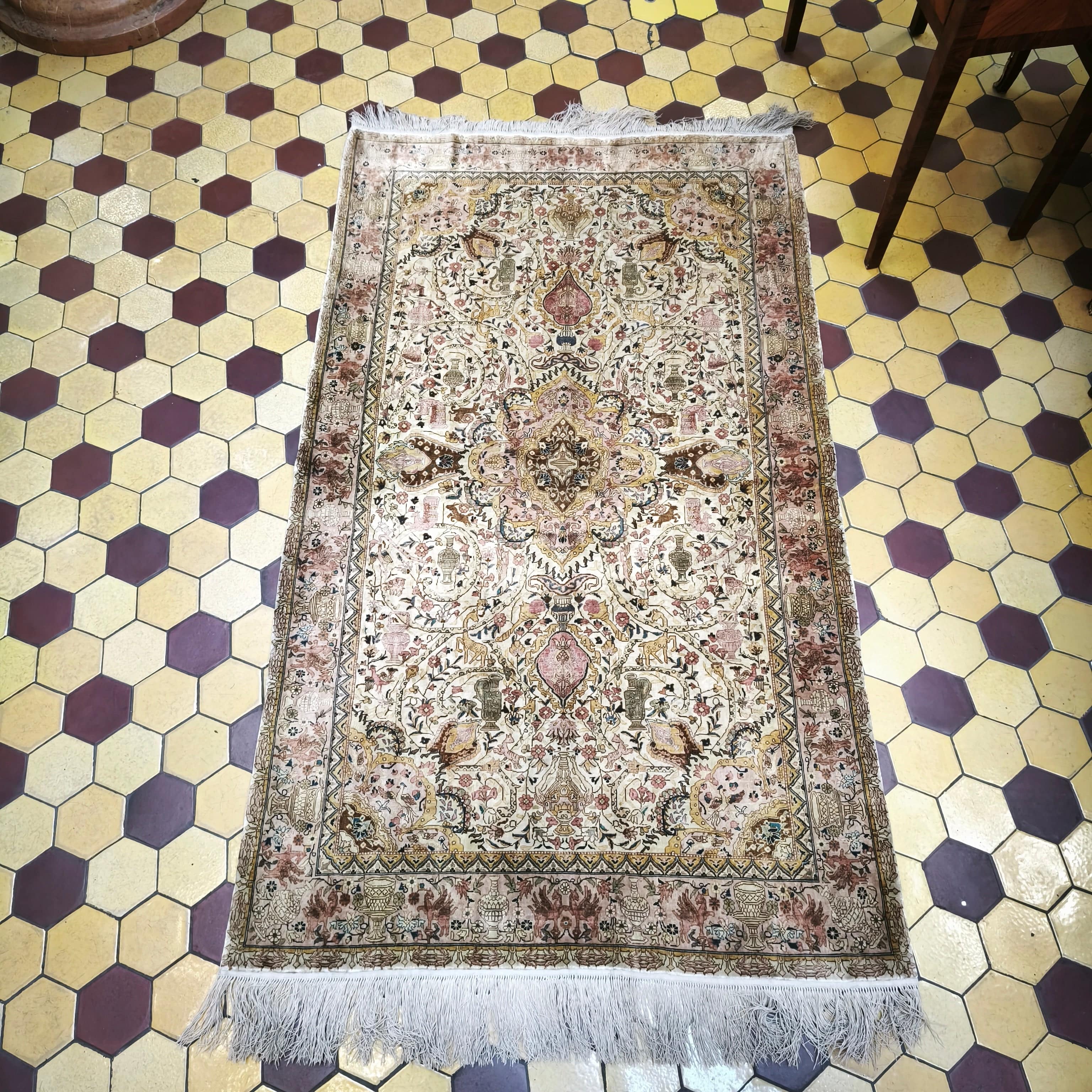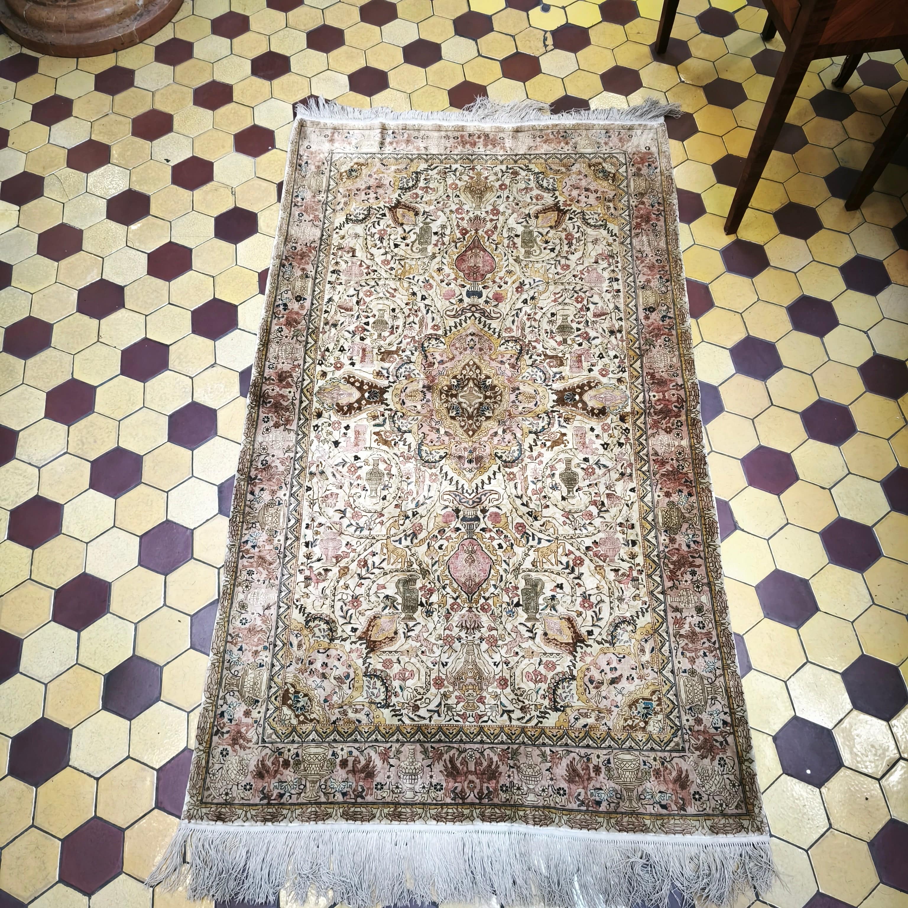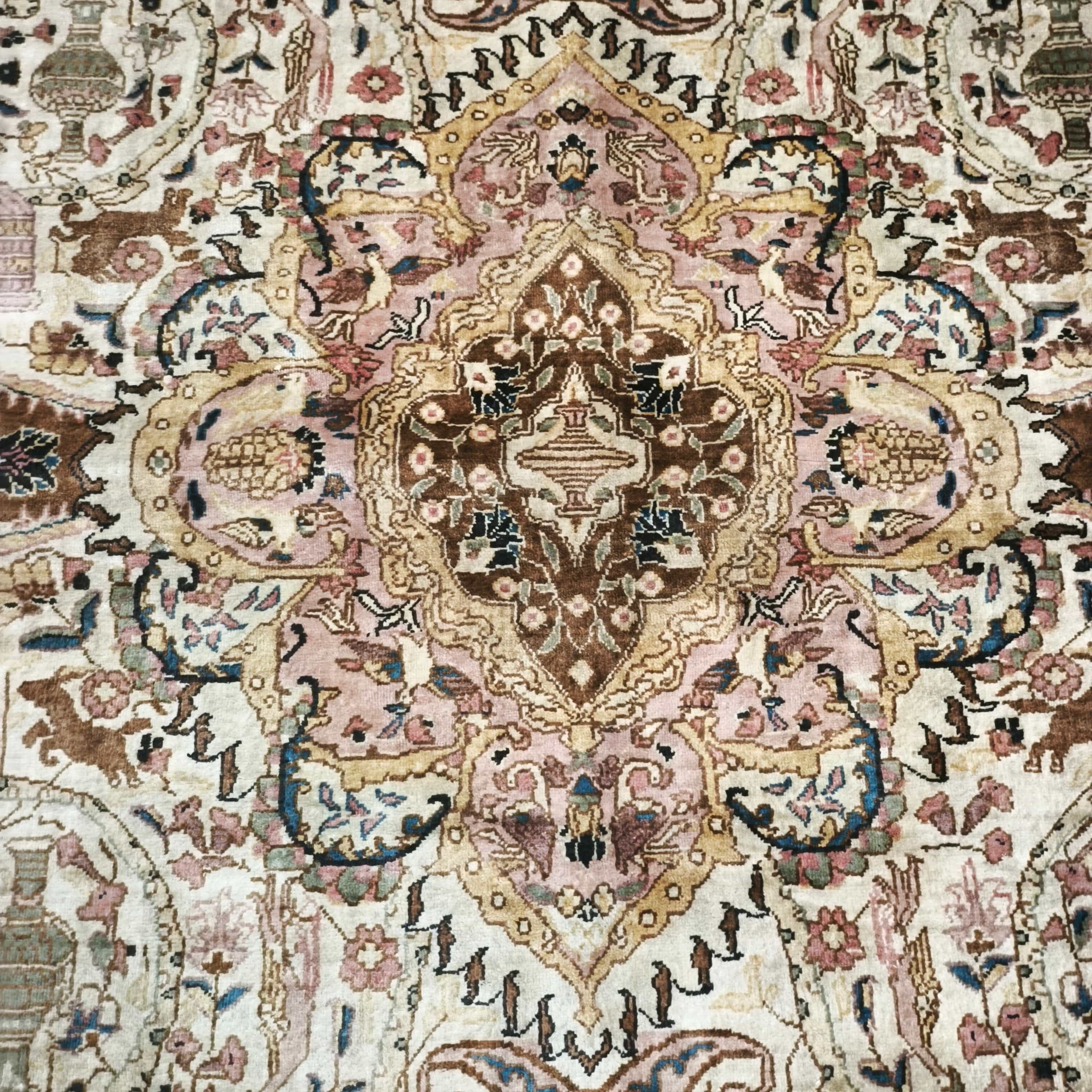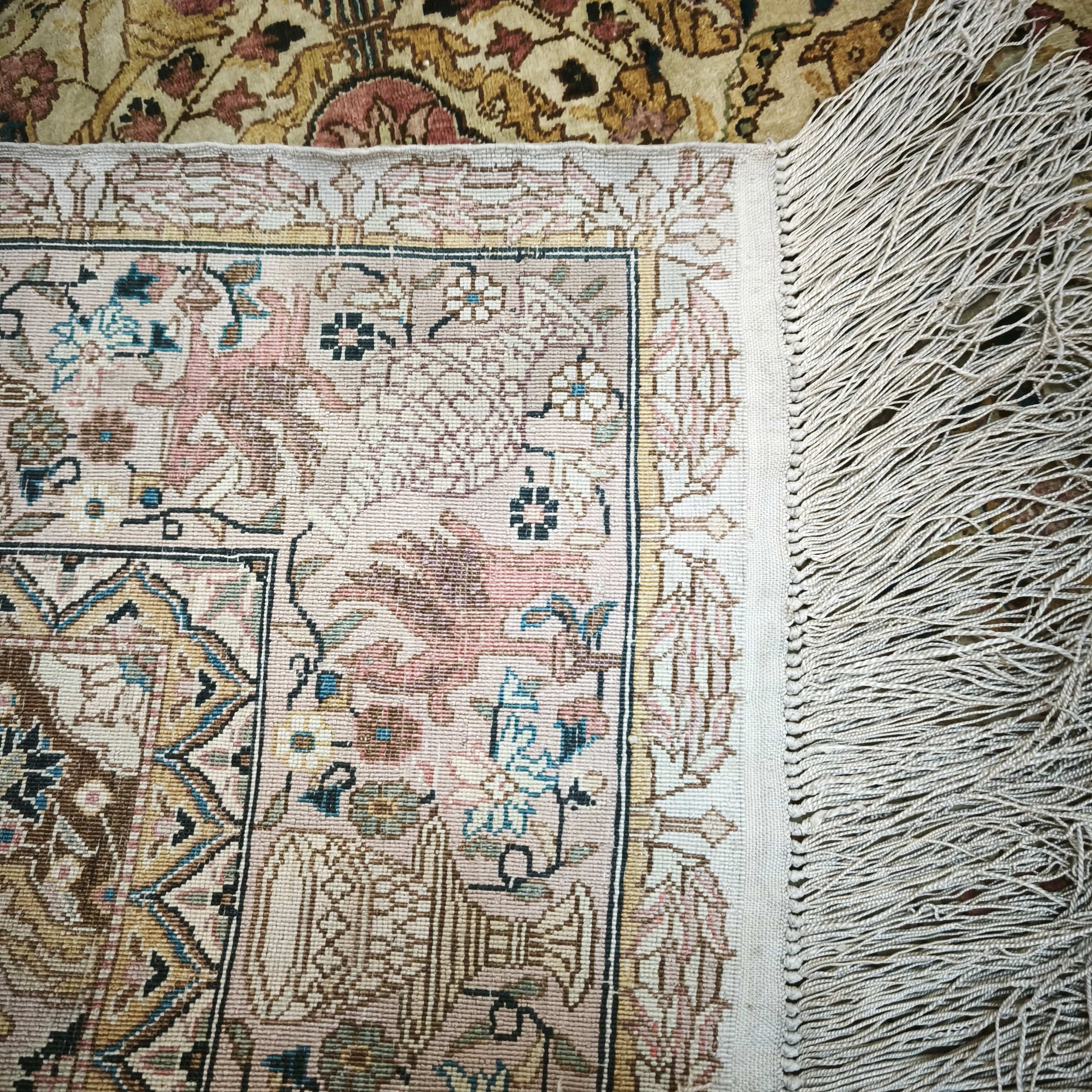 Alfombra Pakistaní seda y lana tonos amarillos y rosas 90X140