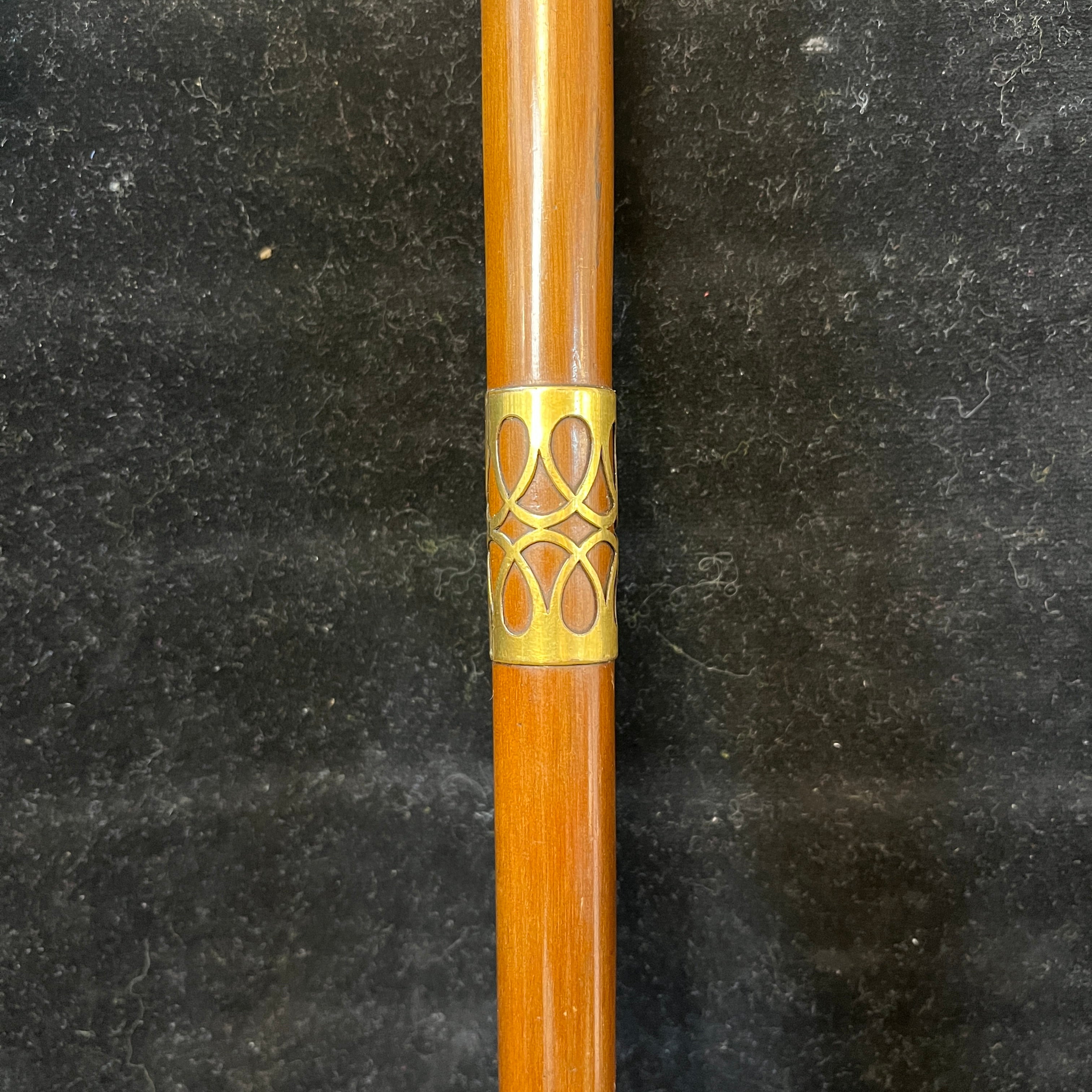 Bastón en caoba con aplicaciones en bronce