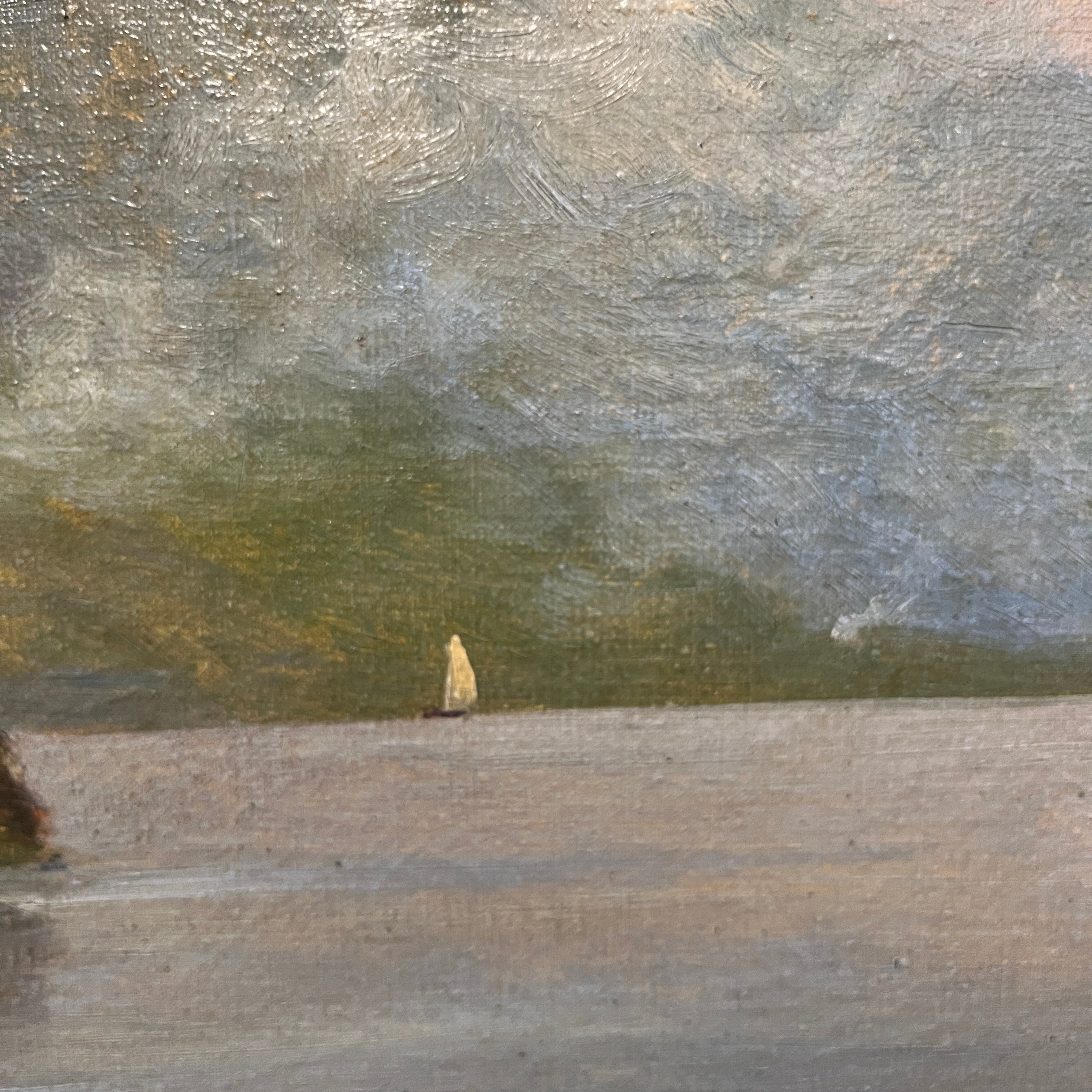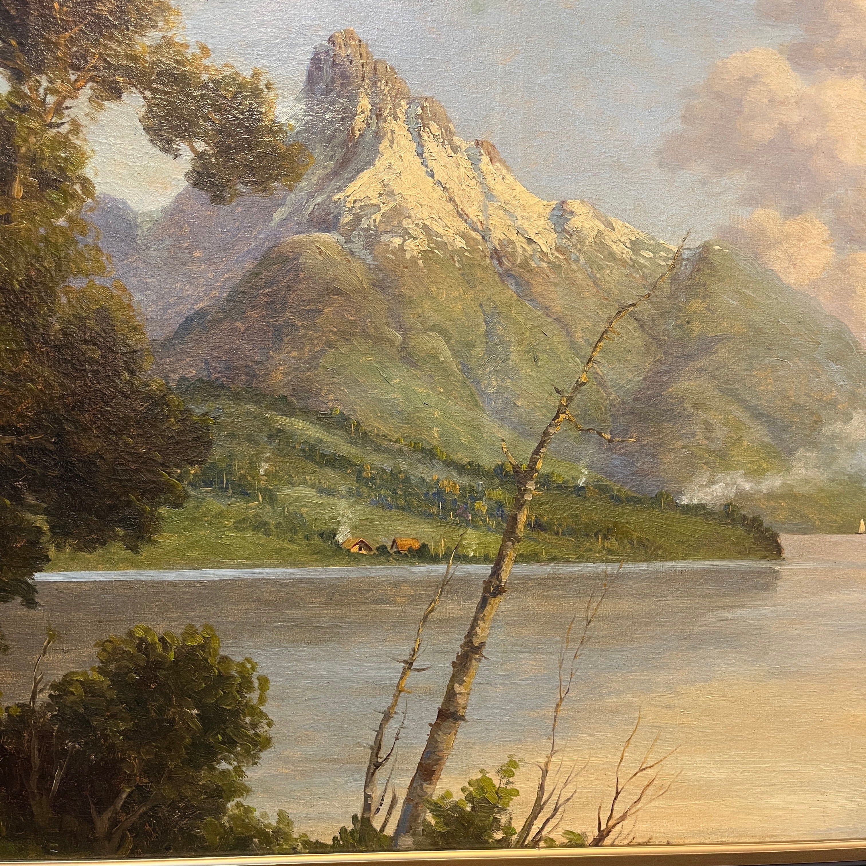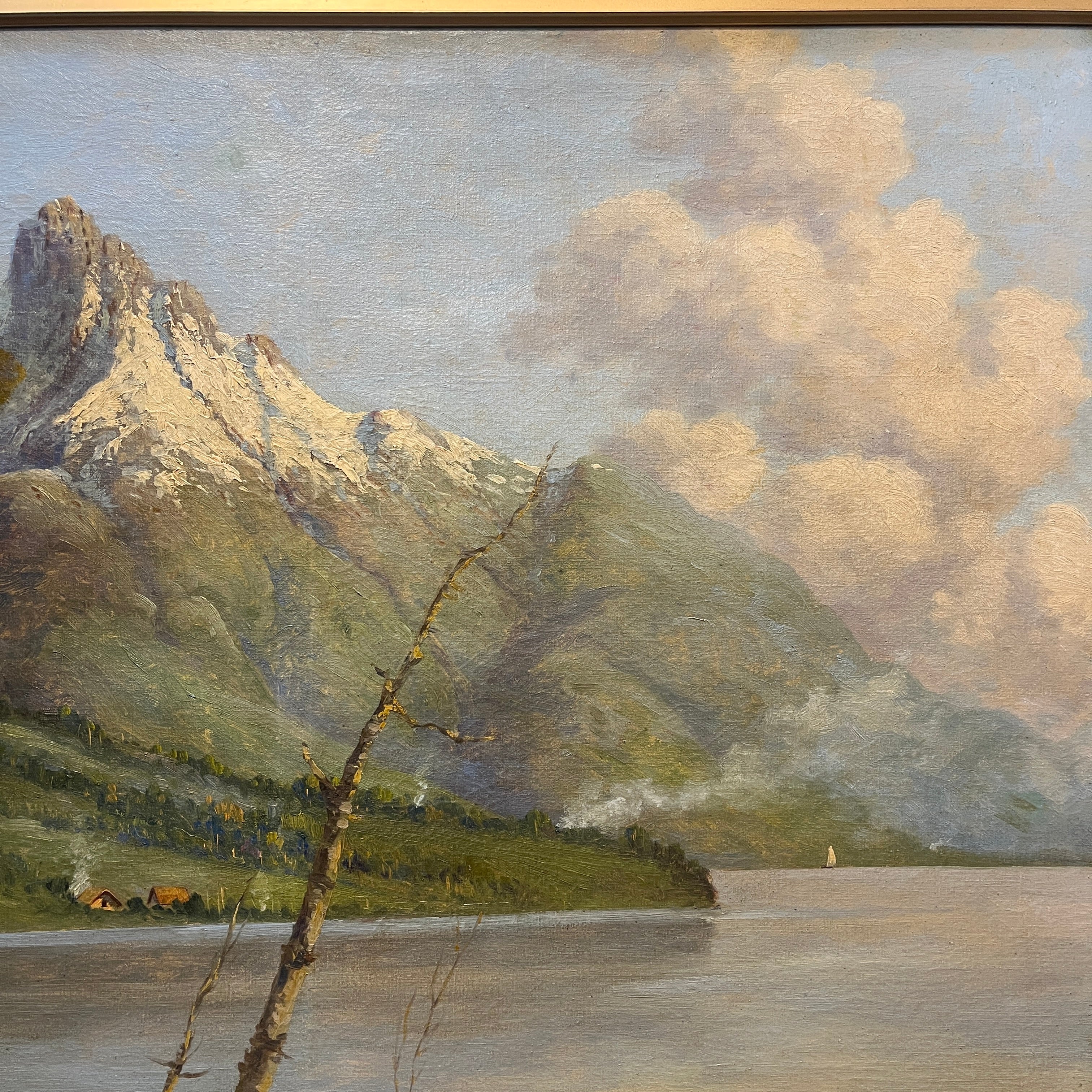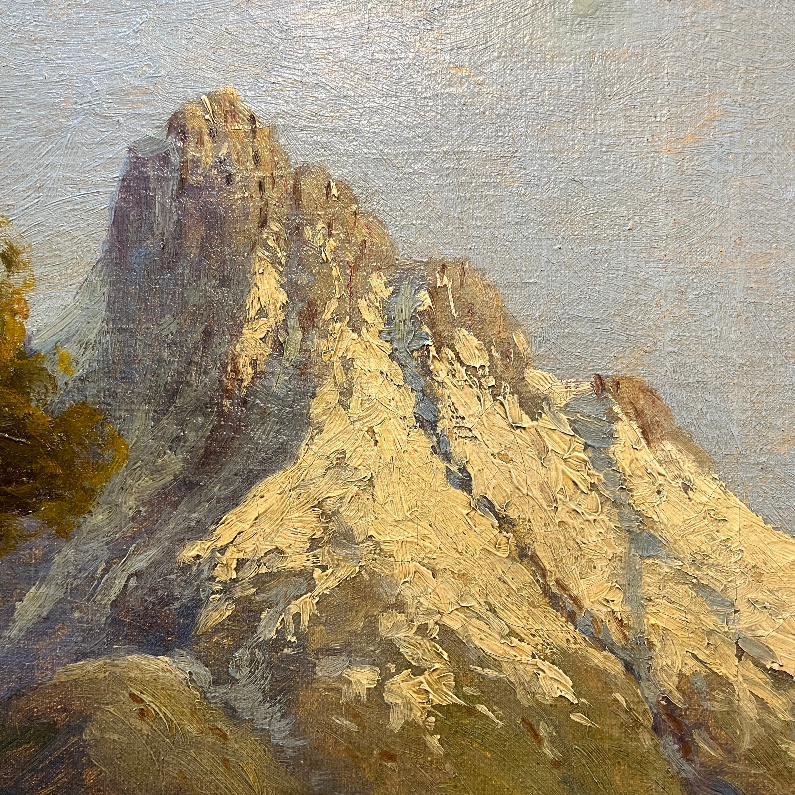 Particular óleo del talentoso pintor chileno Ramos Catalán, esta pintura en particular nos muestra tonalidades mucho más intensas que los clásicos que podemos apreciar. Una cordillera fuerte y muy presente con más detalles. Este cuadro tiene en la parte trasera de la tela el sello de originalidad del museo. Su marco sobrio permite dar más atención a la obra.