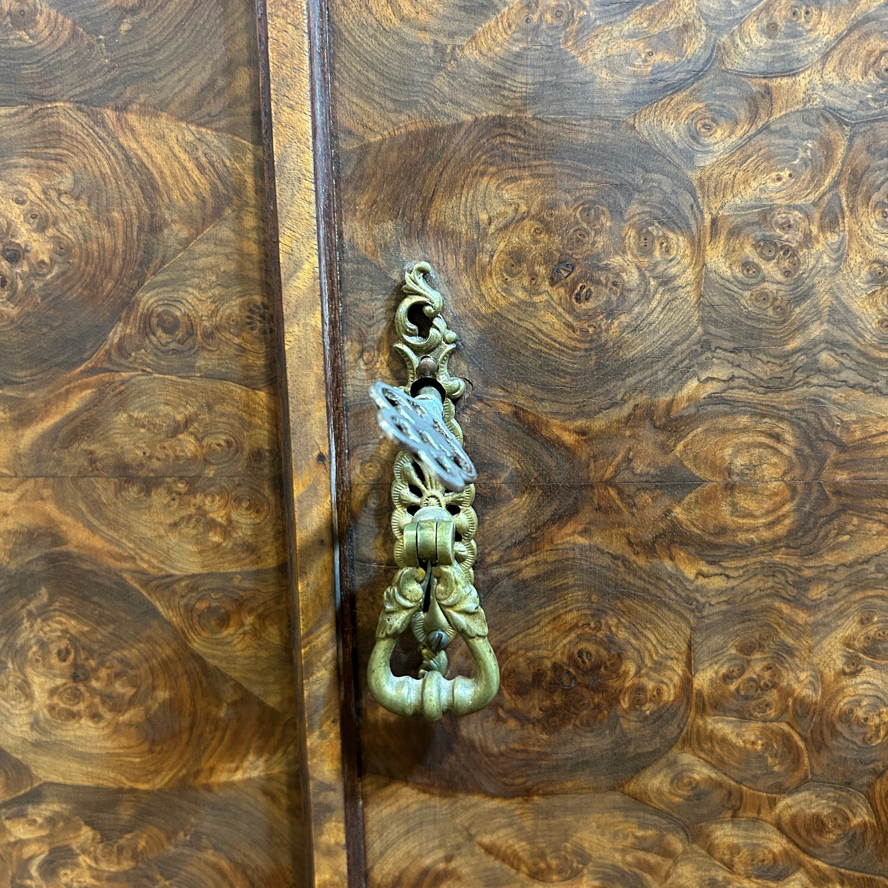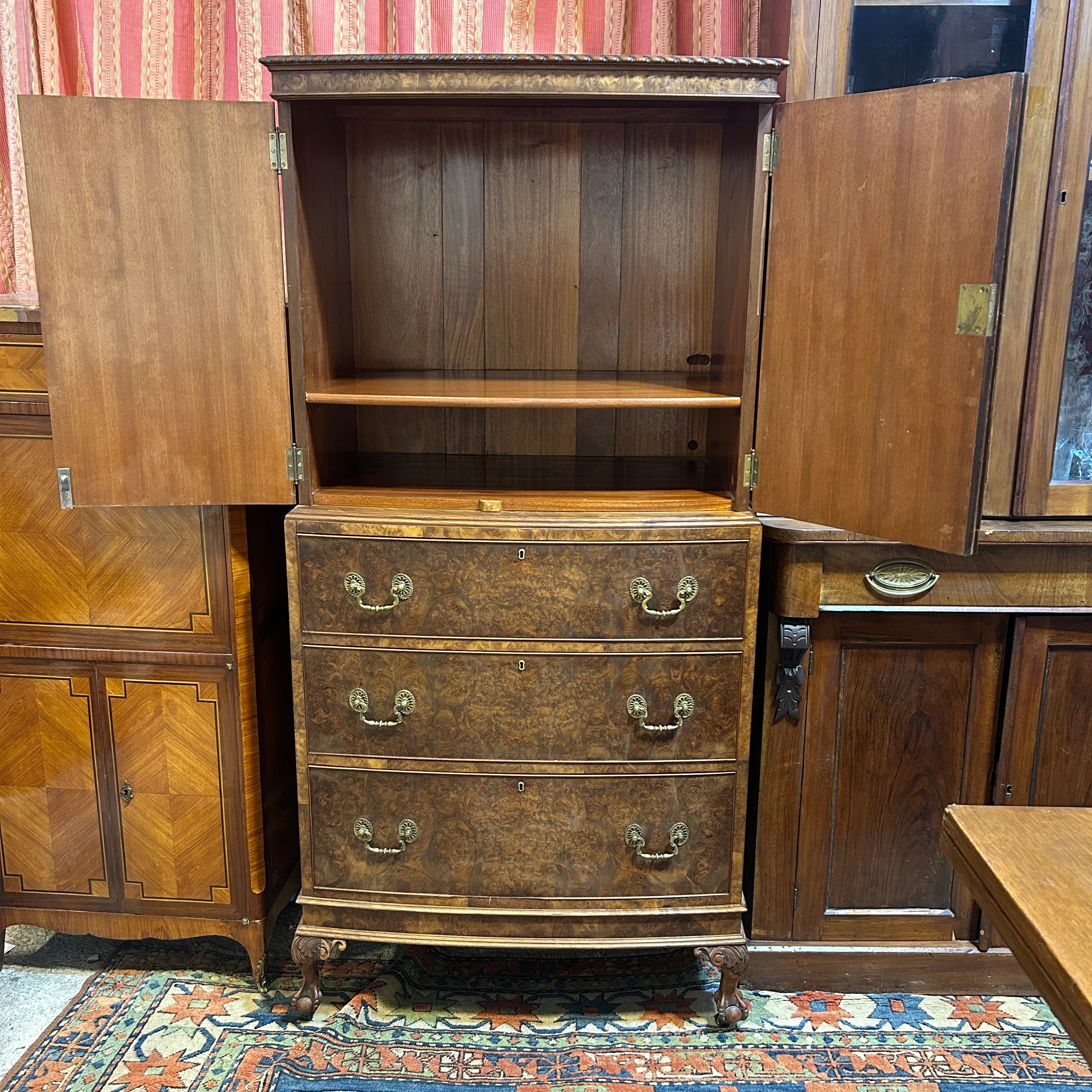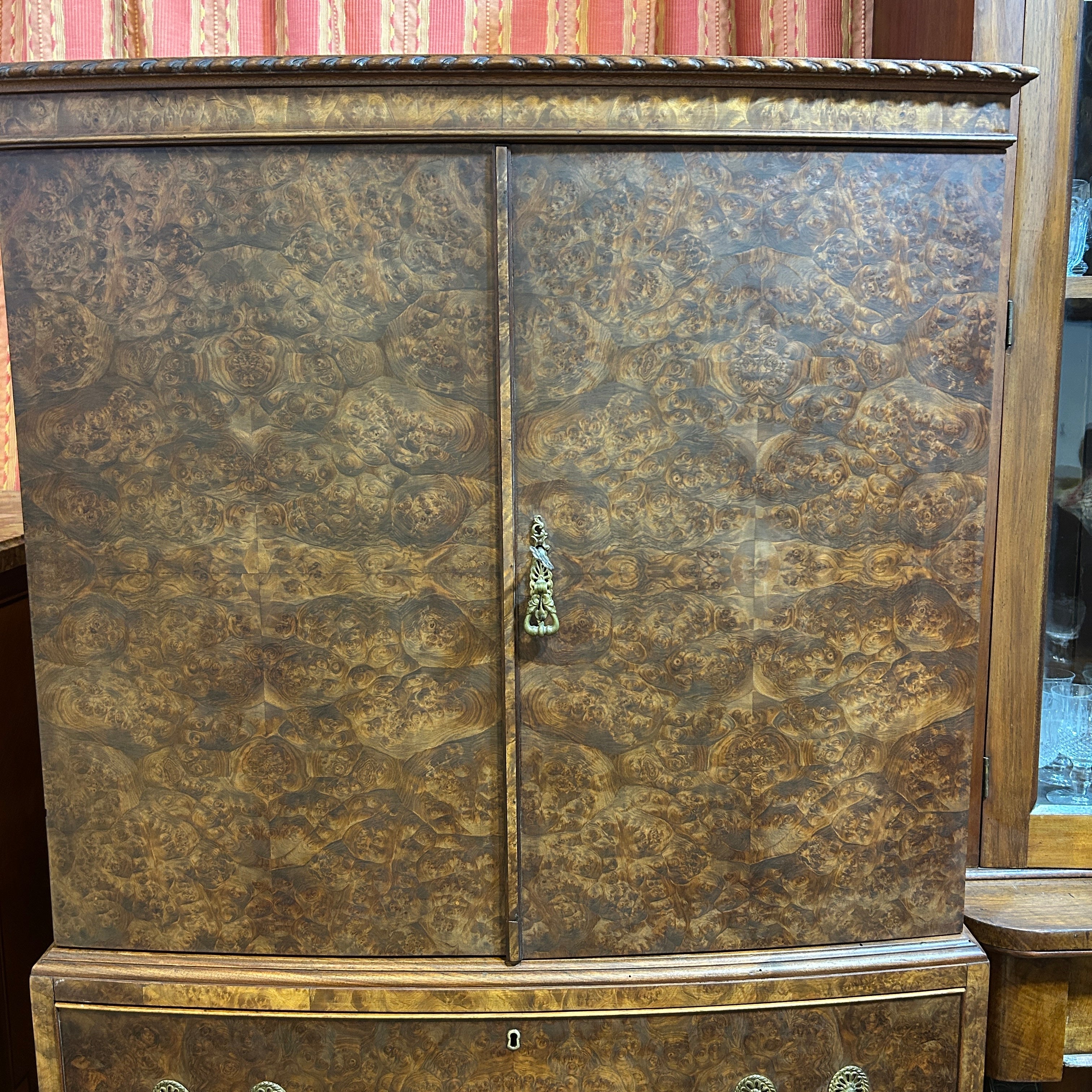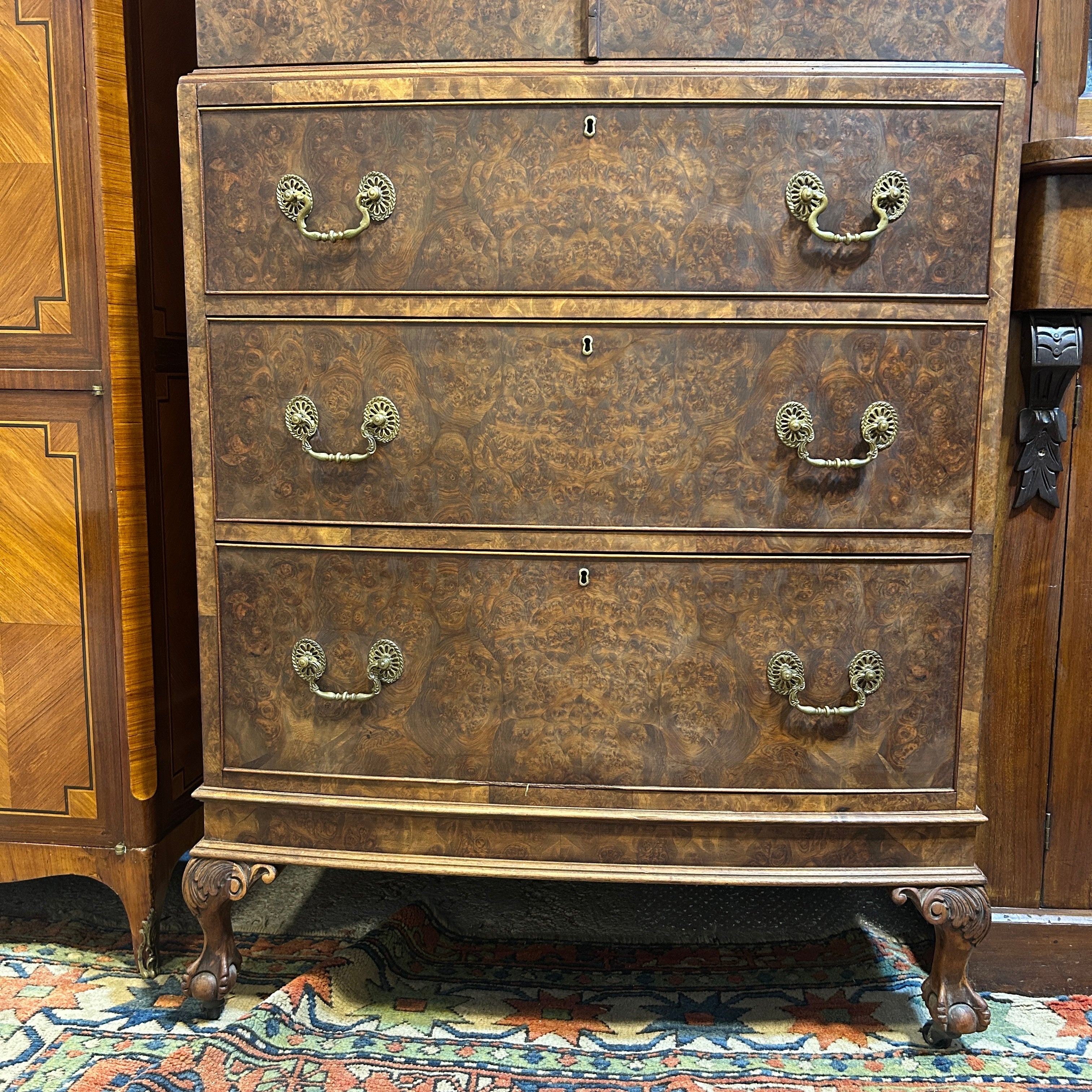 Cabinet chiffonier inglés Chippendale de nogal y raíz de nogal mediados siglo XX