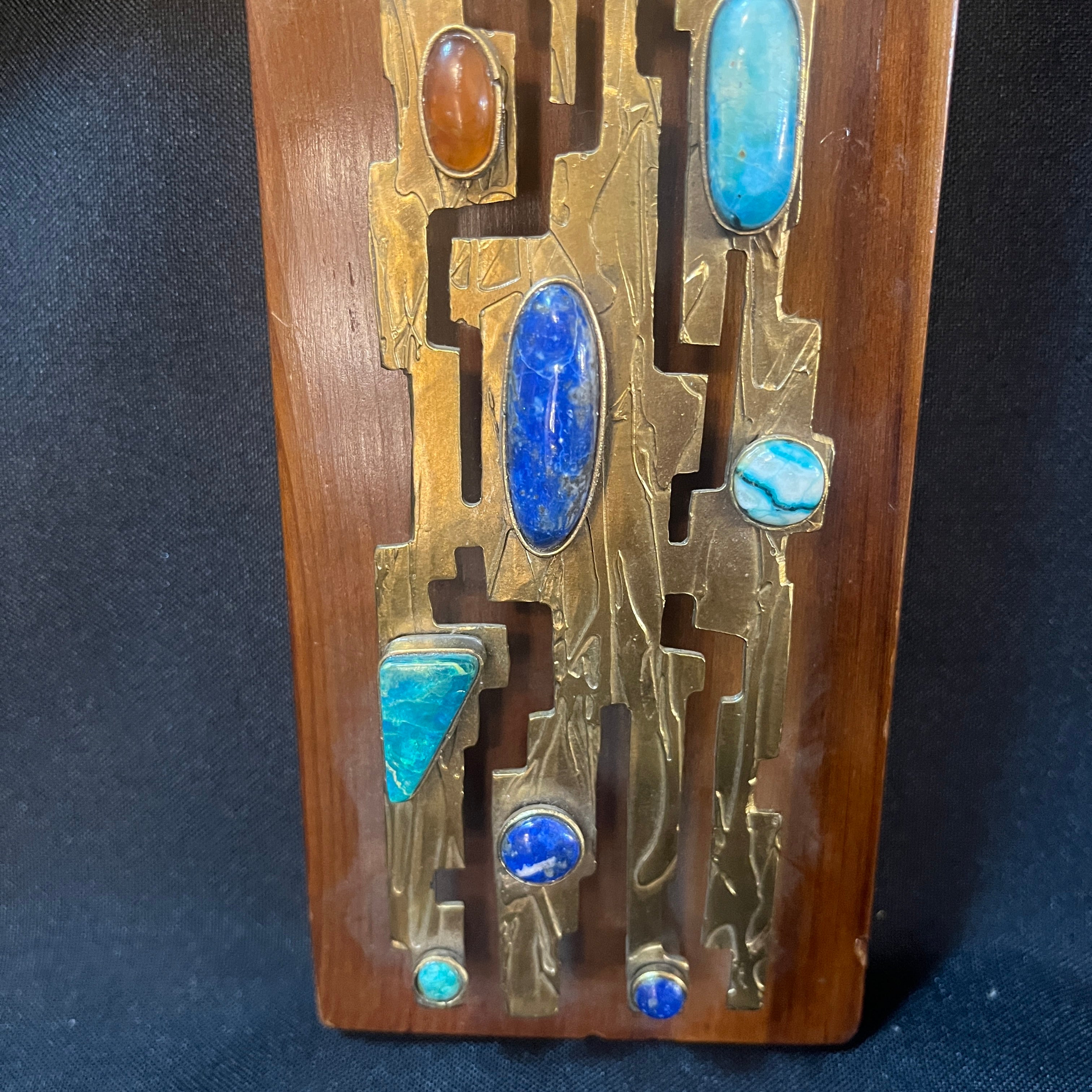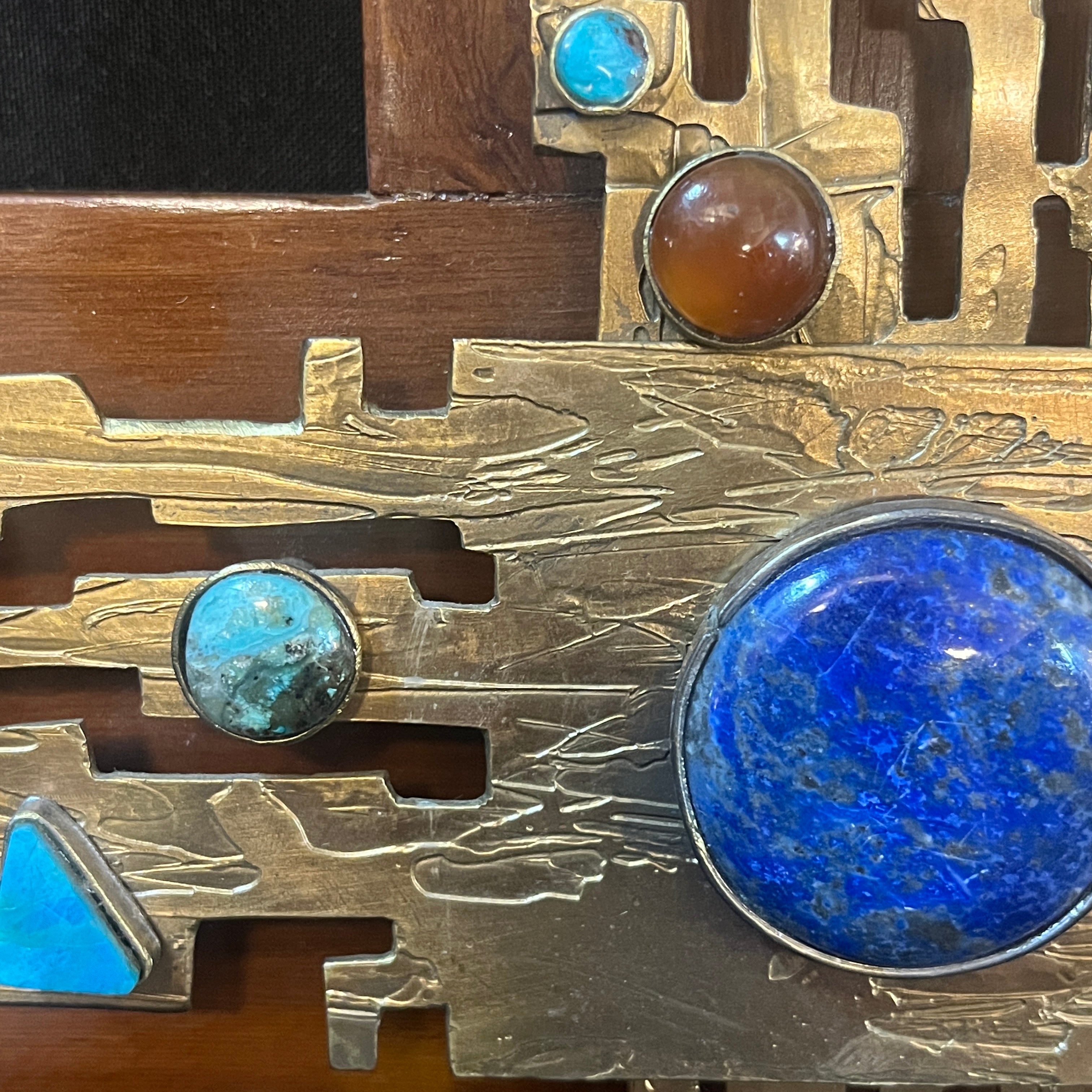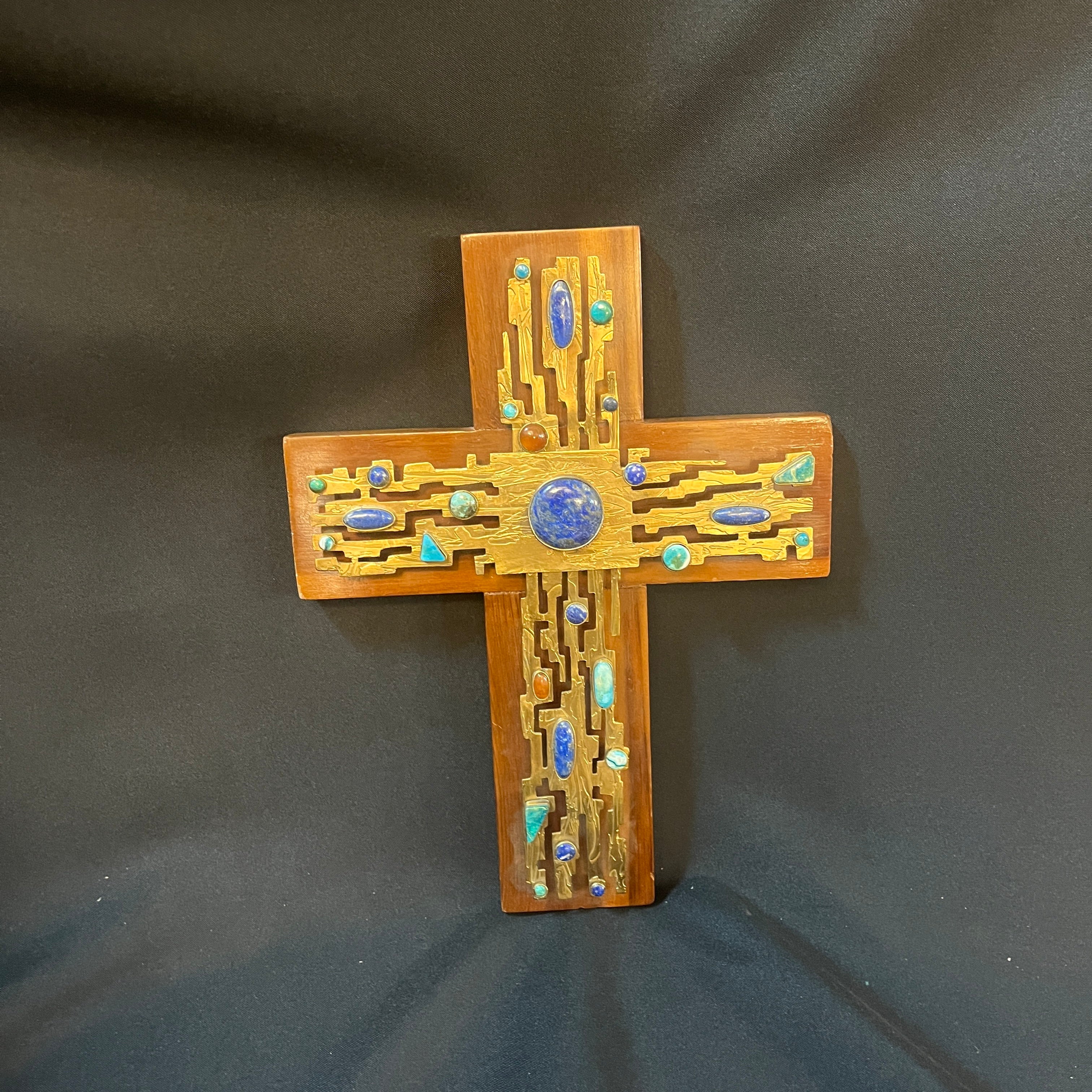 Alicia Cáceres y Juan Reyes - Cruz en bronce madera e incrustaciones de lapislázuli turquesa y ágata