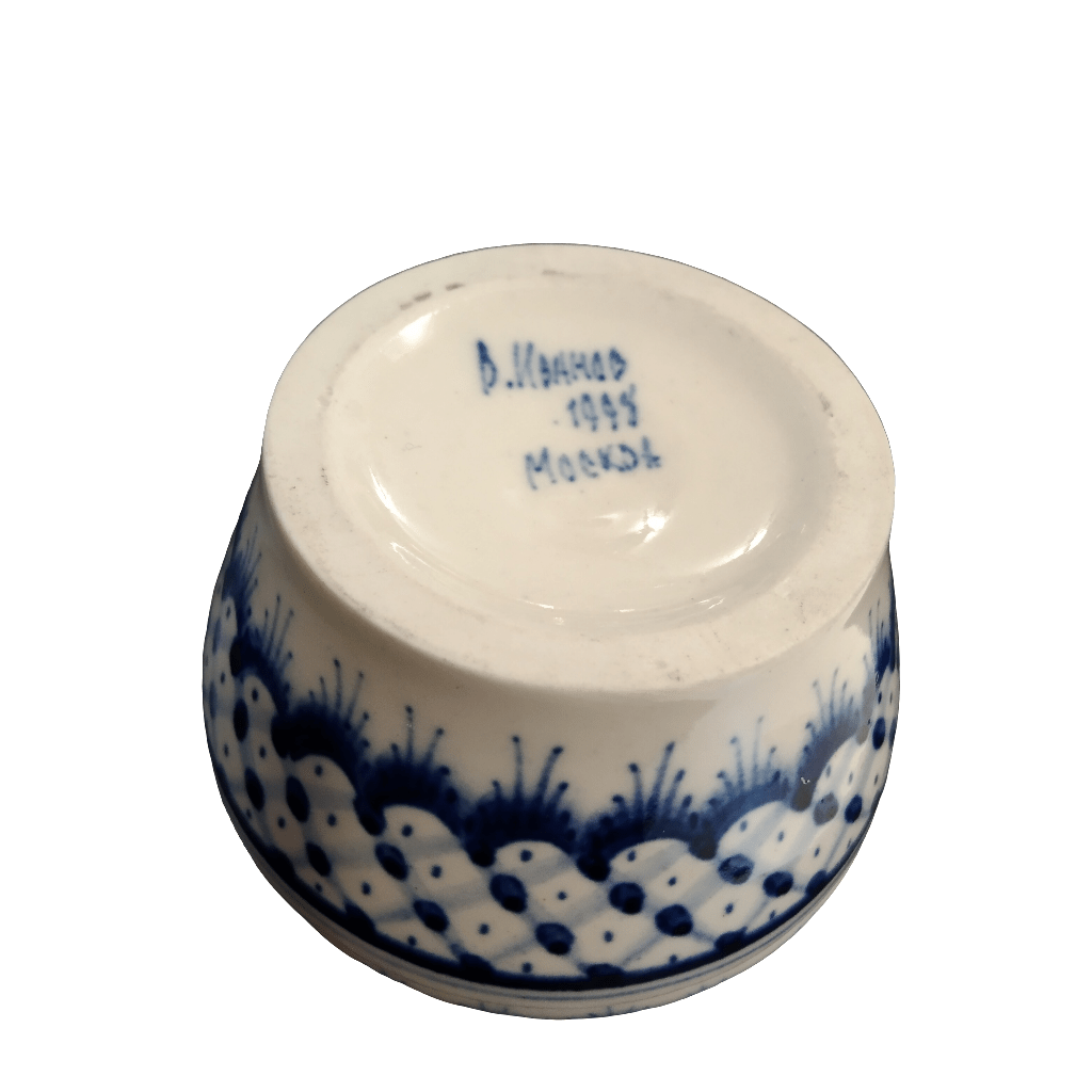 Linda cajita, decorativa o joyero/pastillero, hecha a mano en países bajos, lugar originario de esta técnica de esmaltado en 1998. La pieza está pintada a mano con motivos florales y patrones en azul. En su base tiene una incripción con la firma del fabricante y la fecha de fabricación.