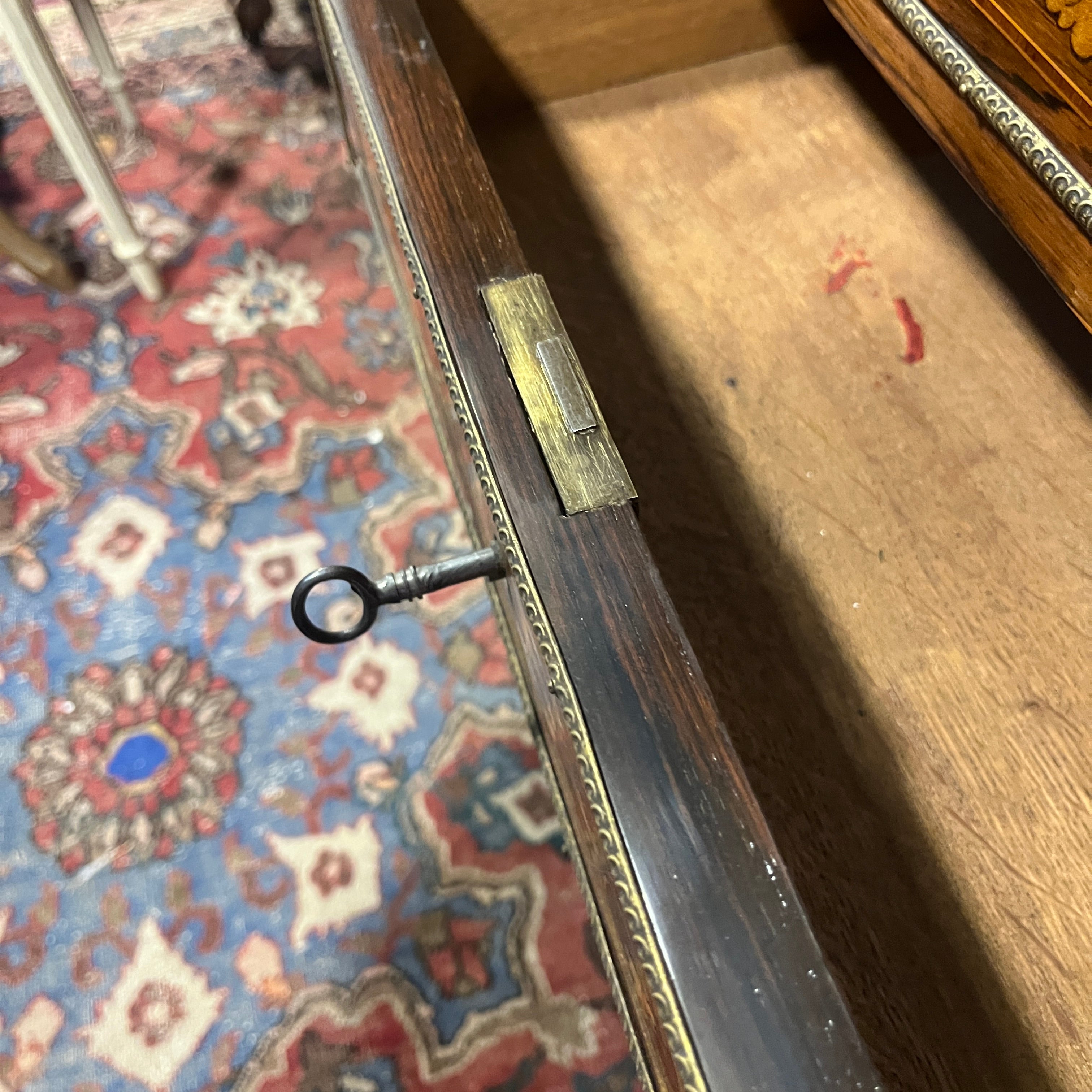 Chiffonier francés Louis XVI marquetería bronce cubierta de mármol y cuero rojo
