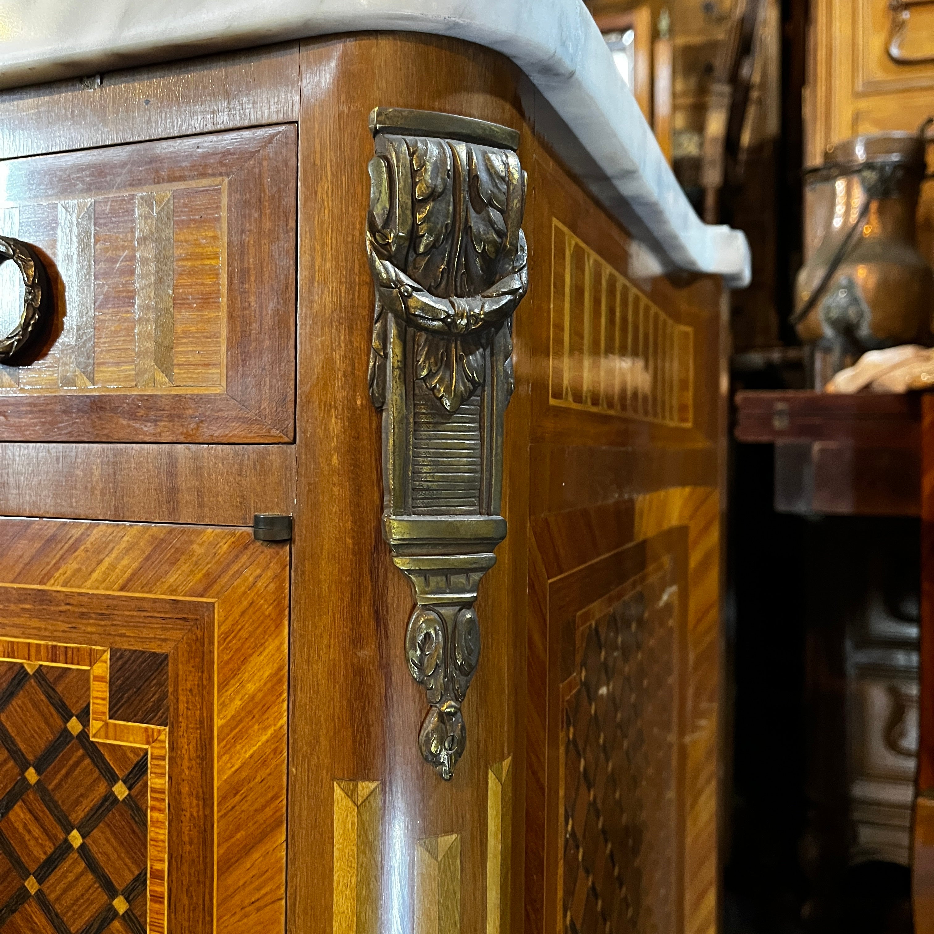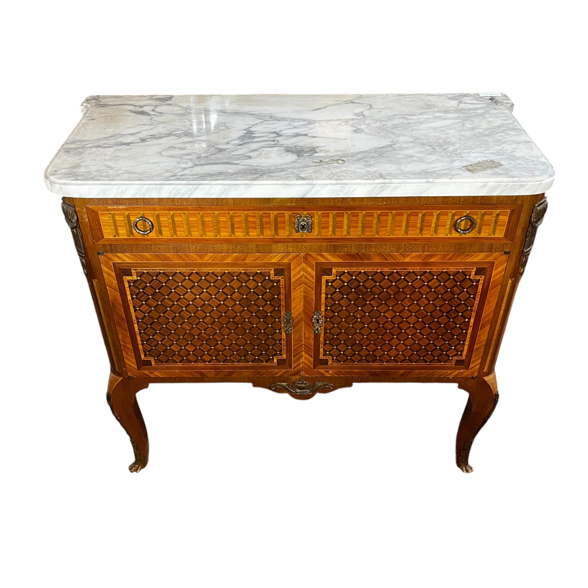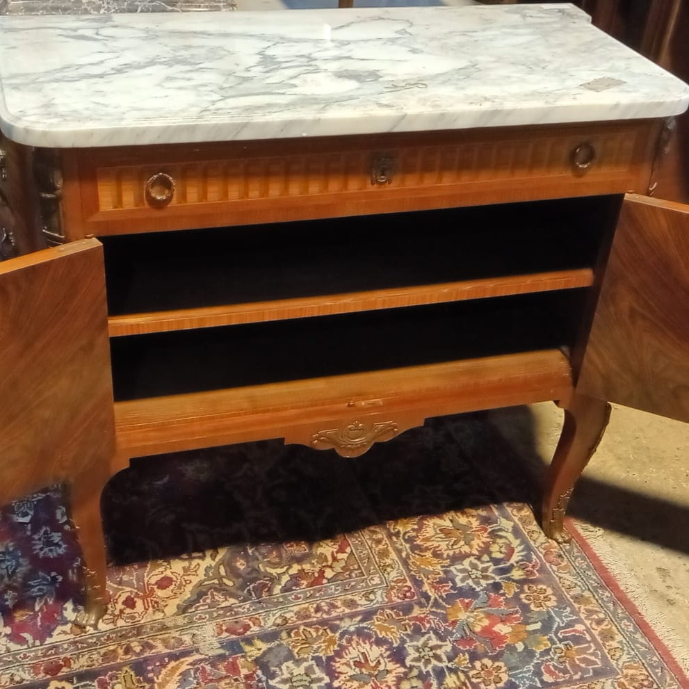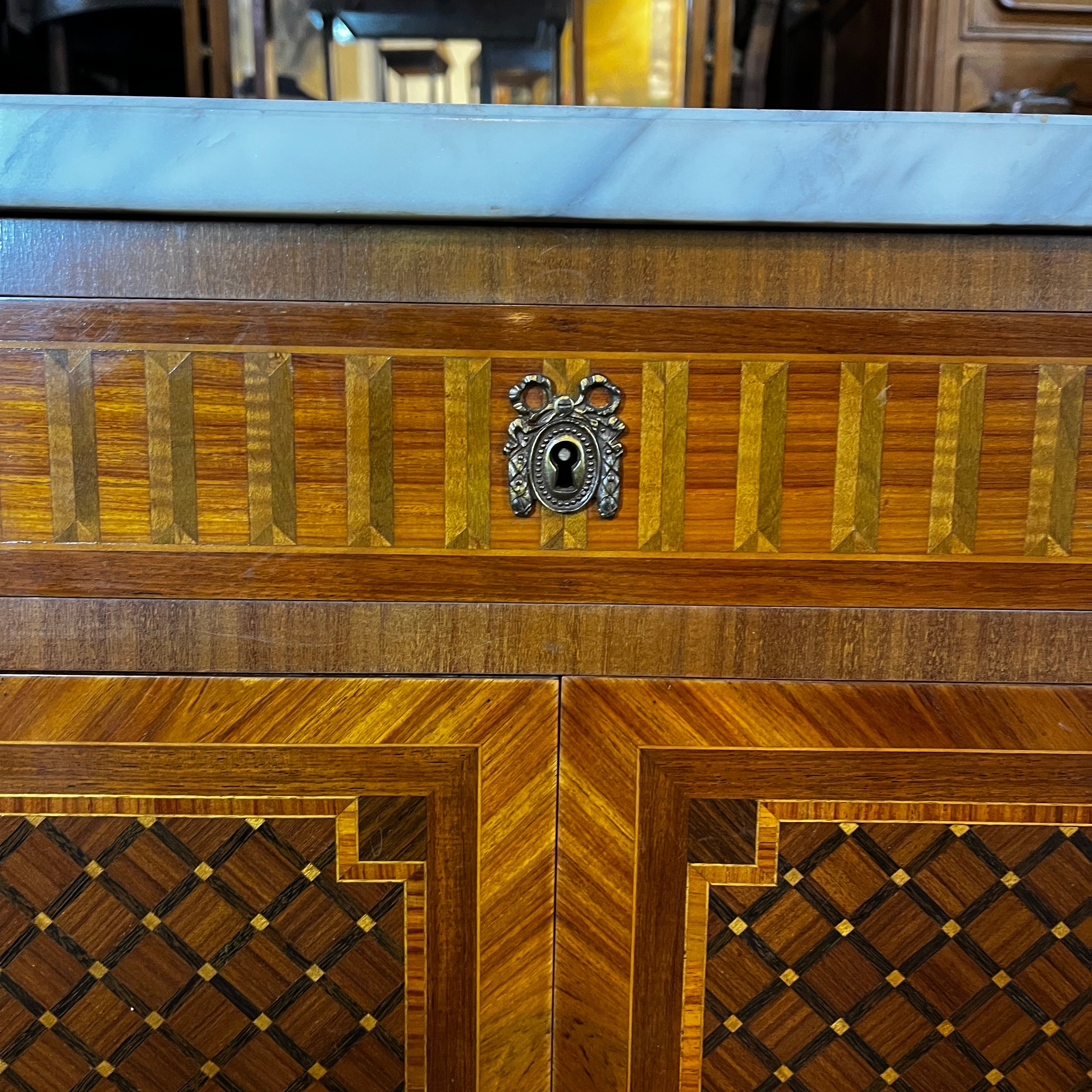 Cómoda estilo Transición lacada mármol blanco y parquetería