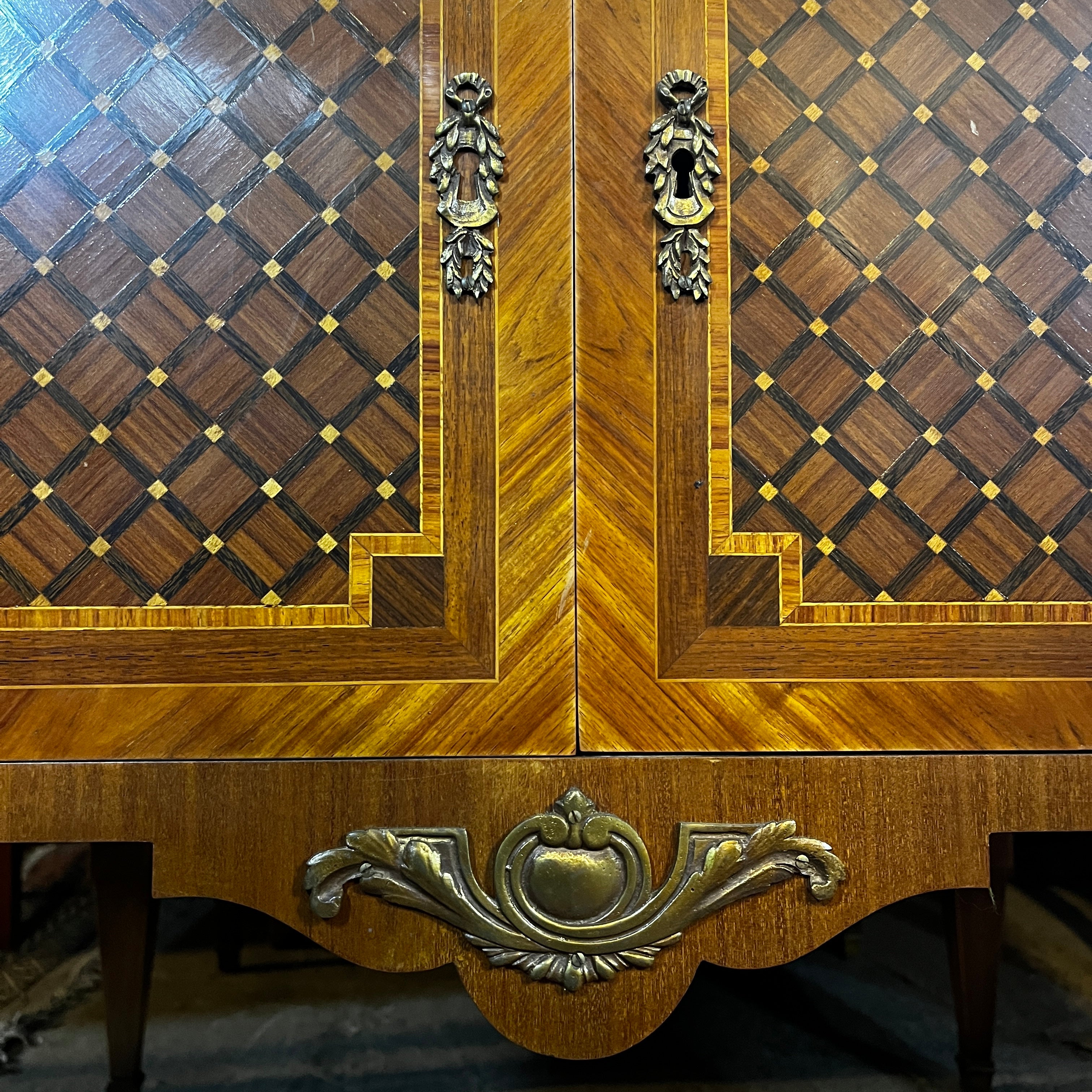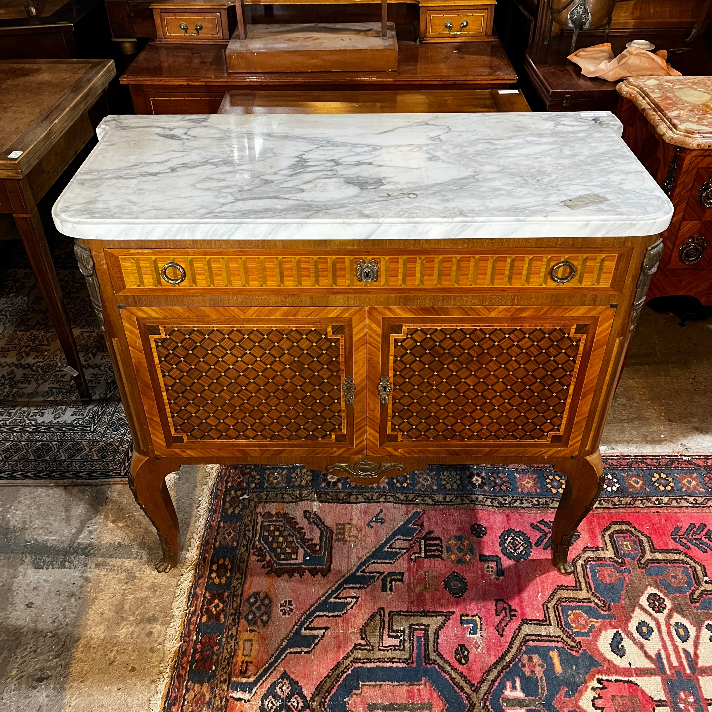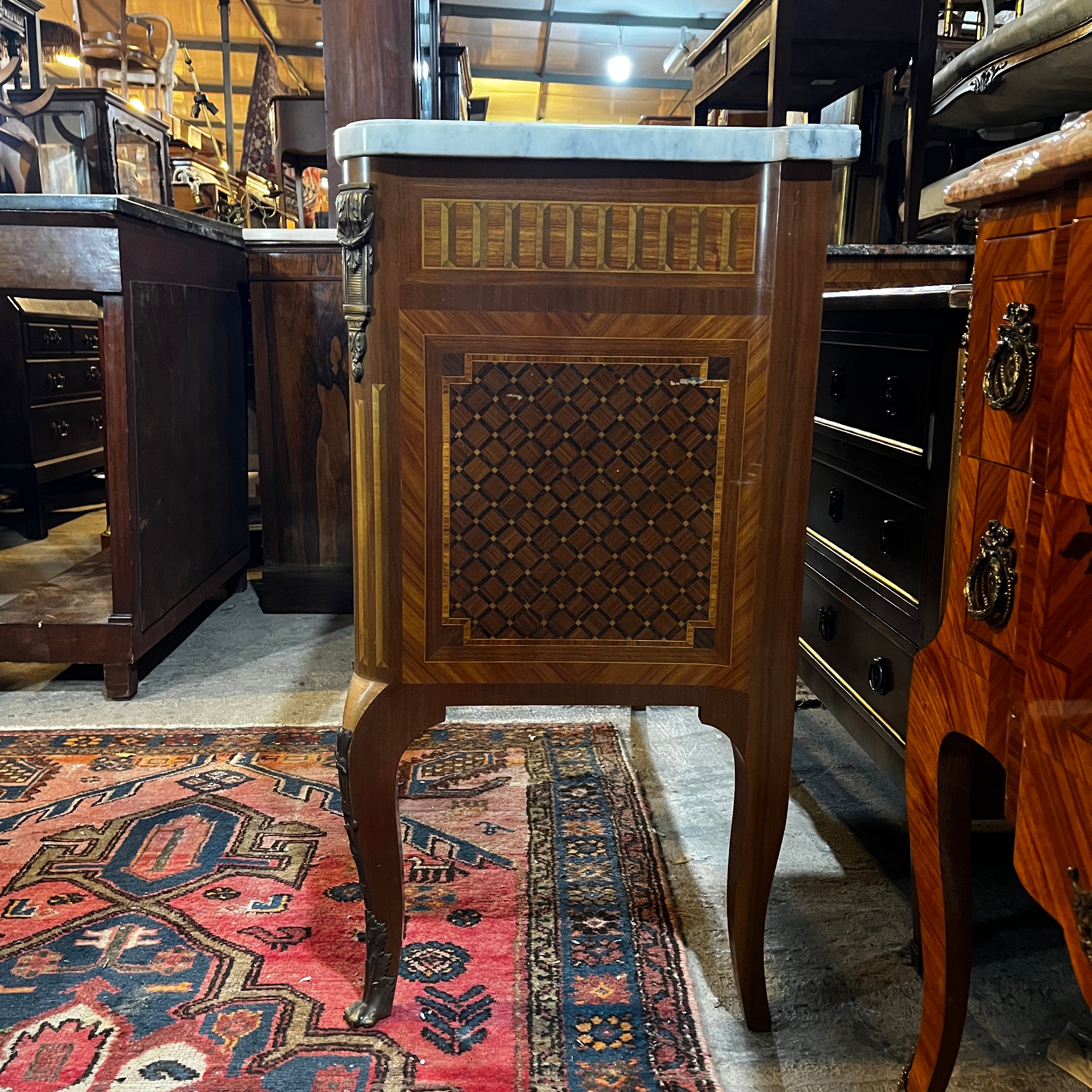 Cómoda estilo Transición lacada mármol blanco y parquetería