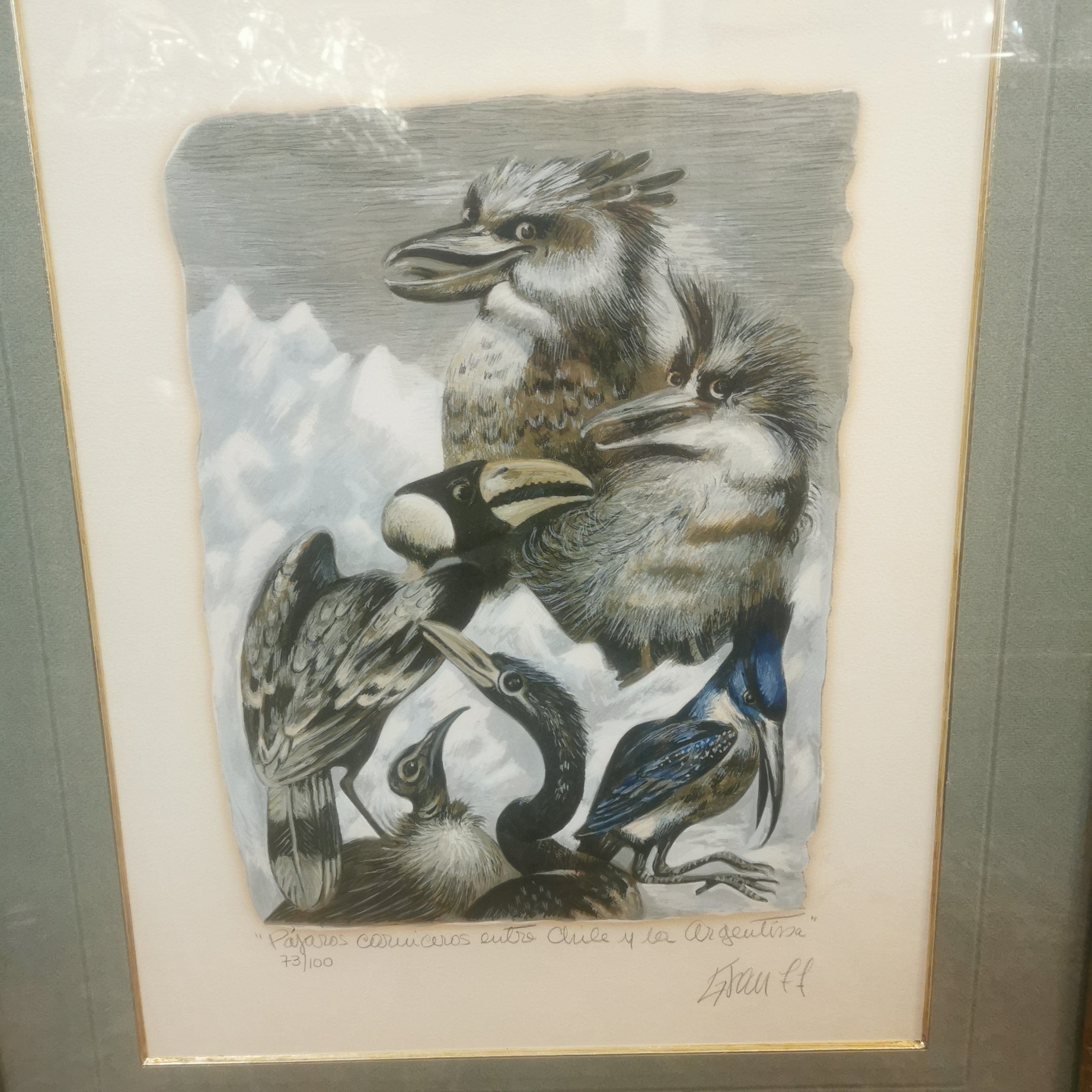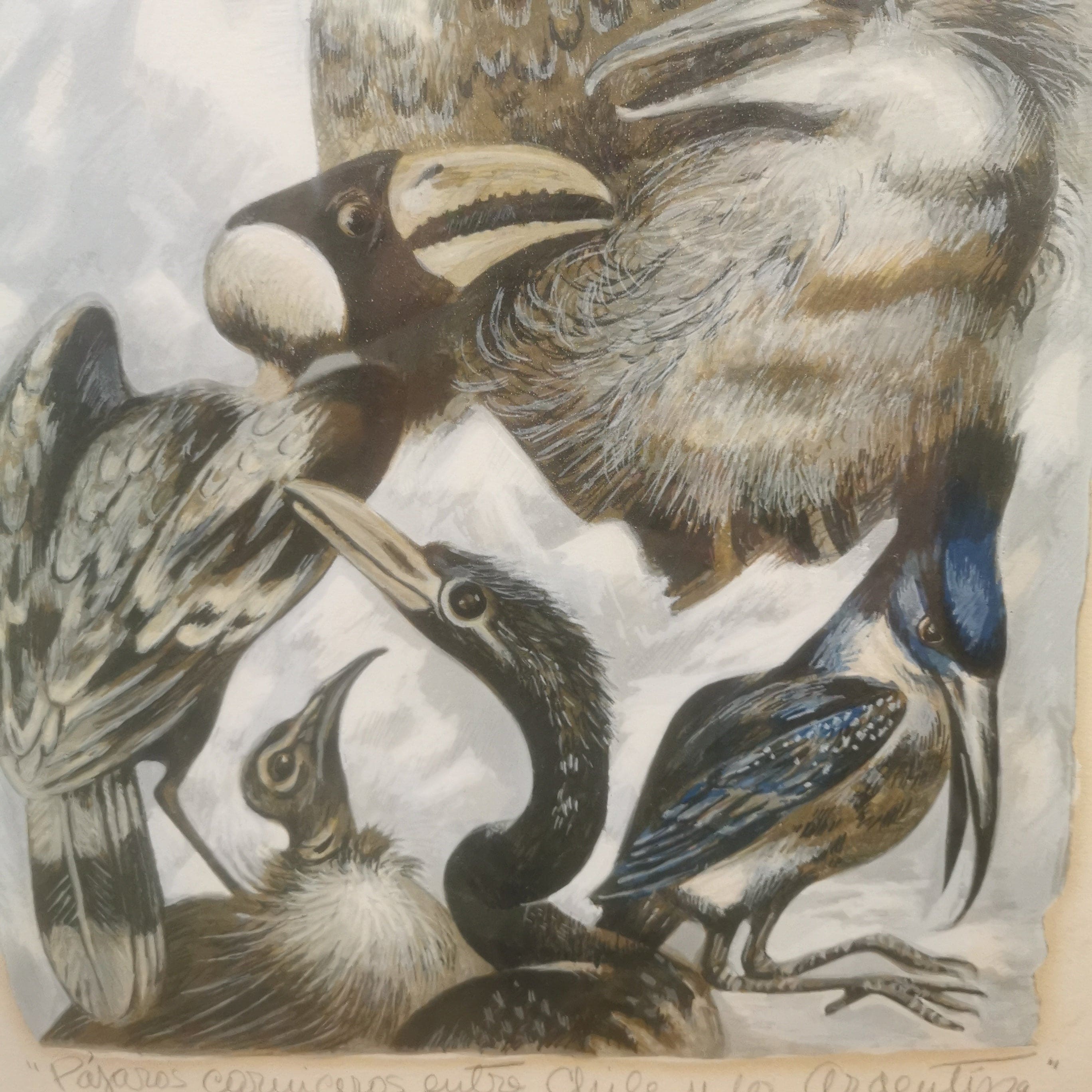 Enrique Grau - Serigrafía sobre papel 'Pájaros carniceros entre Chile y la Argentina'