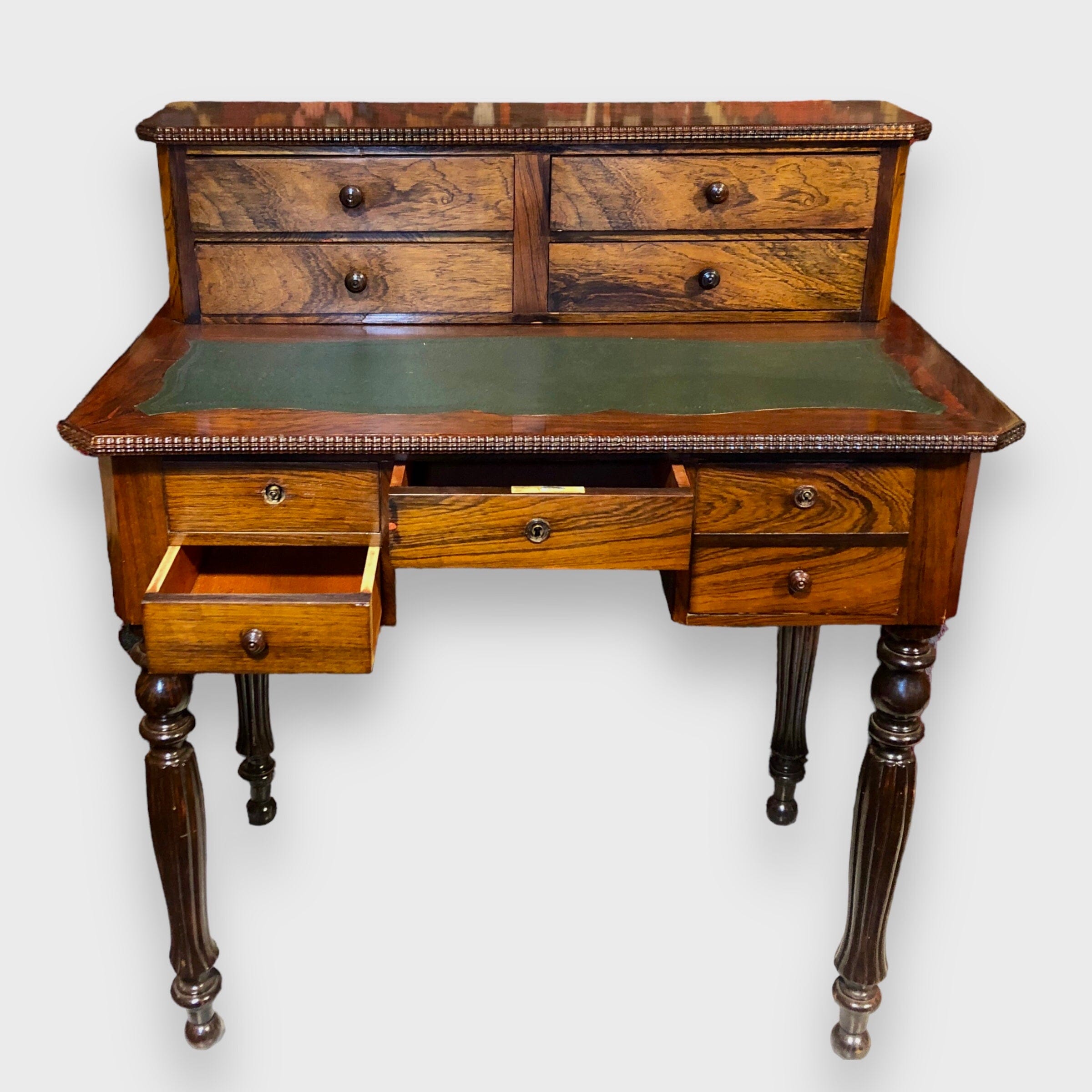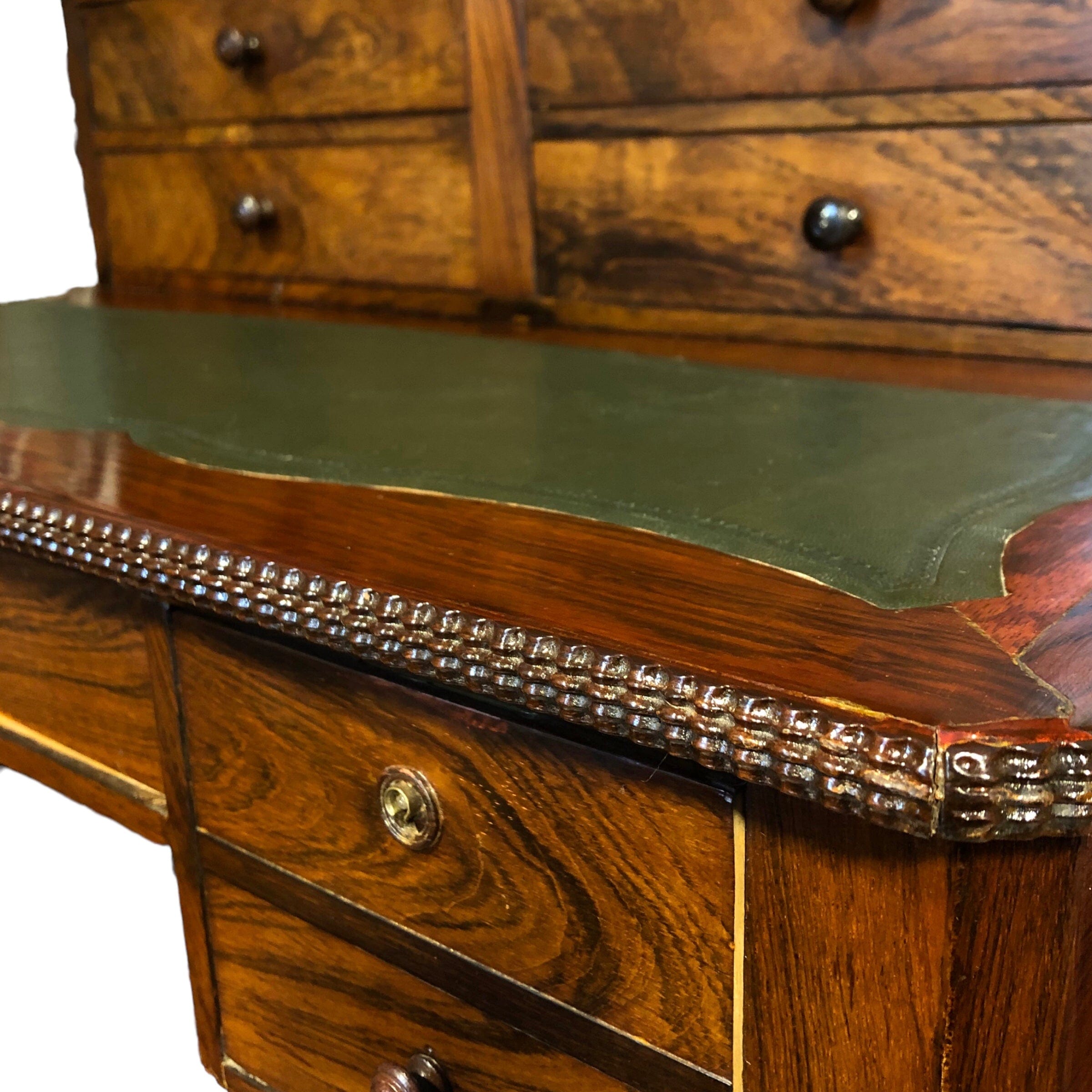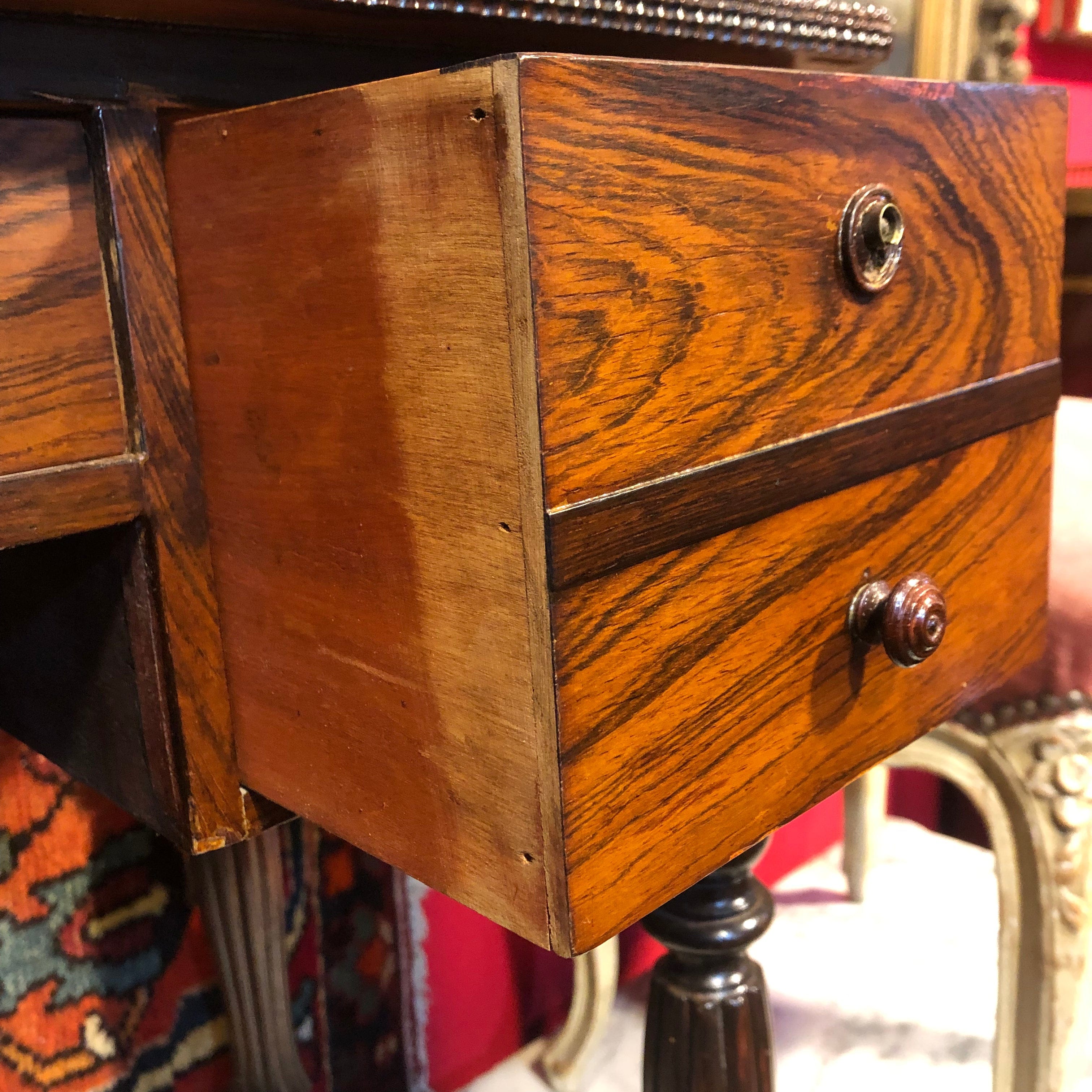 De estilo Louis Philippe, escritorio hecho en madera de jacarandá con 4 cajones superiores y 3 inferiores. Cubierta de cuero original.