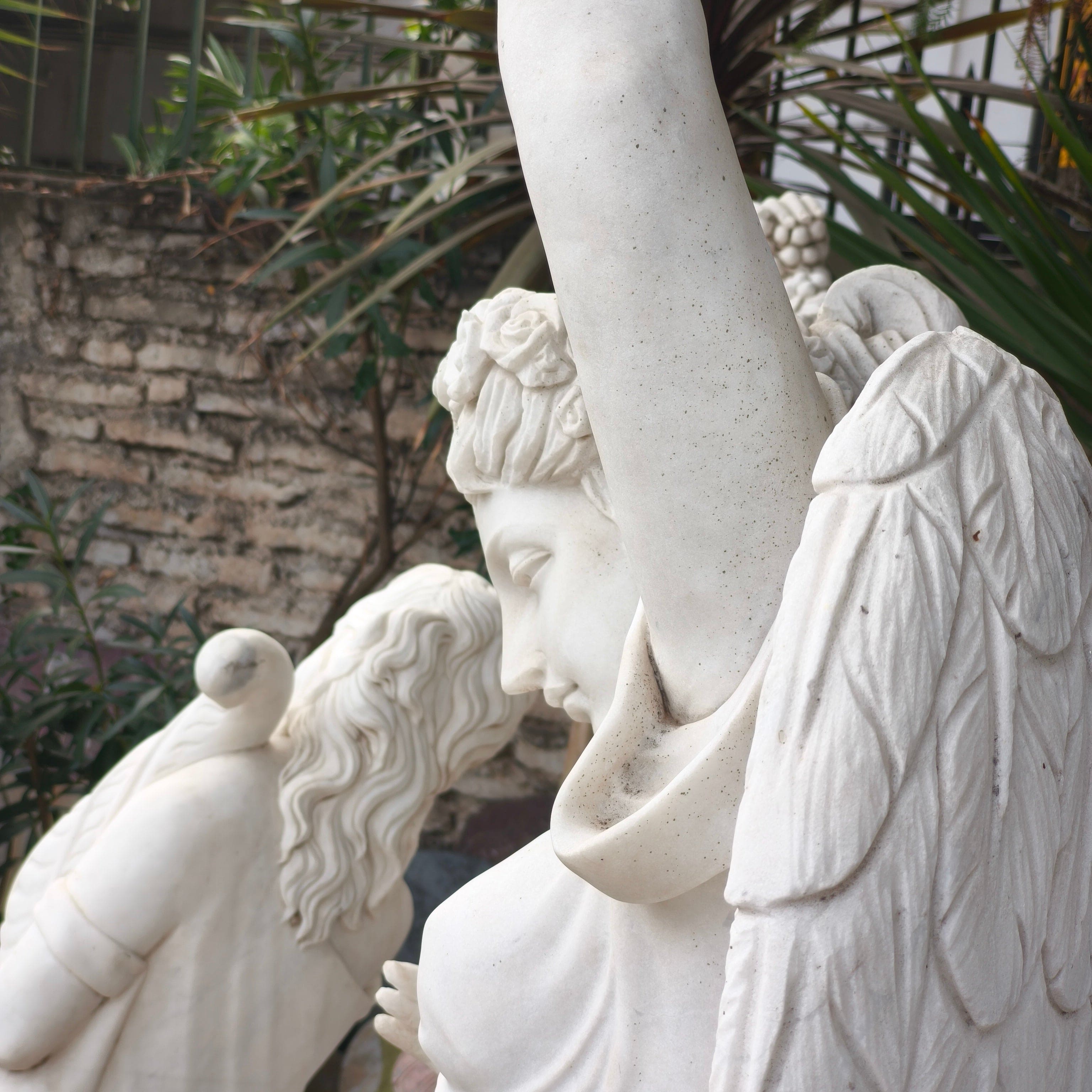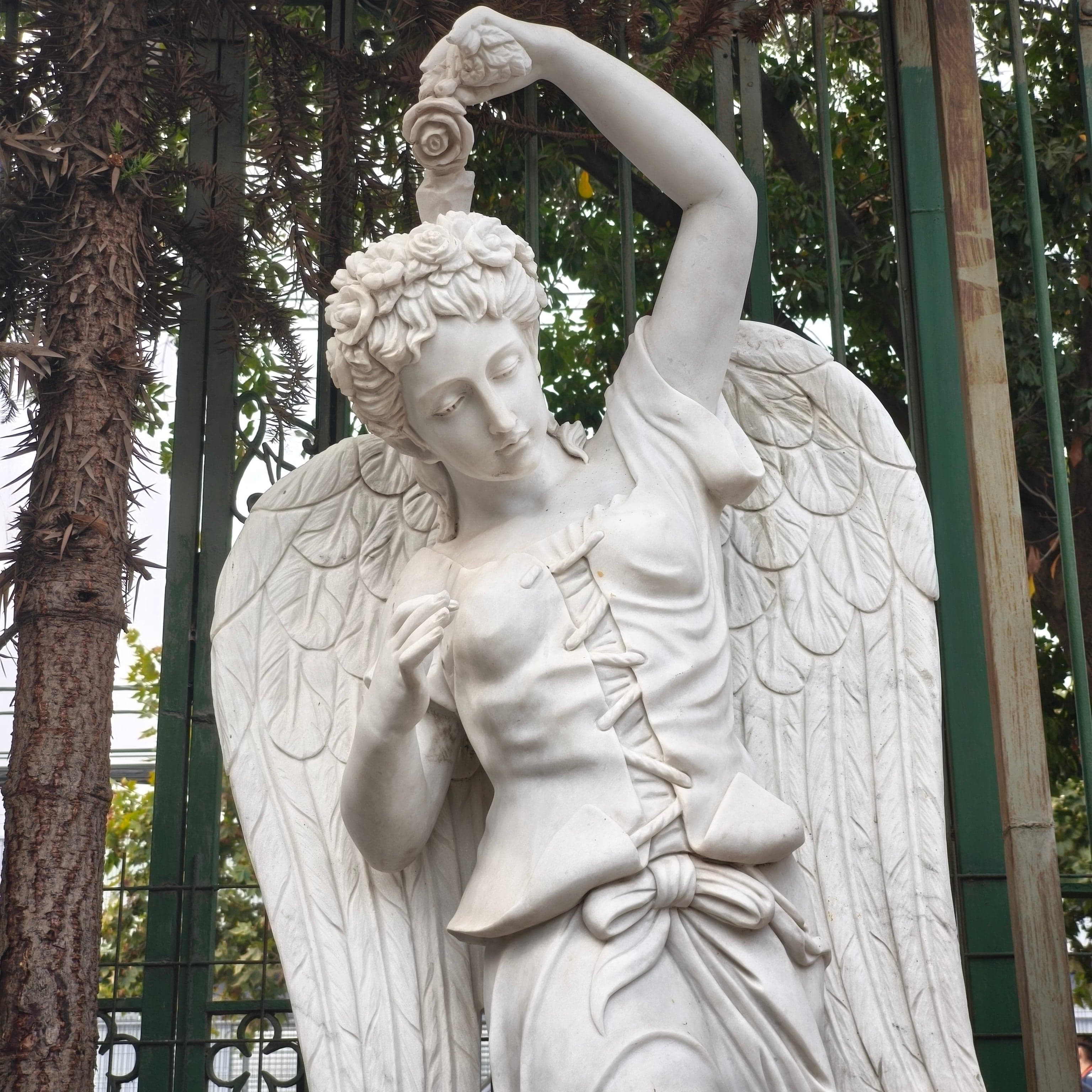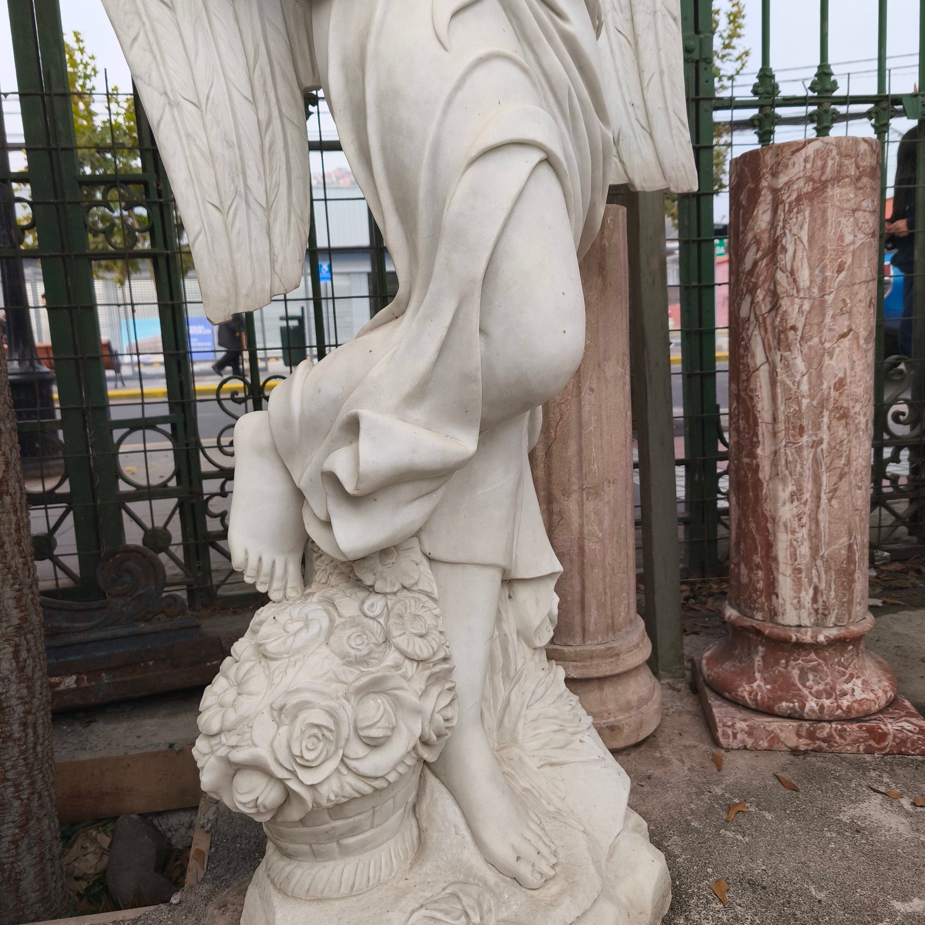Escultura Ángel de las cuatro estaciones - primavera.De piedra mármol tallada.