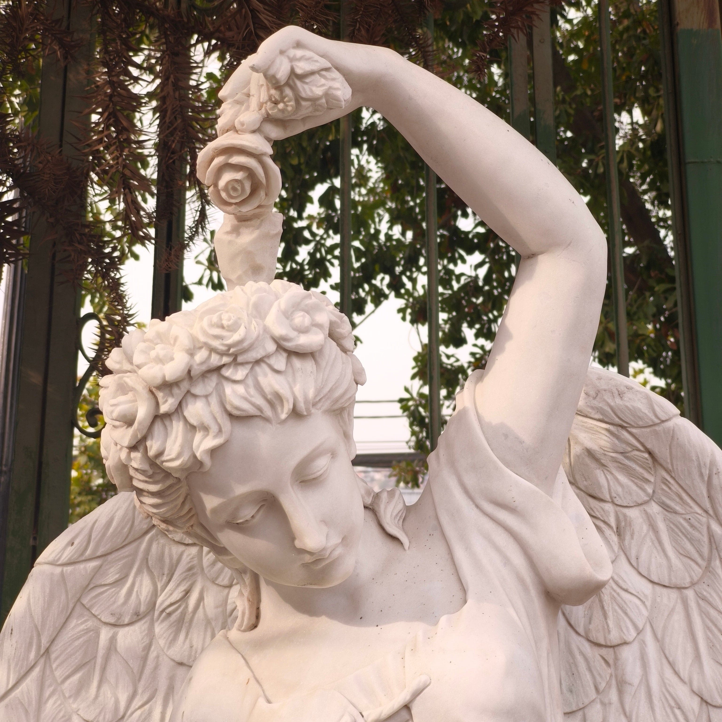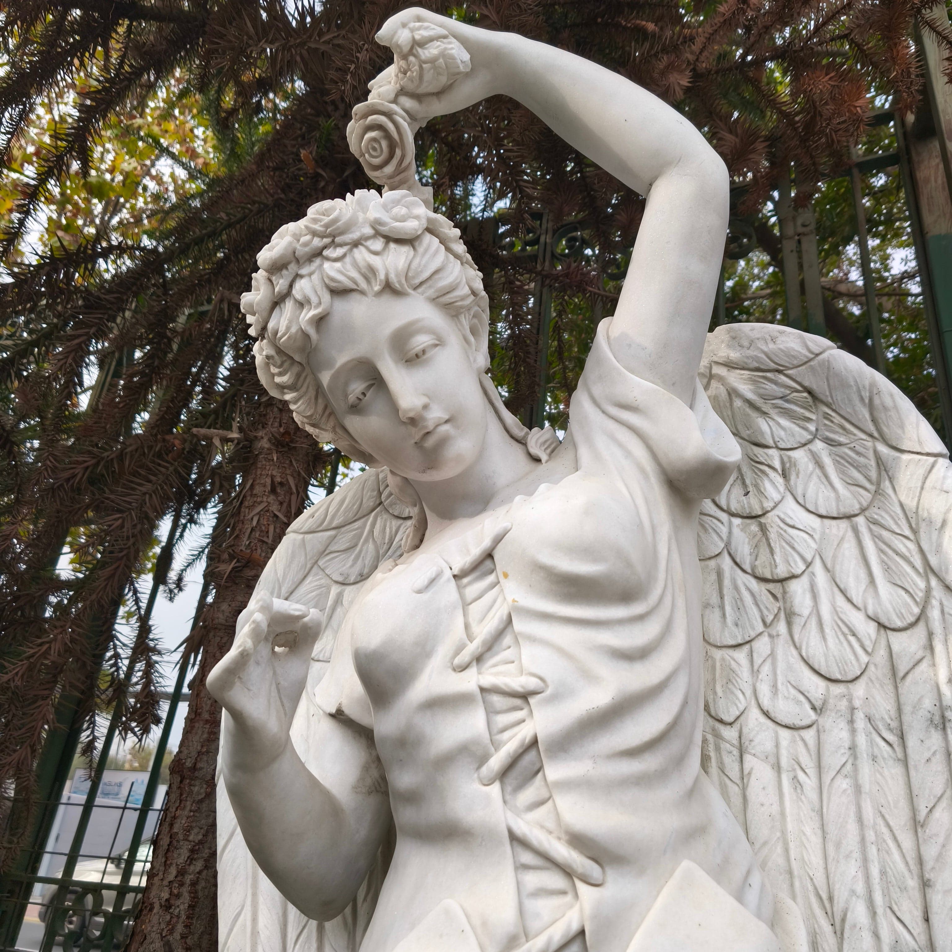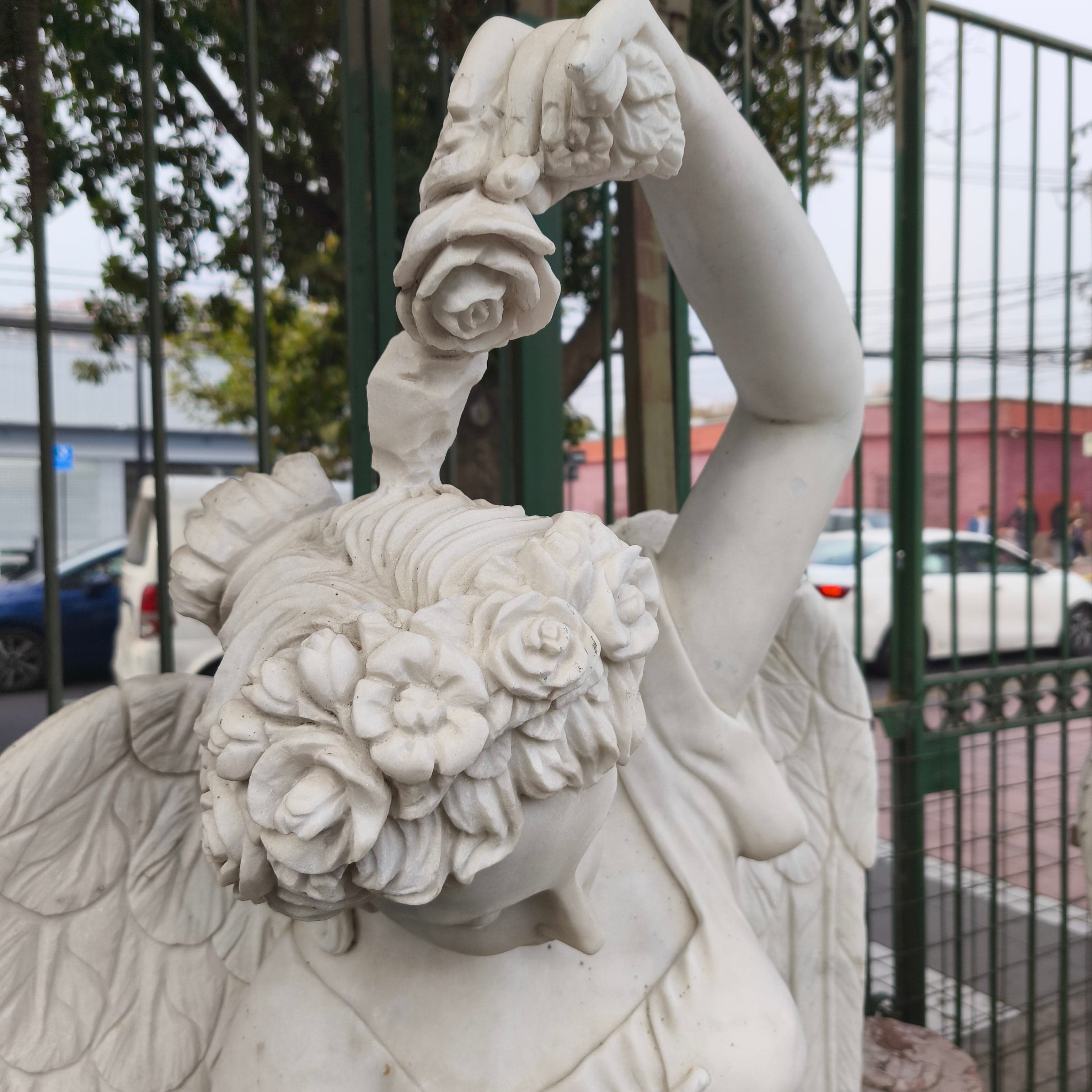 Escultura Ángel de las cuatro estaciones - primavera.De piedra mármol tallada.