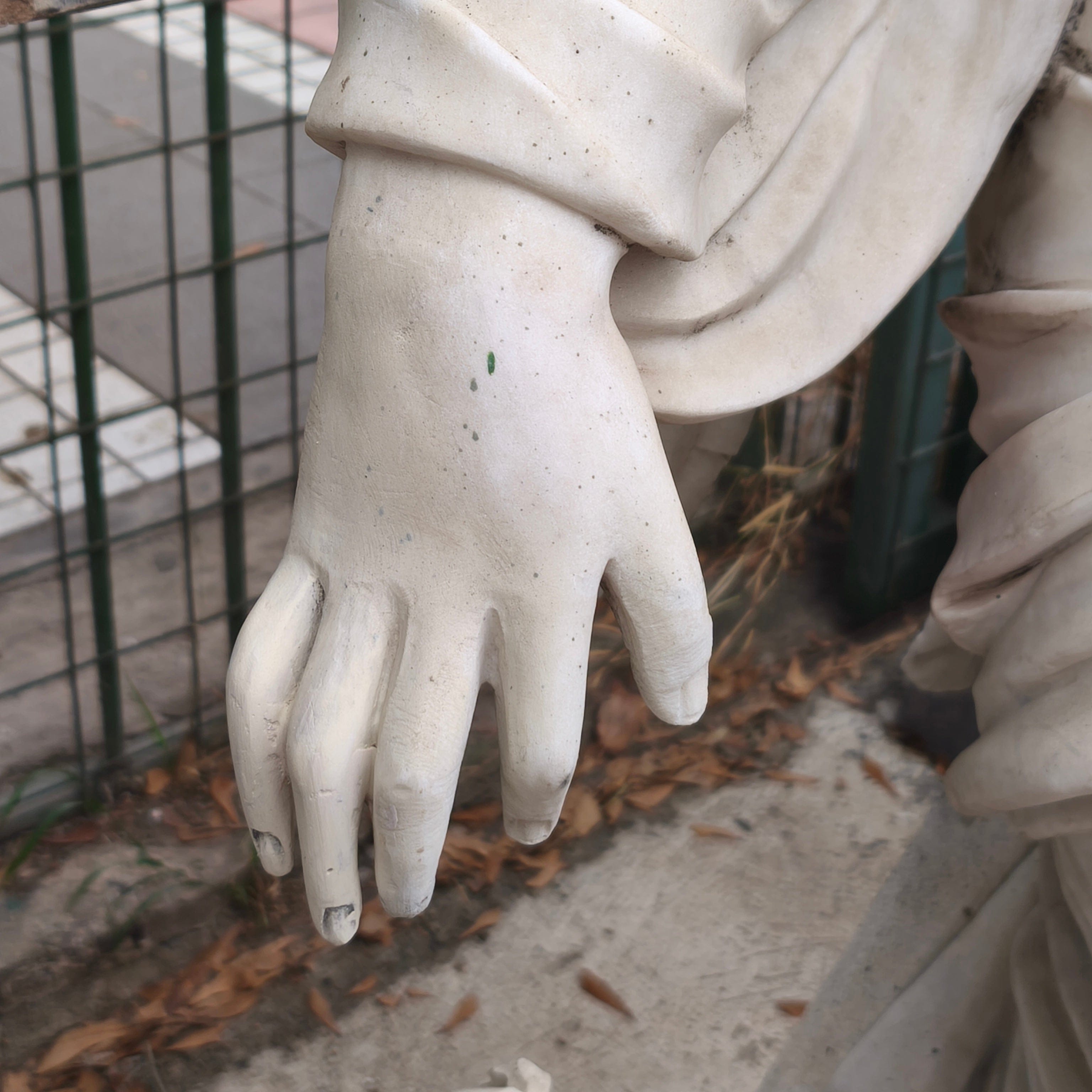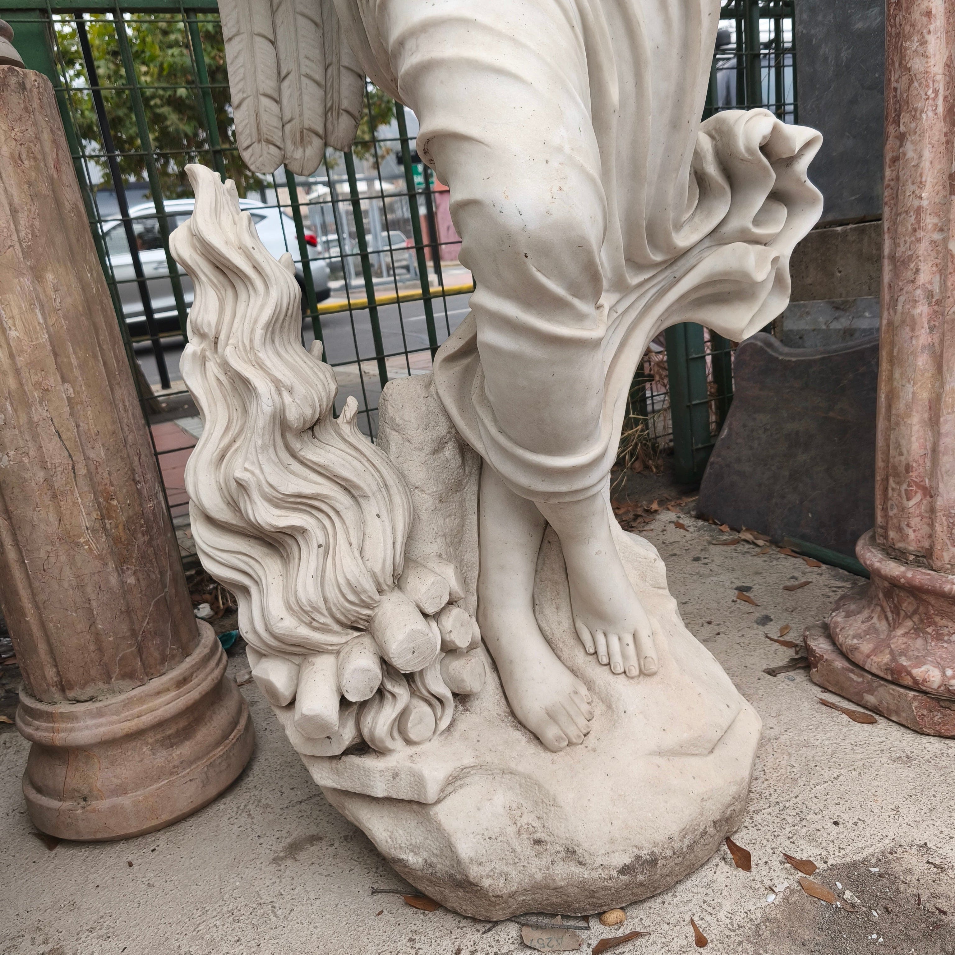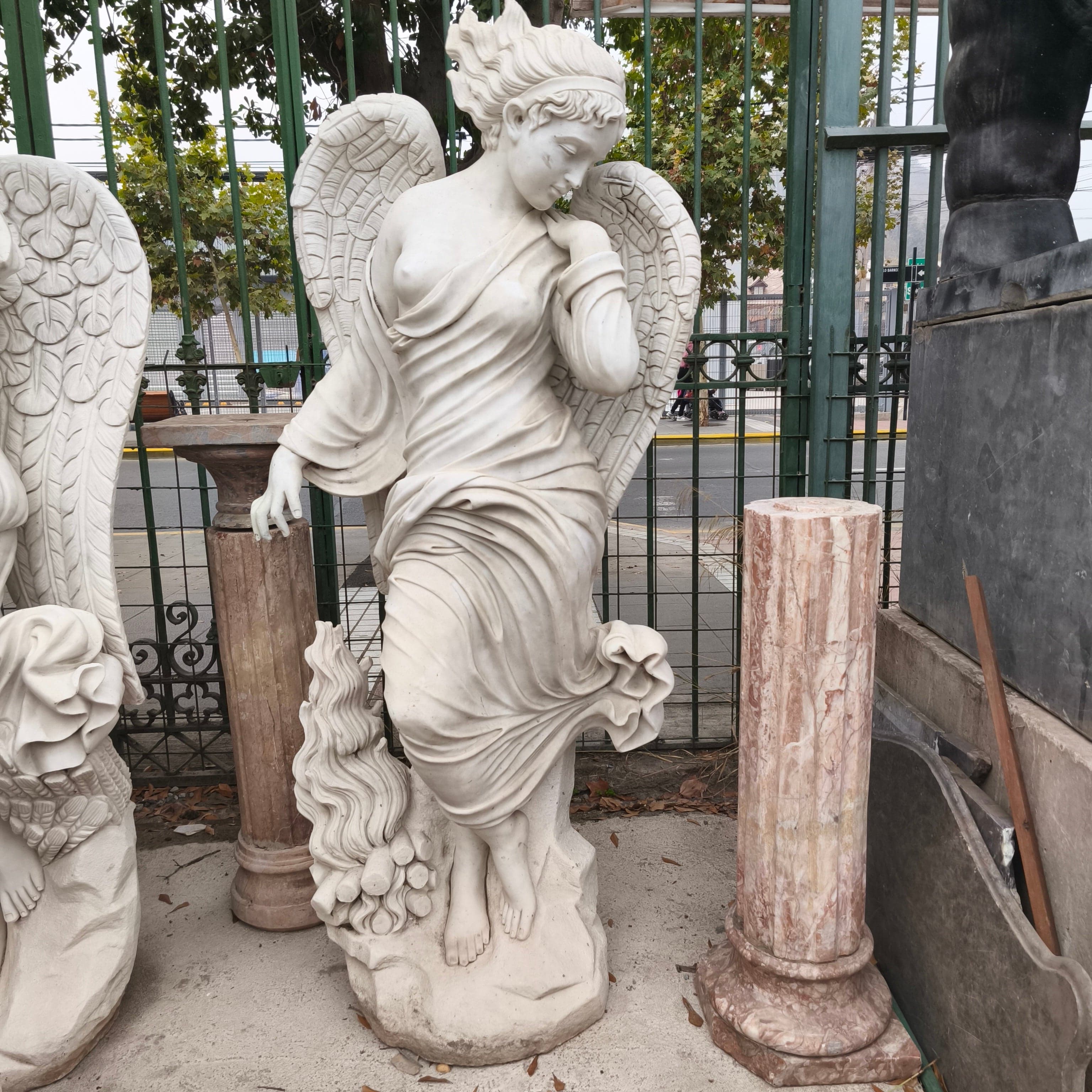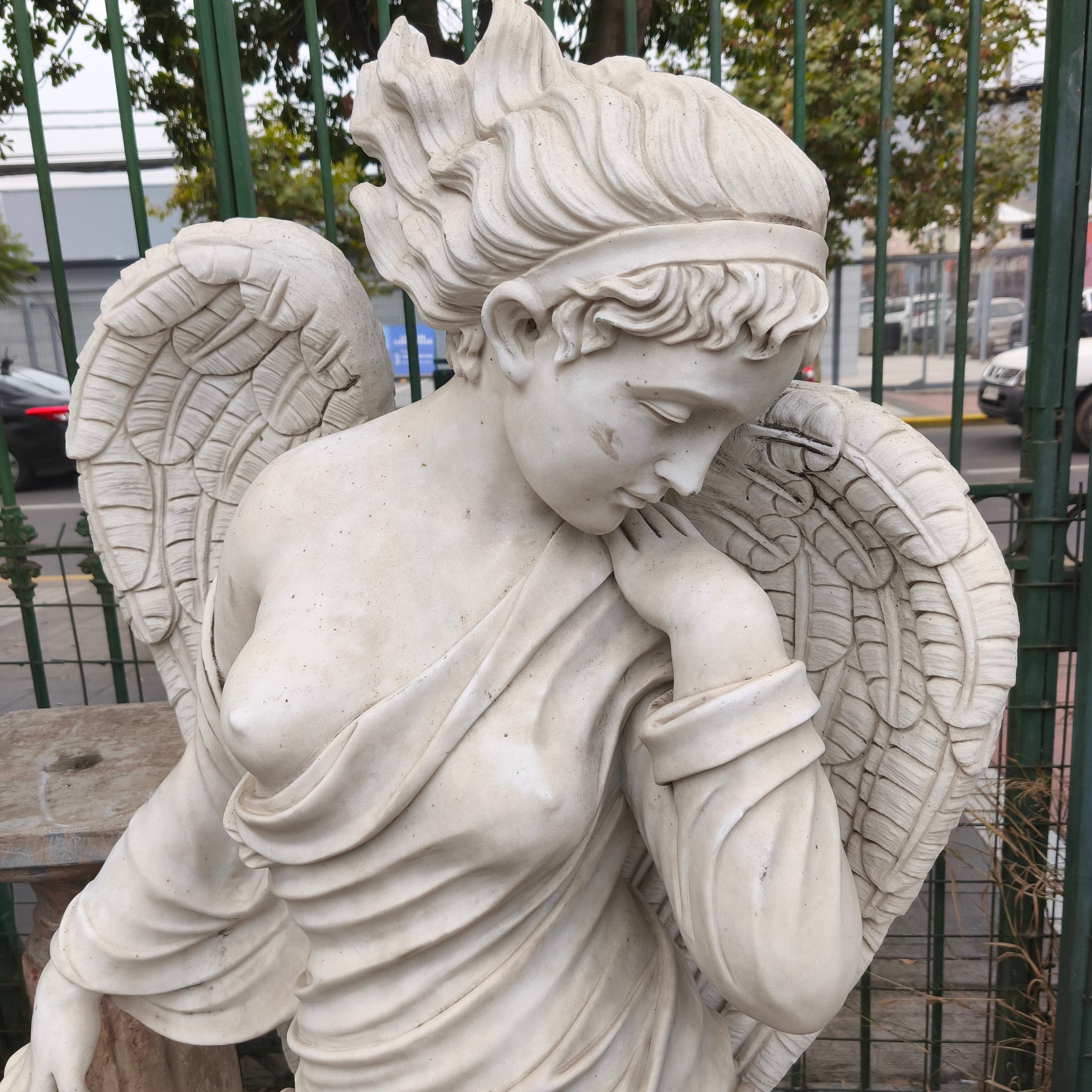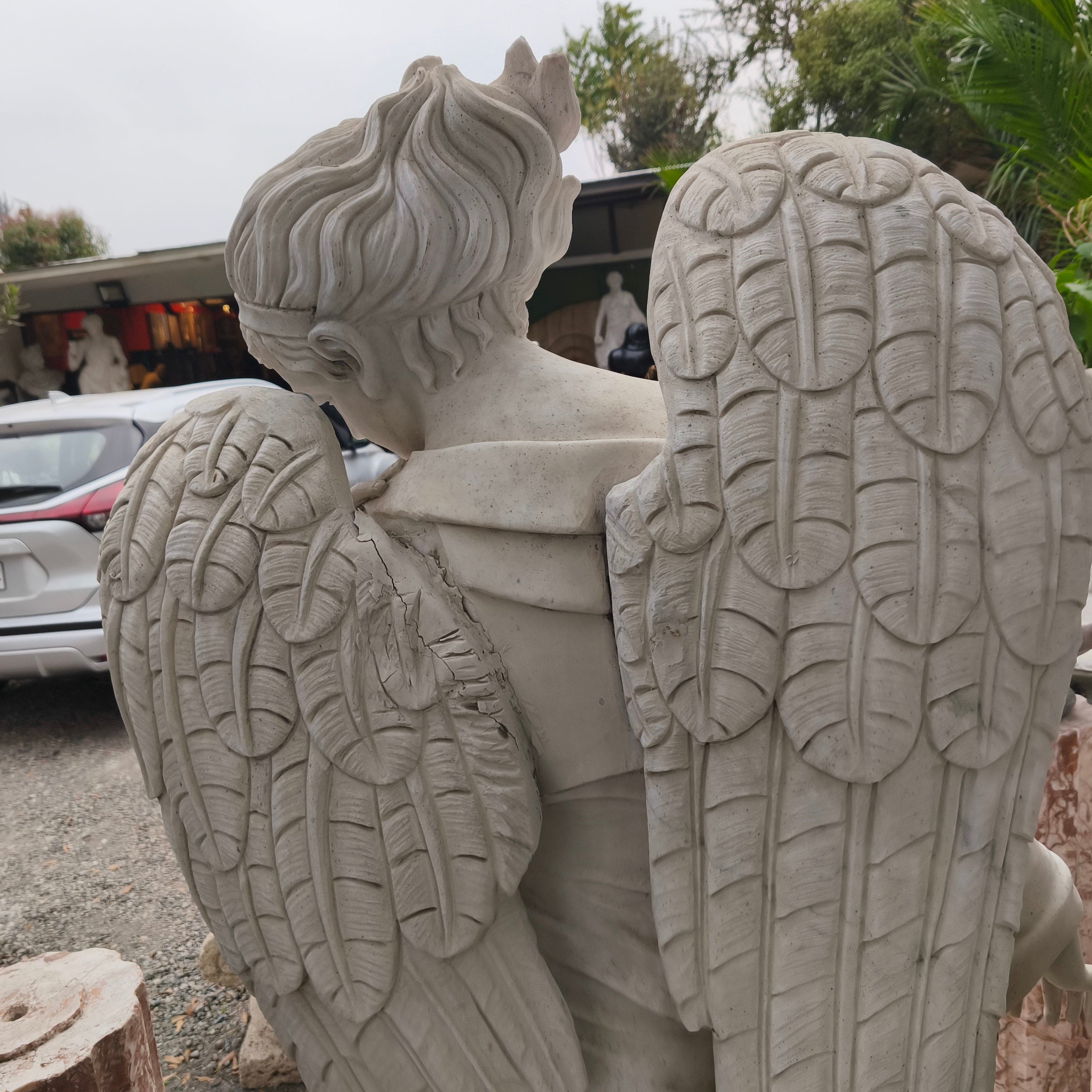 Bella escultura de Ángel de las cuatro estaciones- invierno en piedra mármol tallada. Manufactura contemporáneo oriental.