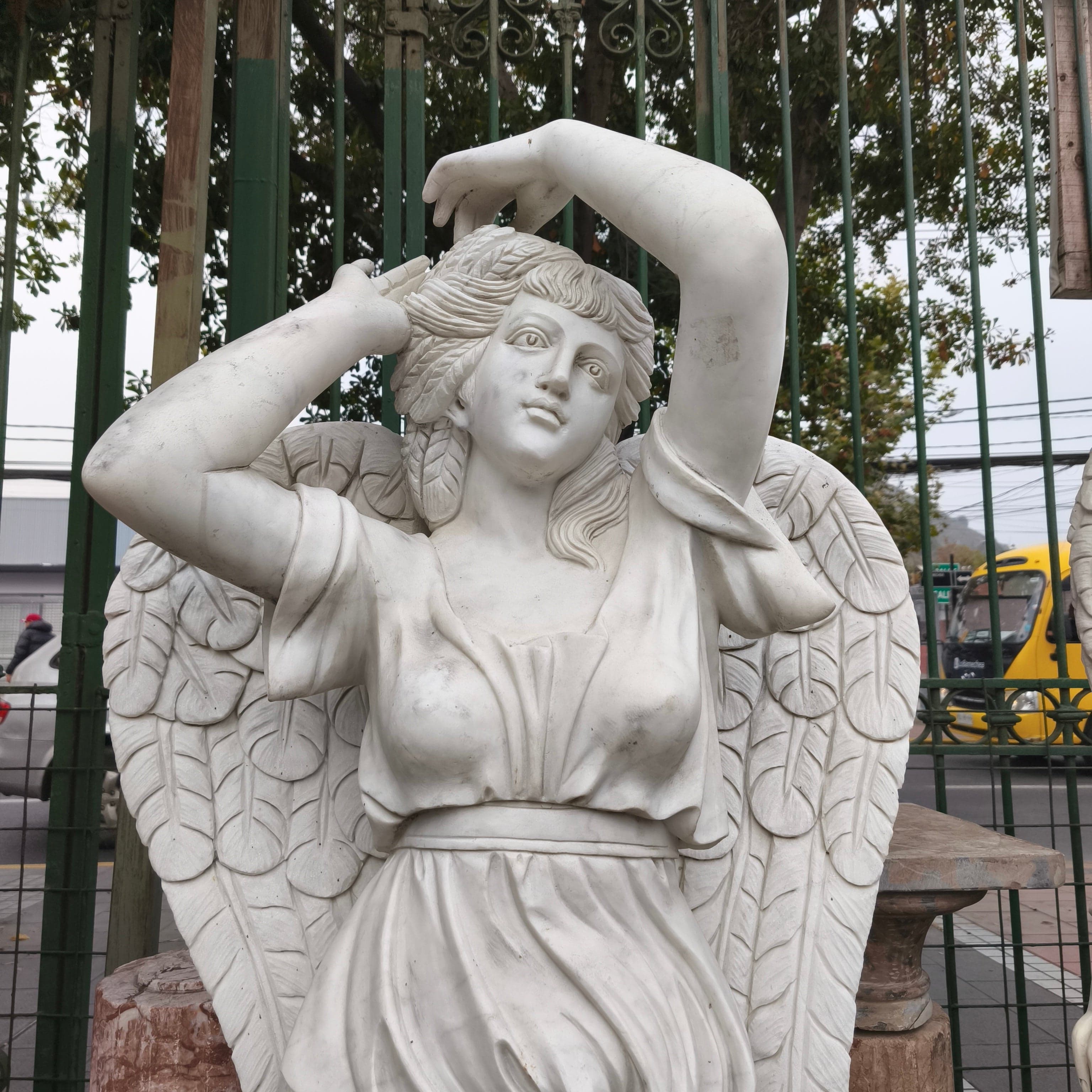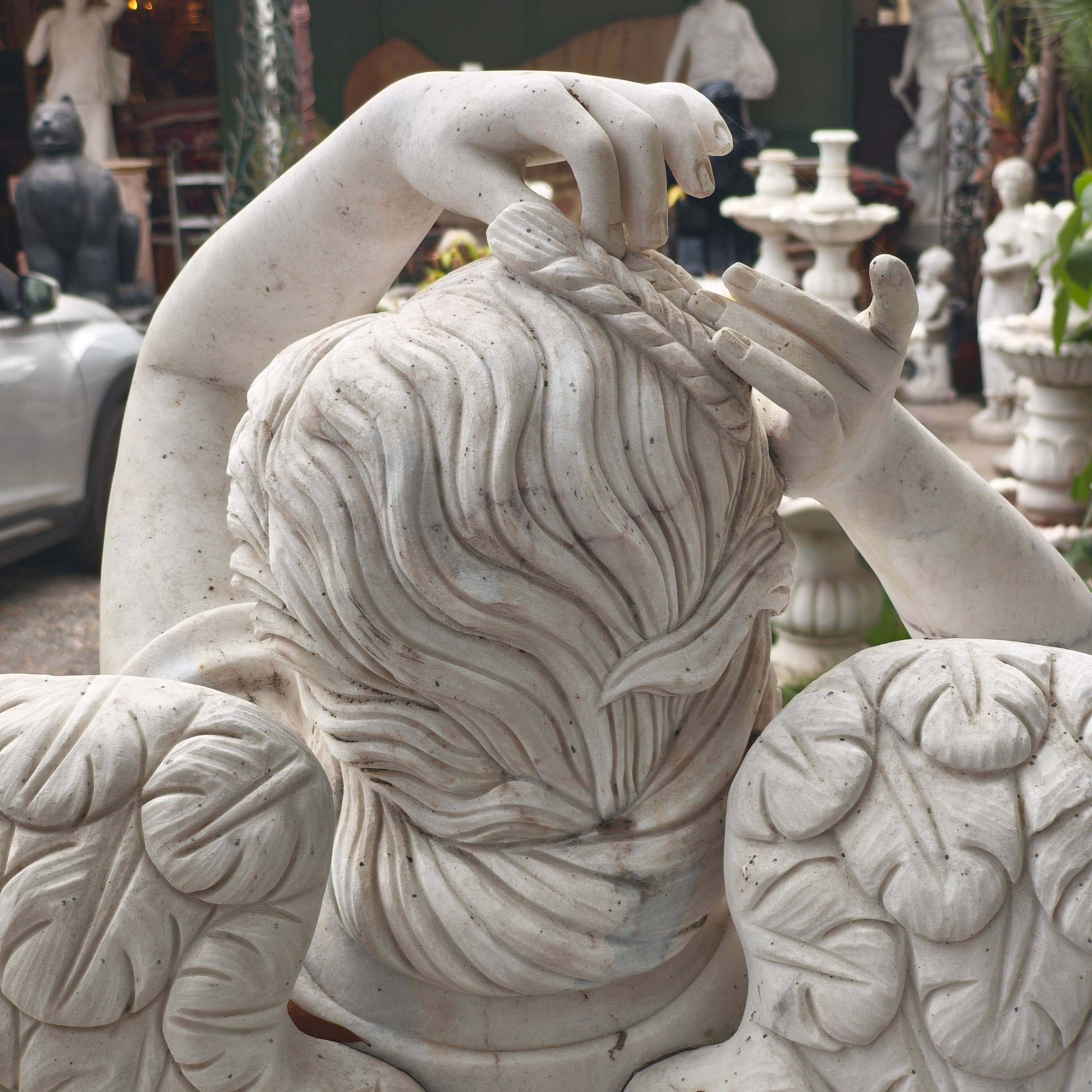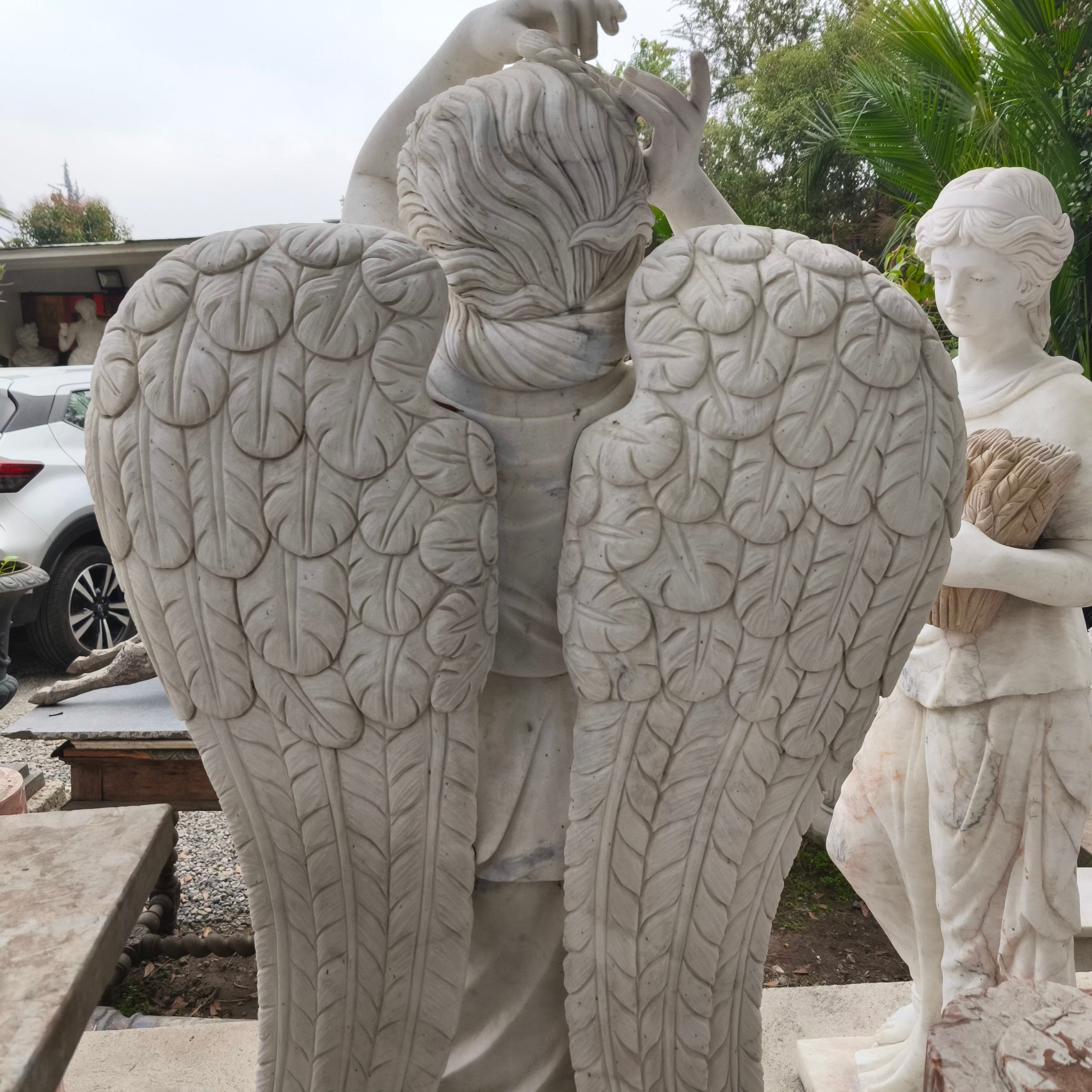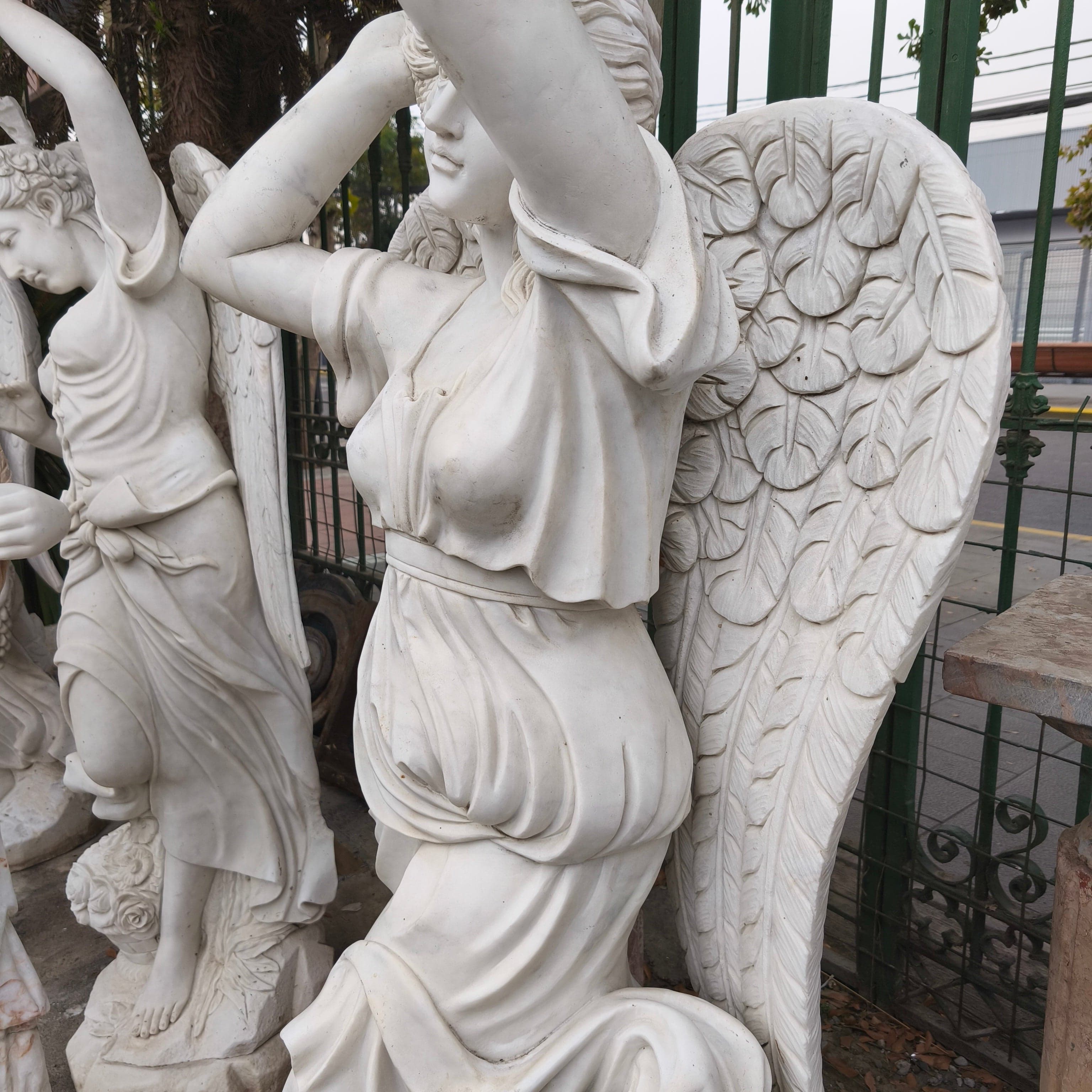 Bellísima escultura de Angel de las cuatro estaciones - otoño en piedra mármol tallada. Manufactura contemporáneo oriental.