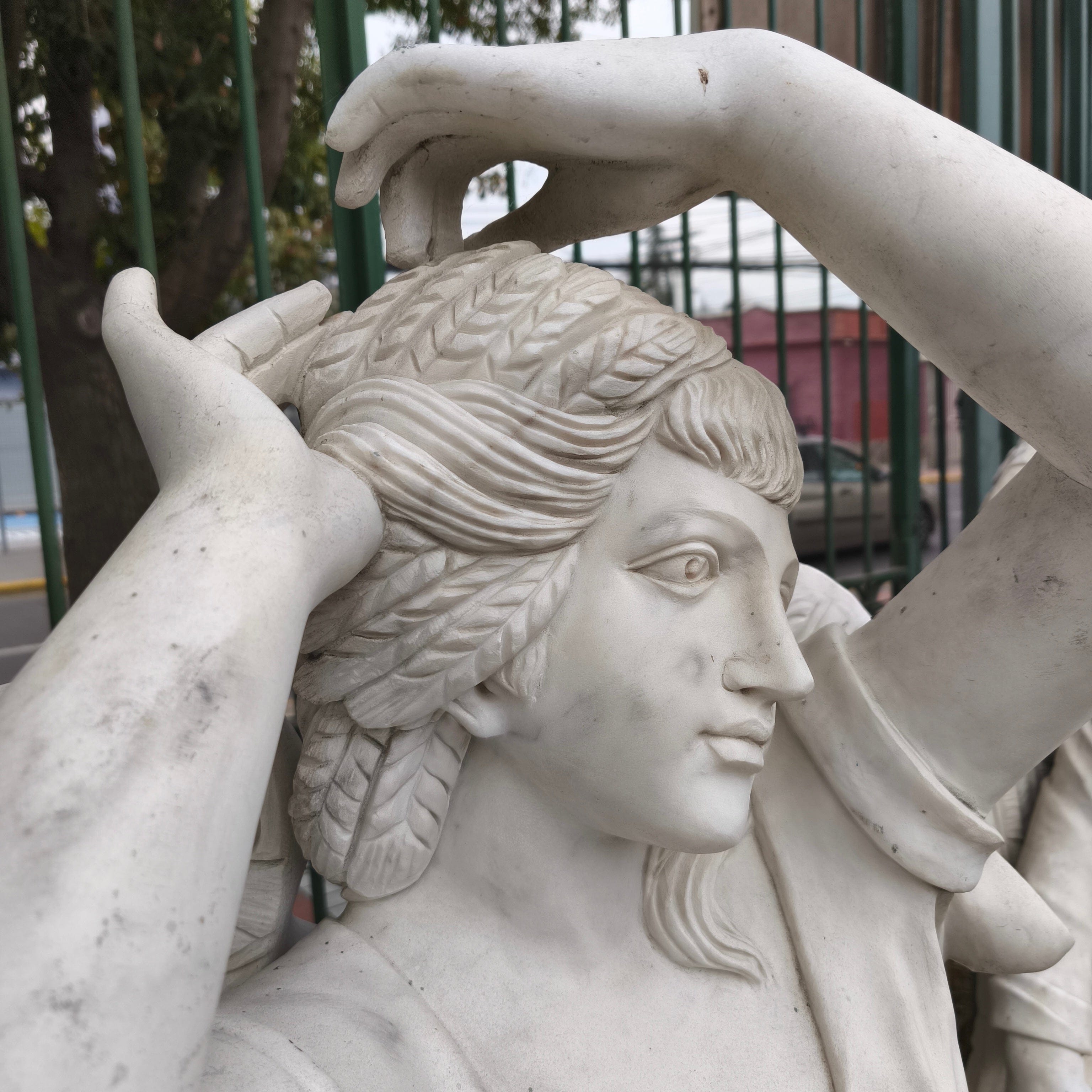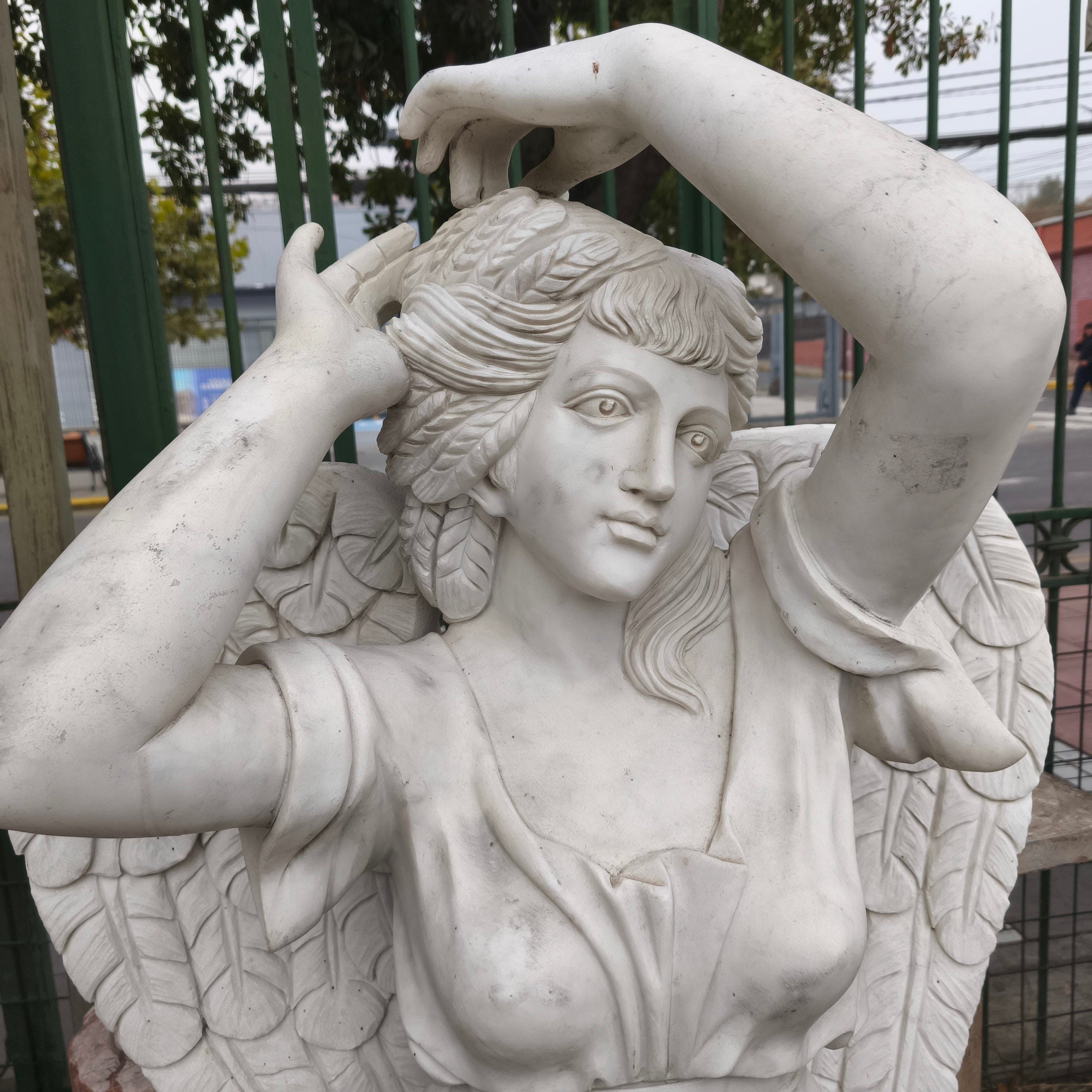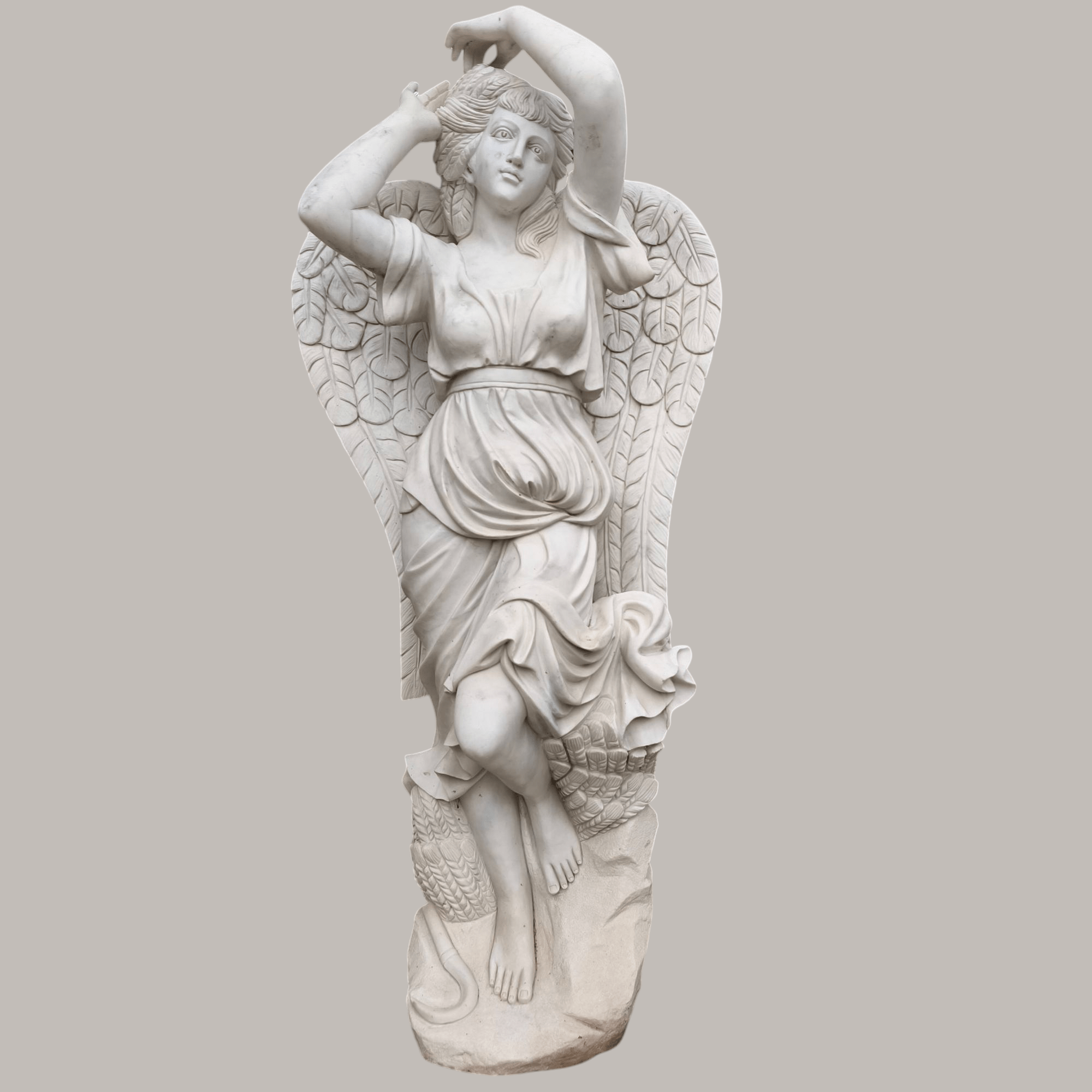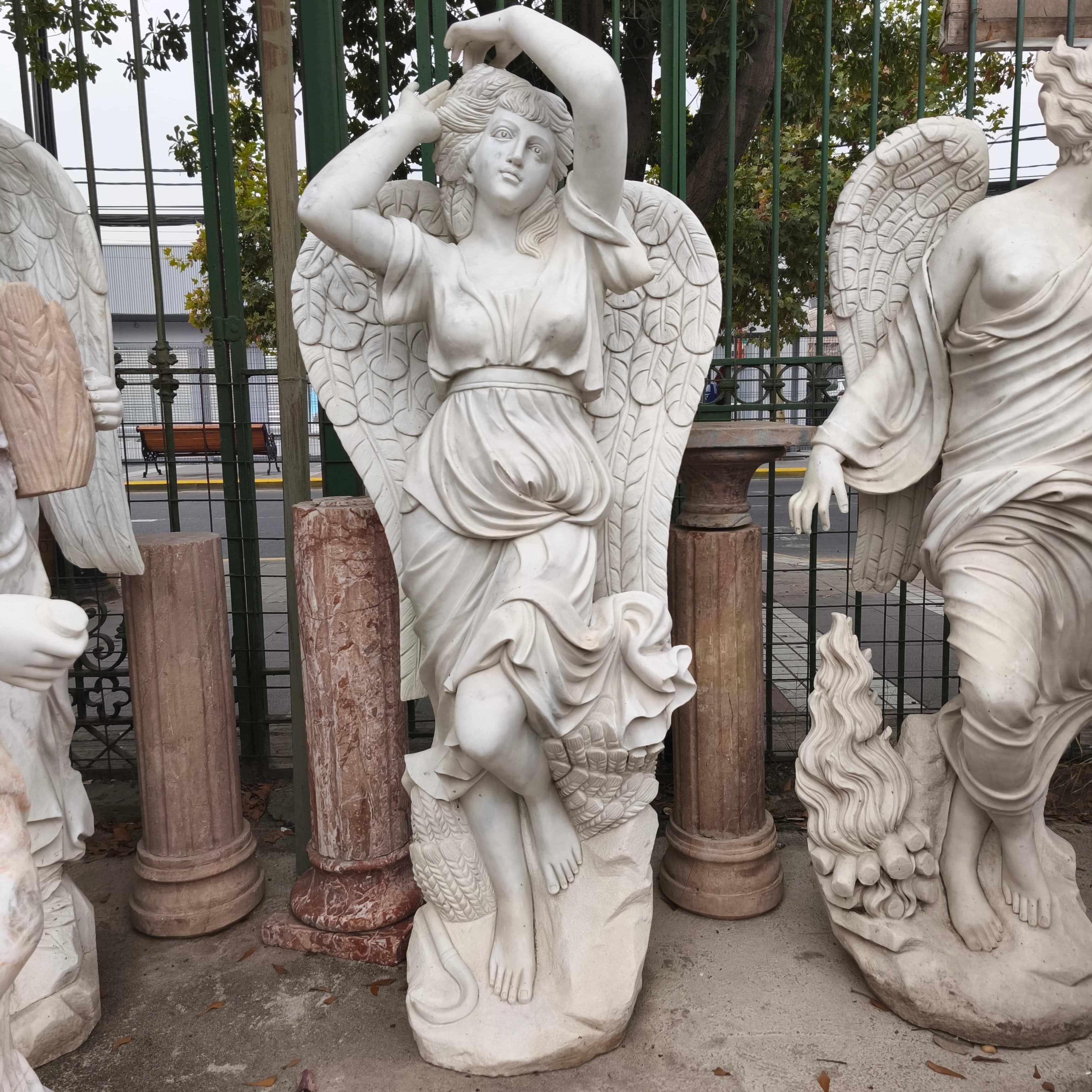 Bellísima escultura de Angel de las cuatro estaciones - otoño en piedra mármol tallada. Manufactura contemporáneo oriental.