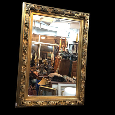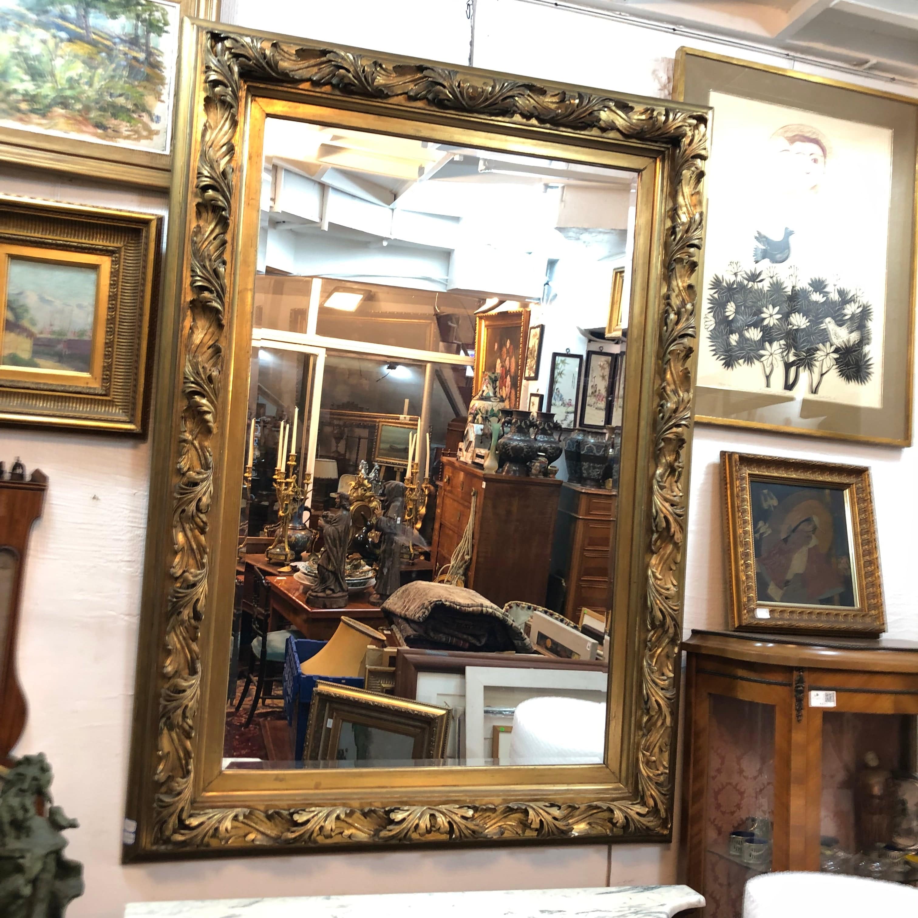 Espejo de gran formato en marco de madera pintada en dorado con hermoso tallado.