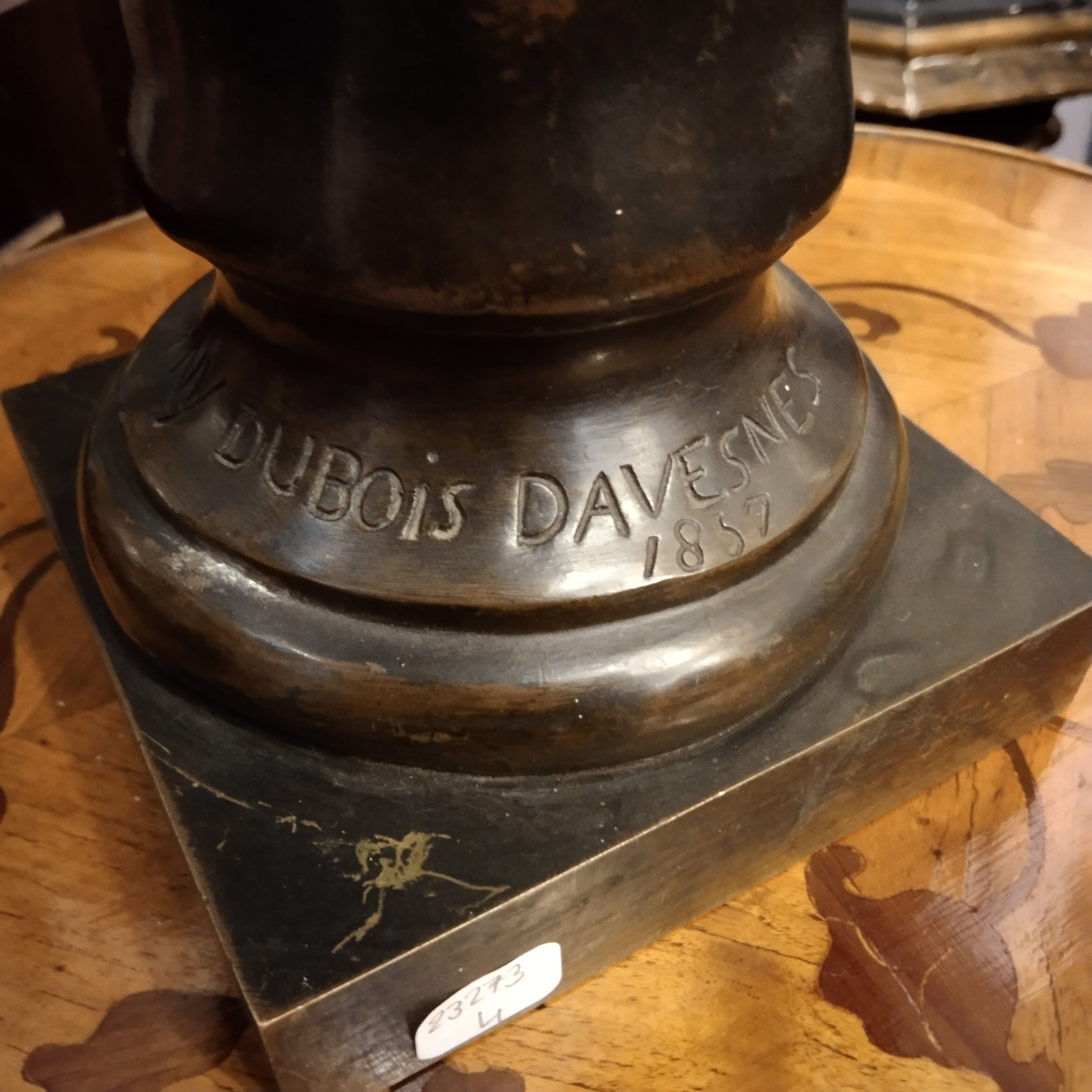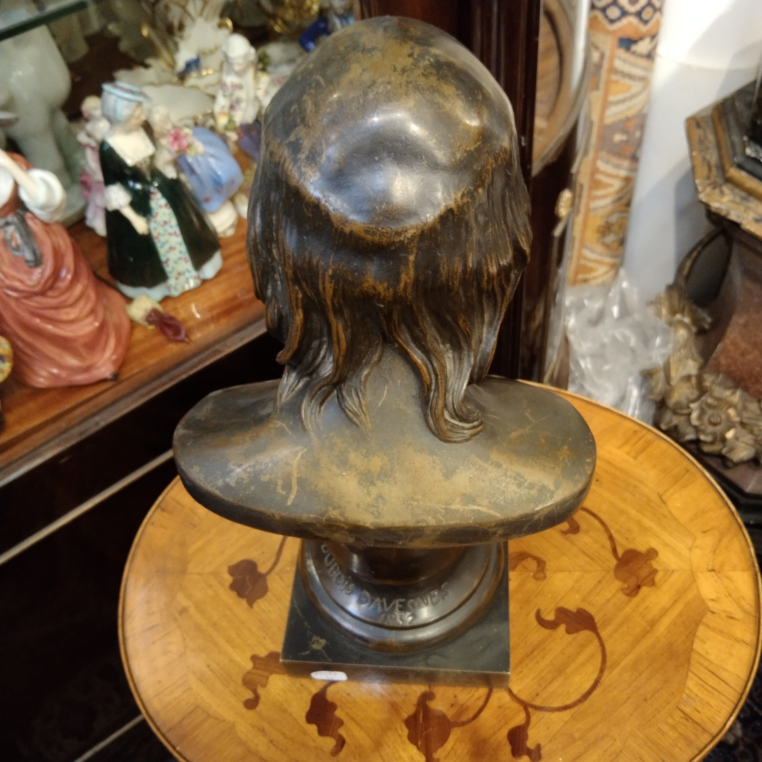 Elegante busto de bronce, firmado por Fanny Dubois Davesnes, del poeta francés Pierre-Jean de Berànger. El busto está fechado en 1857 junto a la firma.