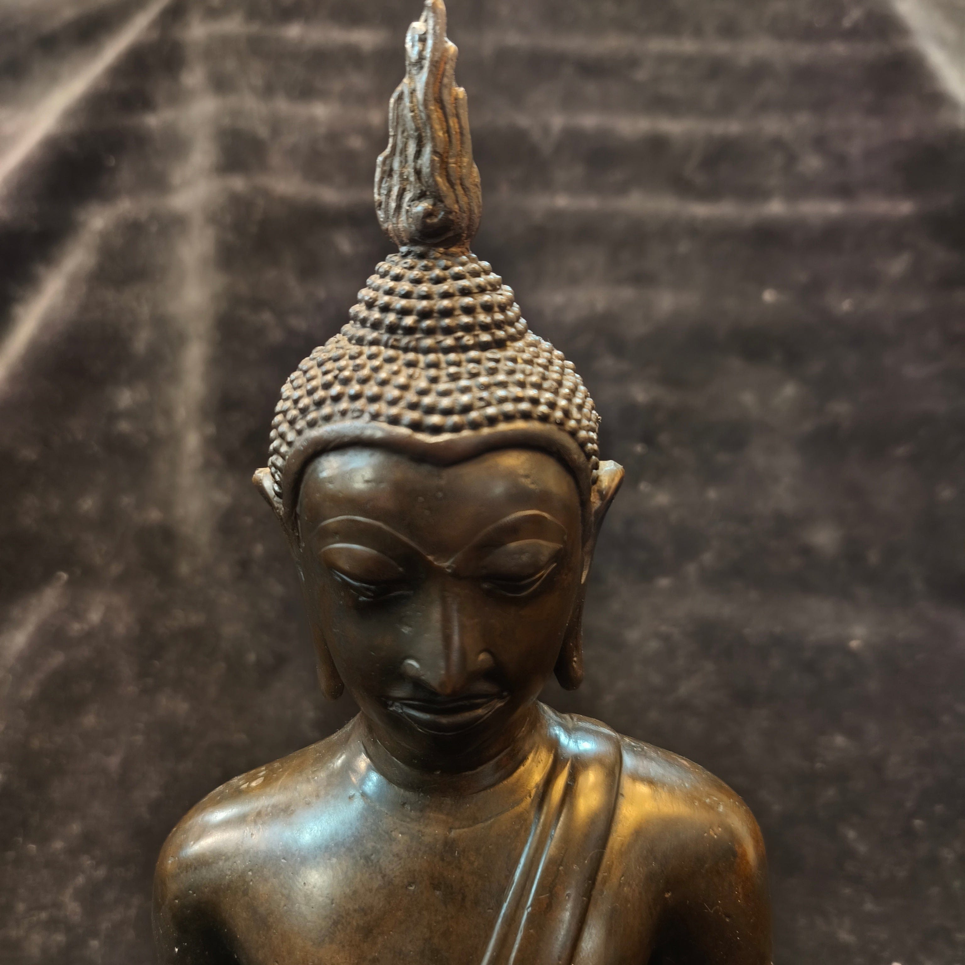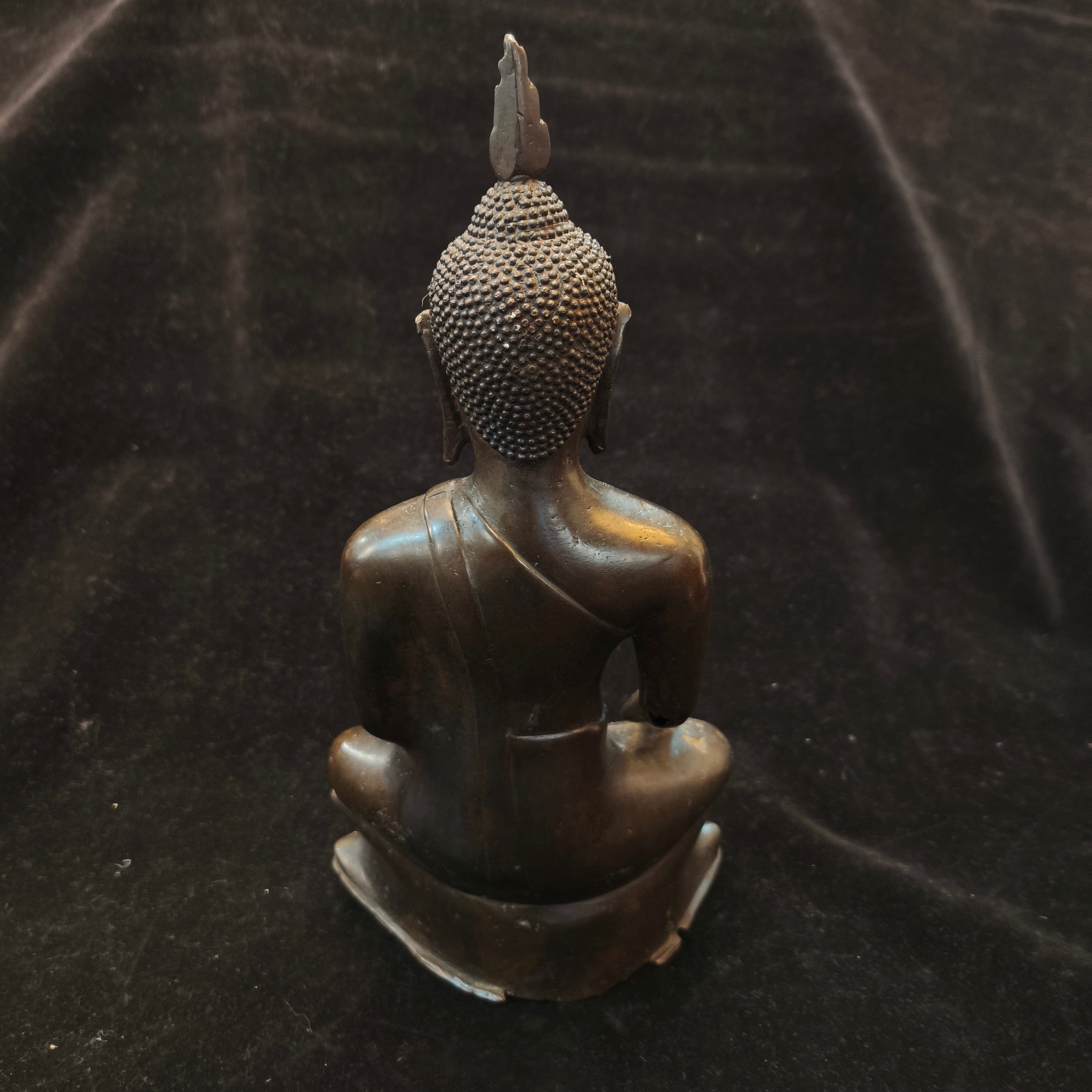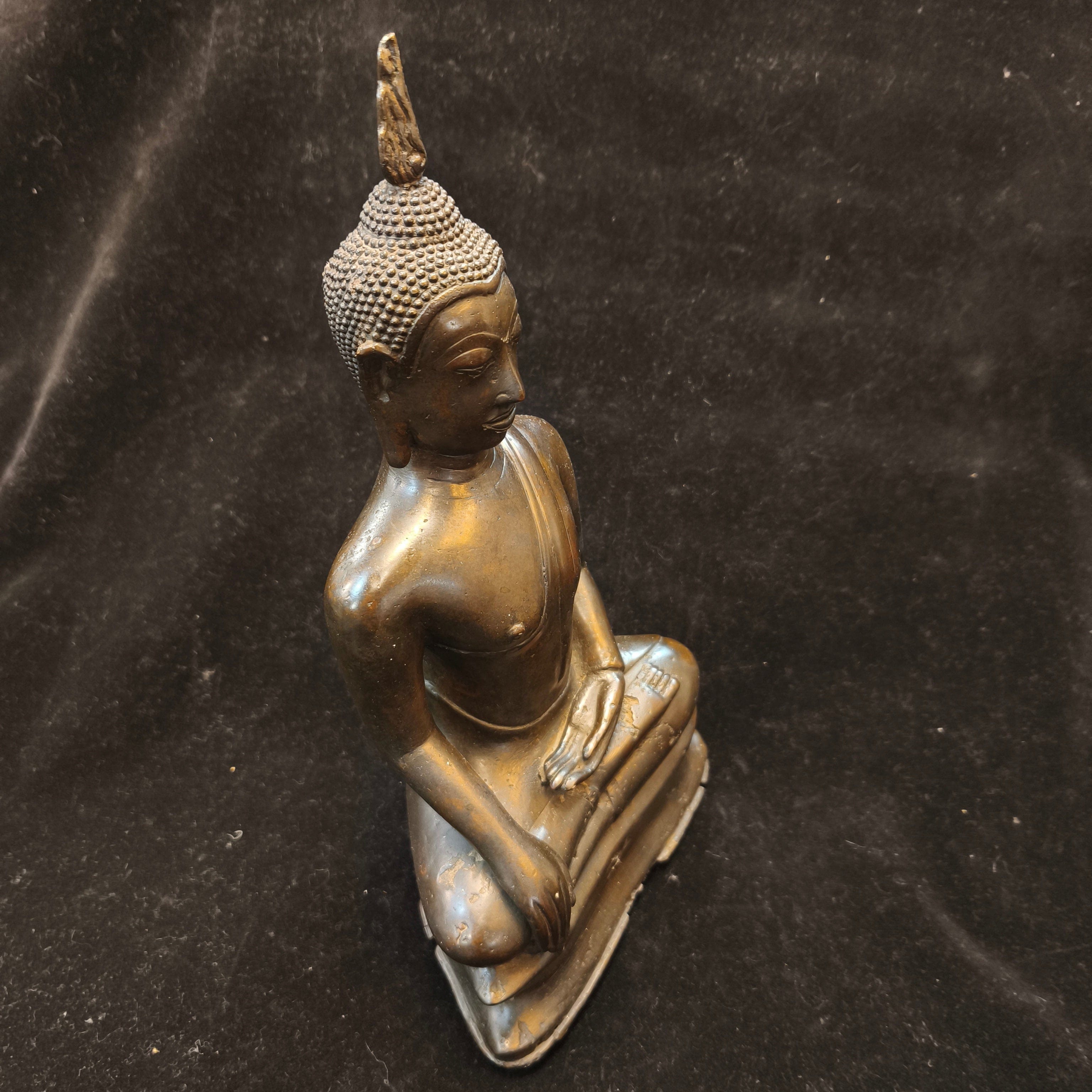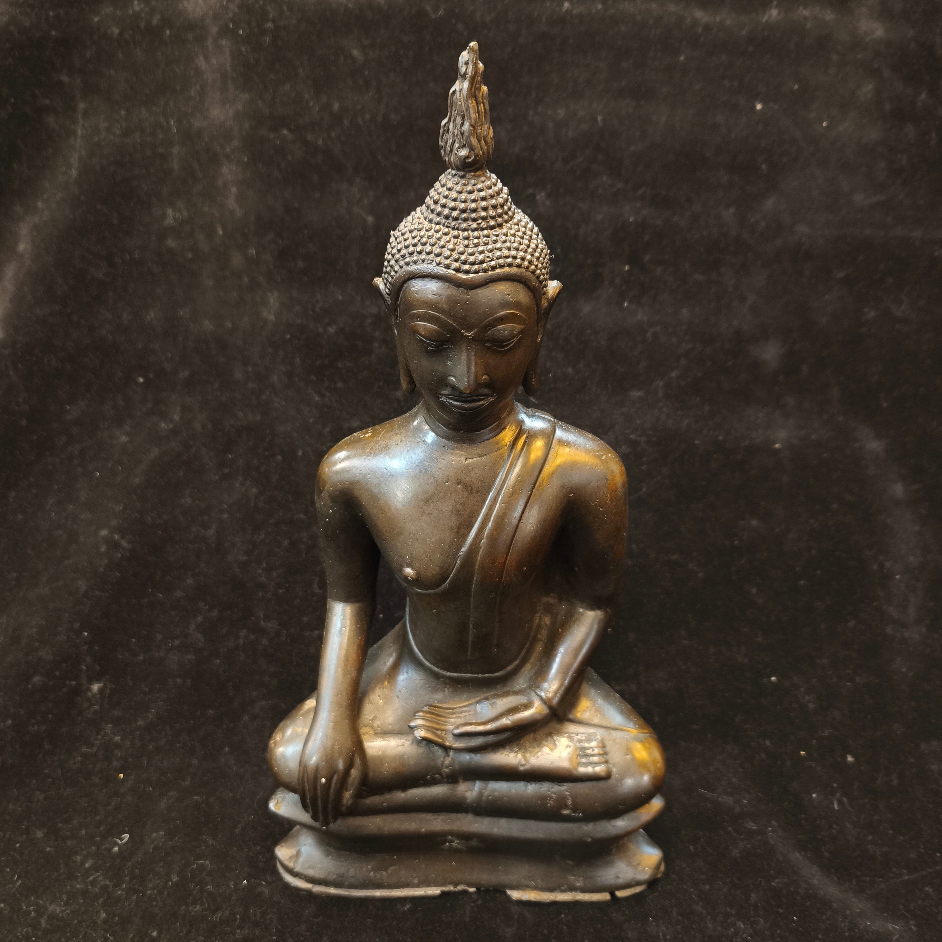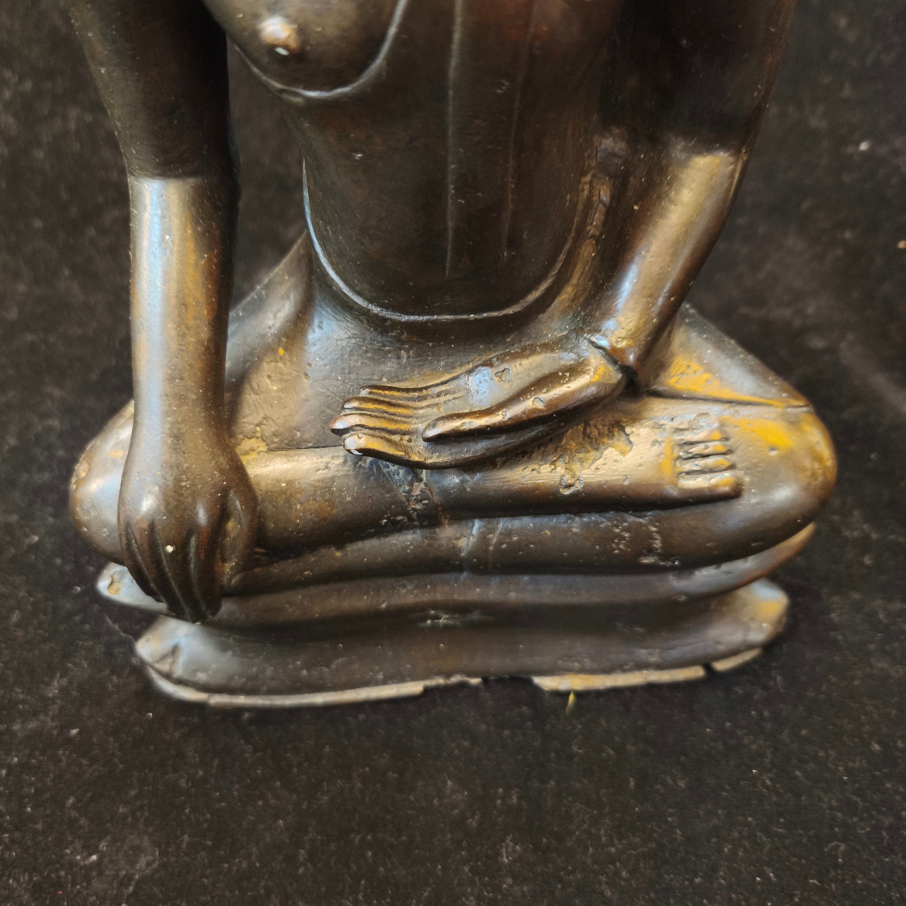 Bella figura tailandesa en bronce, representando a Buda en posición de loto.