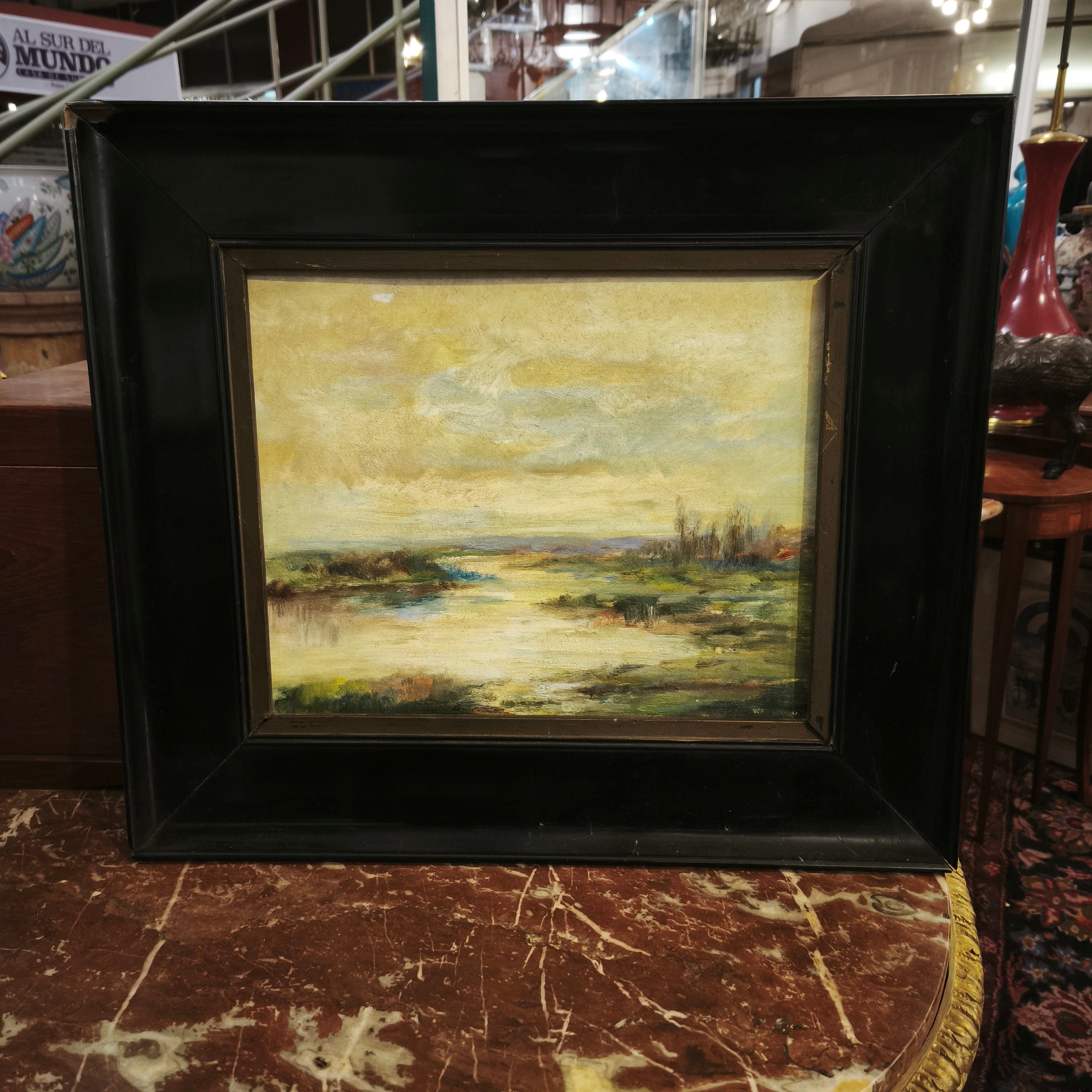 Firma ilegible - Óleo sobre madera entelada 'paisaje de humedal'