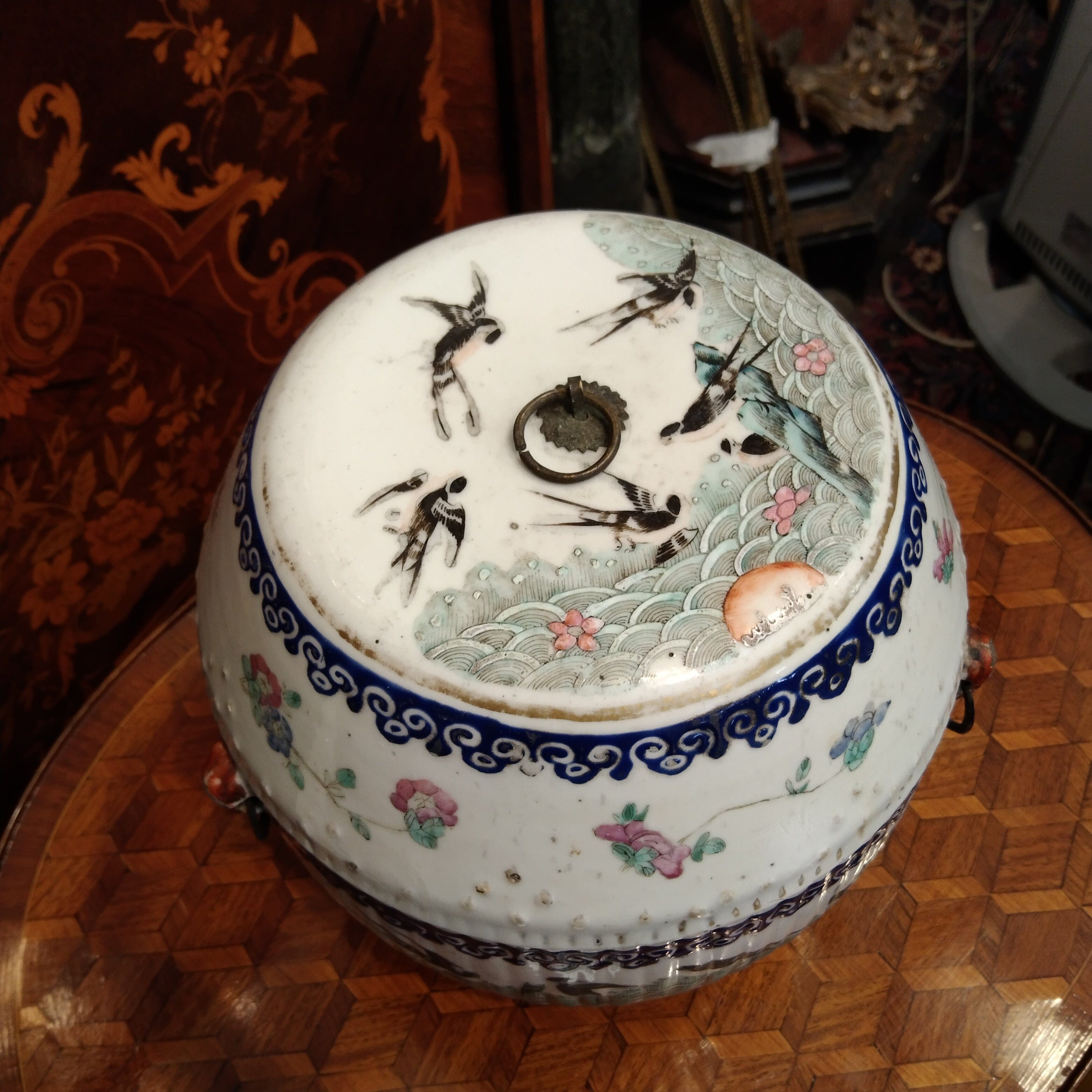 Tambor de porcelana con tapa diseños florales y aves Compagnie des Indes