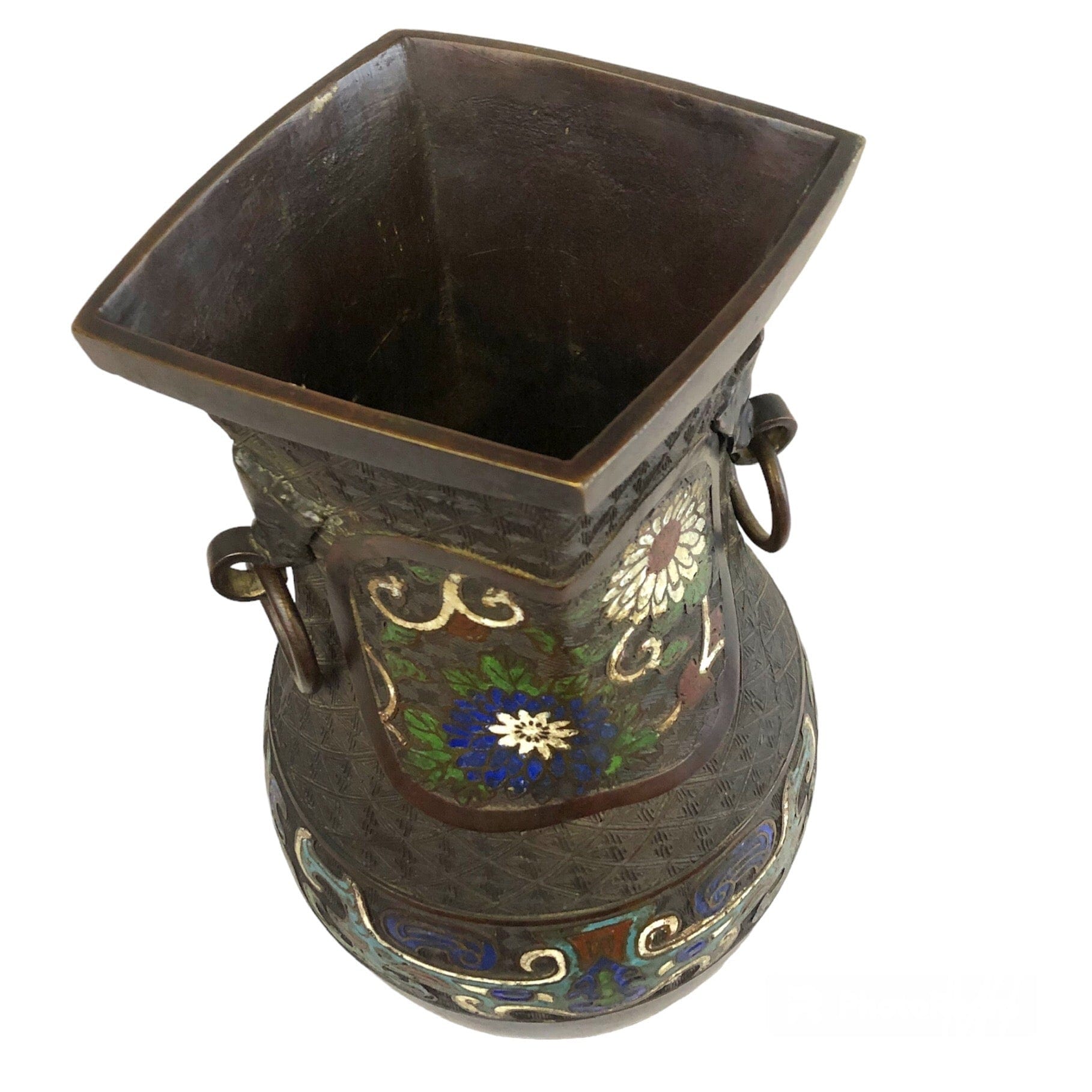 Jarrón de boca cuadrada, con alegres dibujos de flores. Finos ensambles en bajorrelieves,