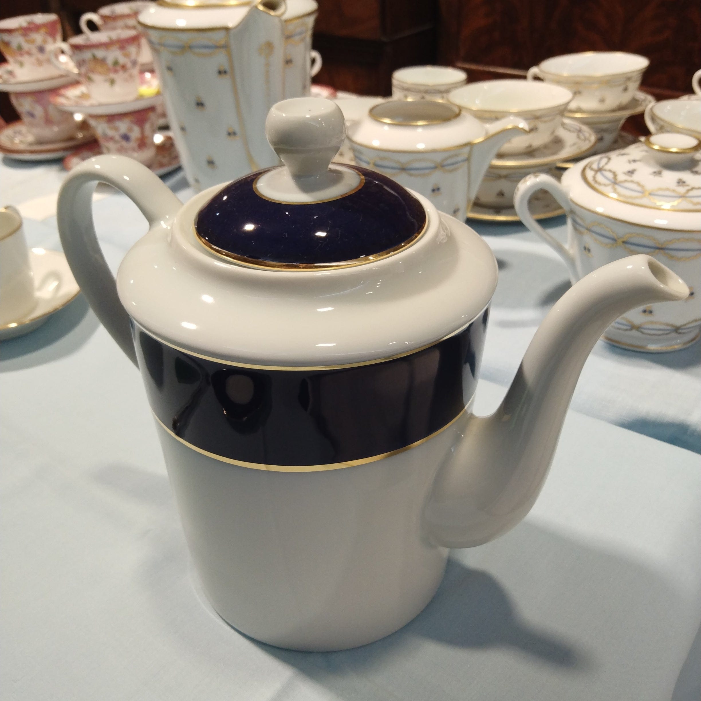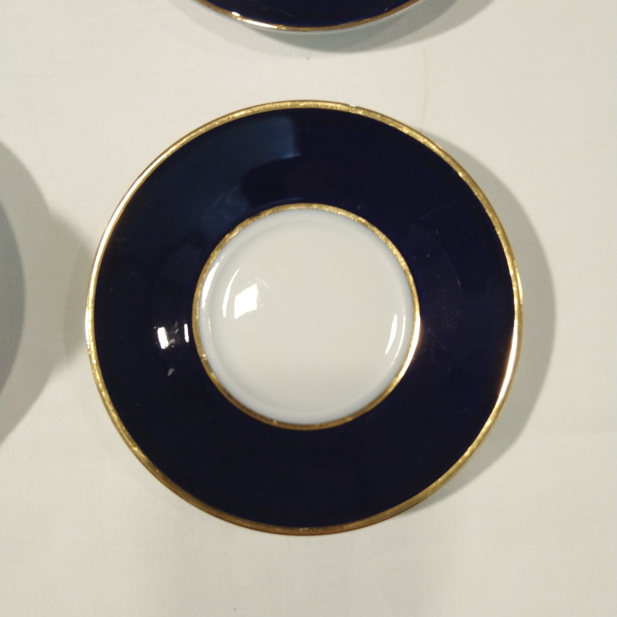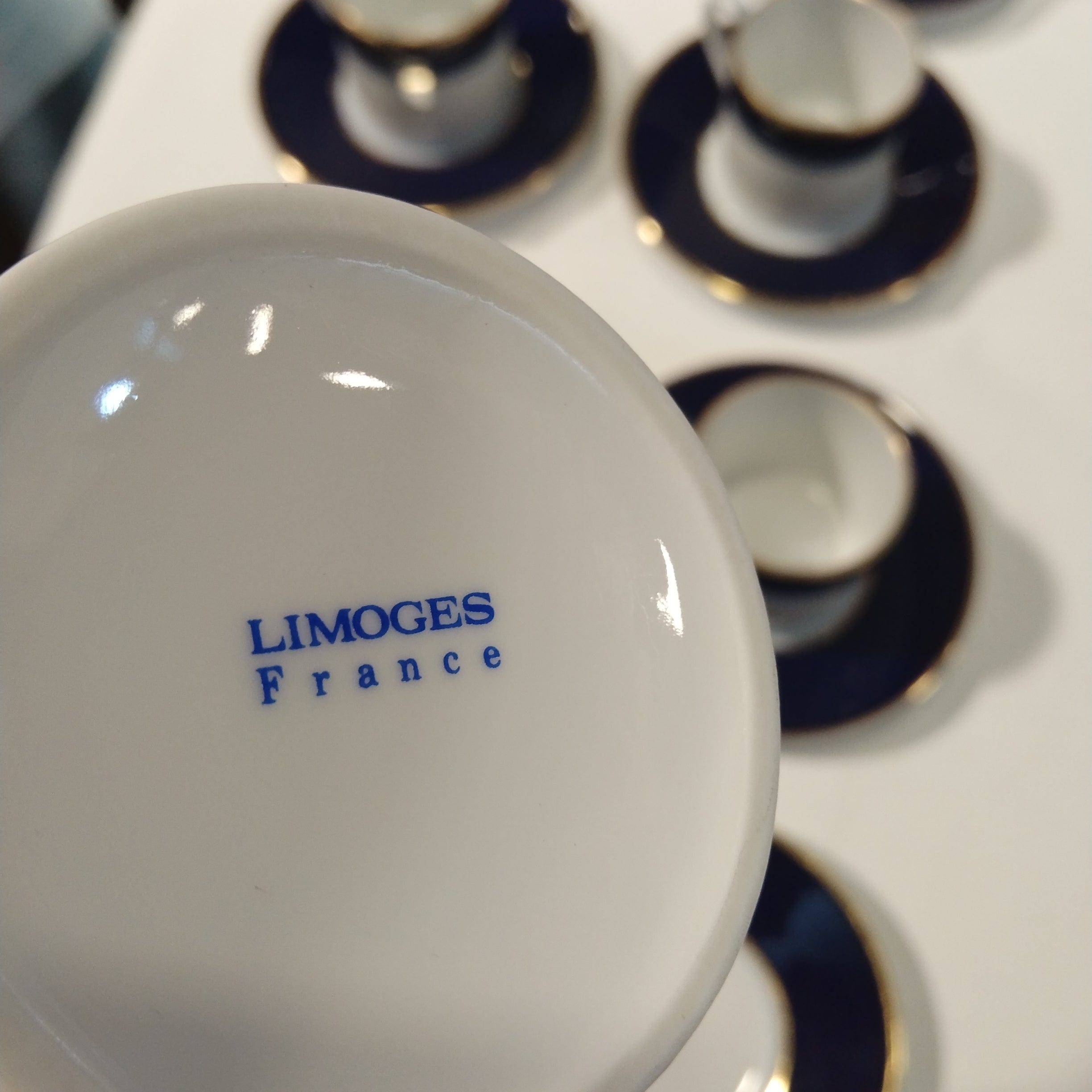 Juego de tacitas de café con tetera porcelana Limoges 'azul y detalle dorado'