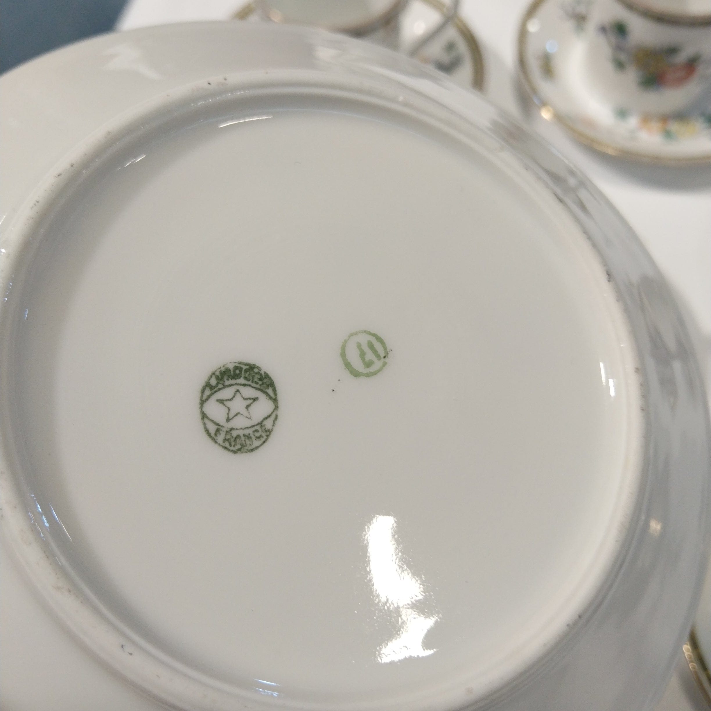 Juego de tazas de café porcelana francesa Limoges 'ramas y flores'
