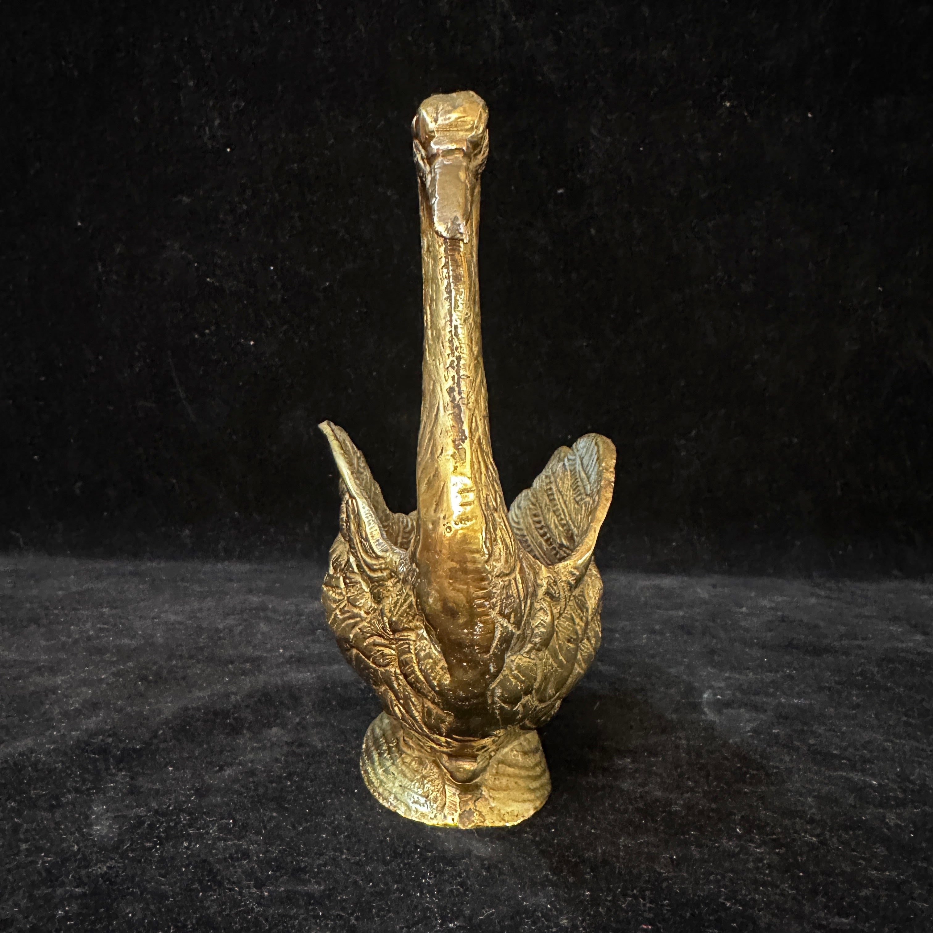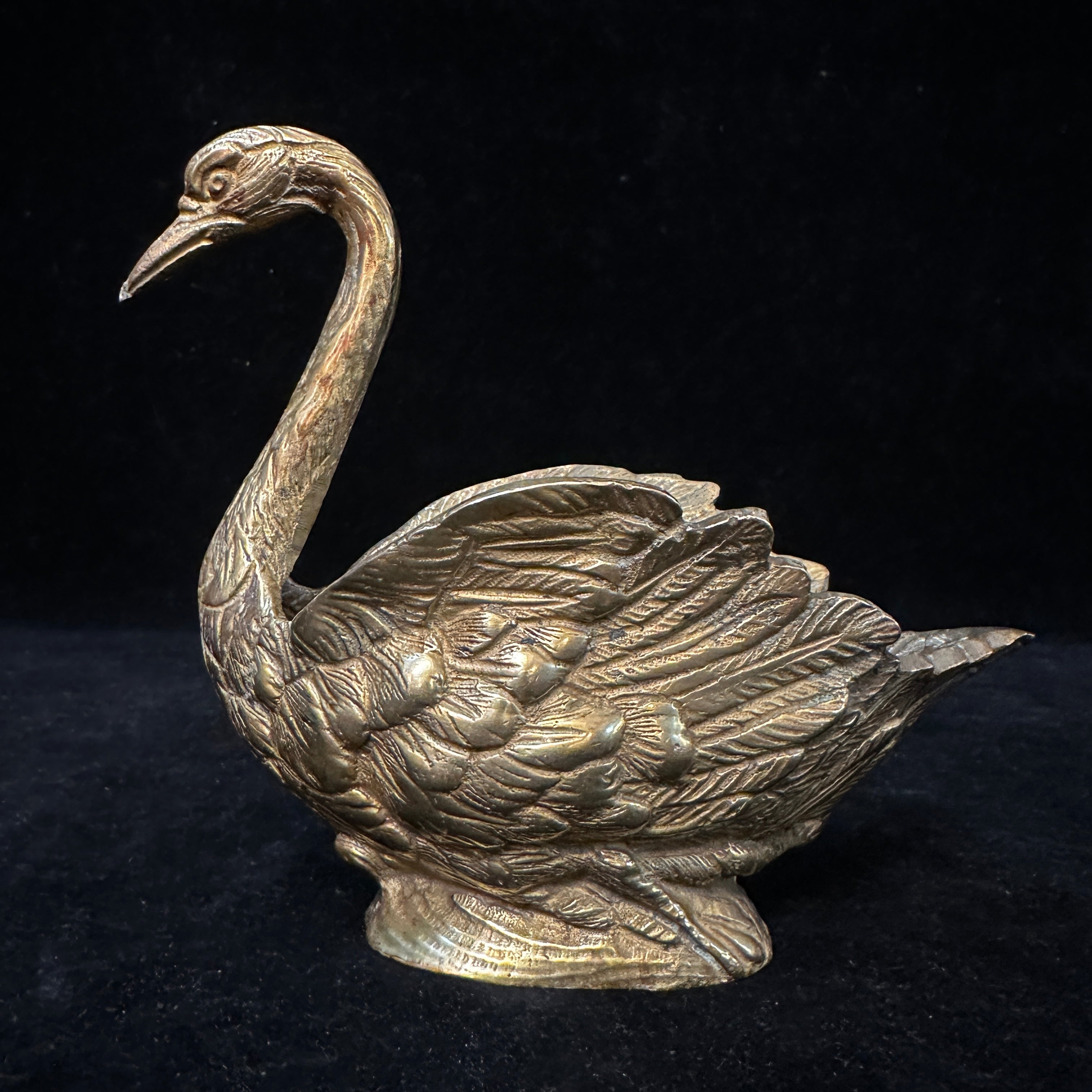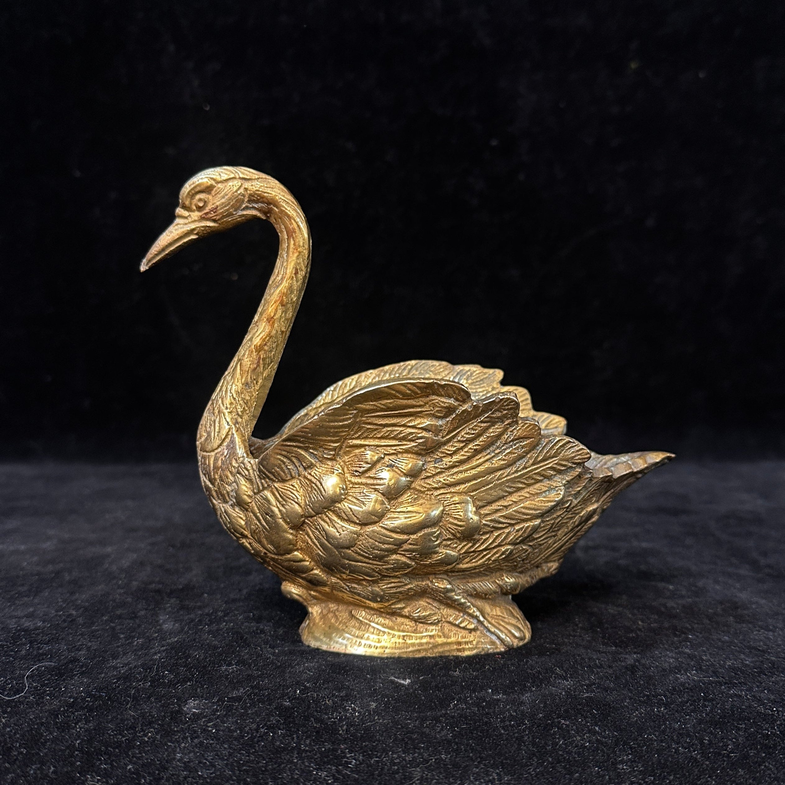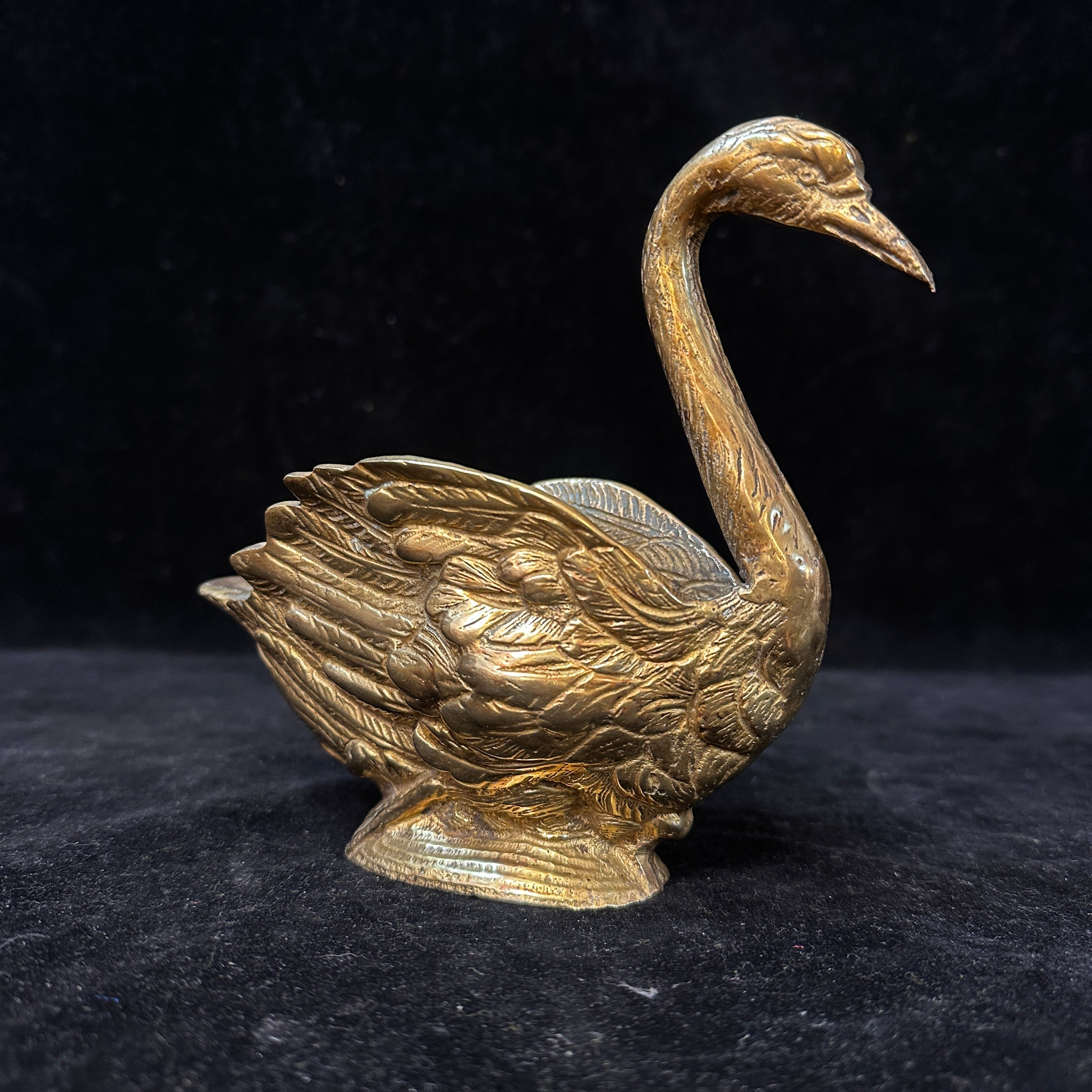 Bella figura en bronce macizo de un cisne en posición de flotación sobre el agua. Diseño de plumaje finamente trabajado.