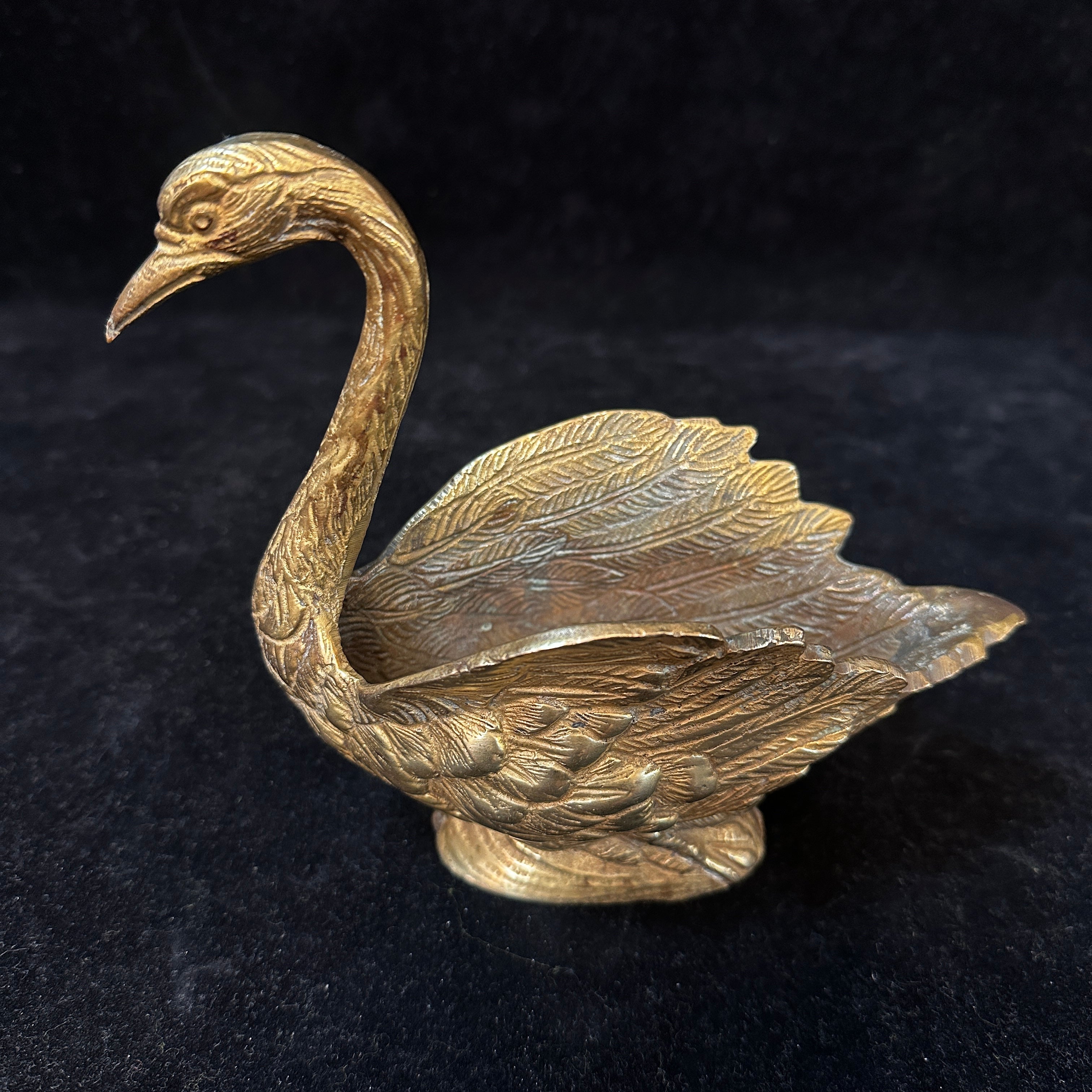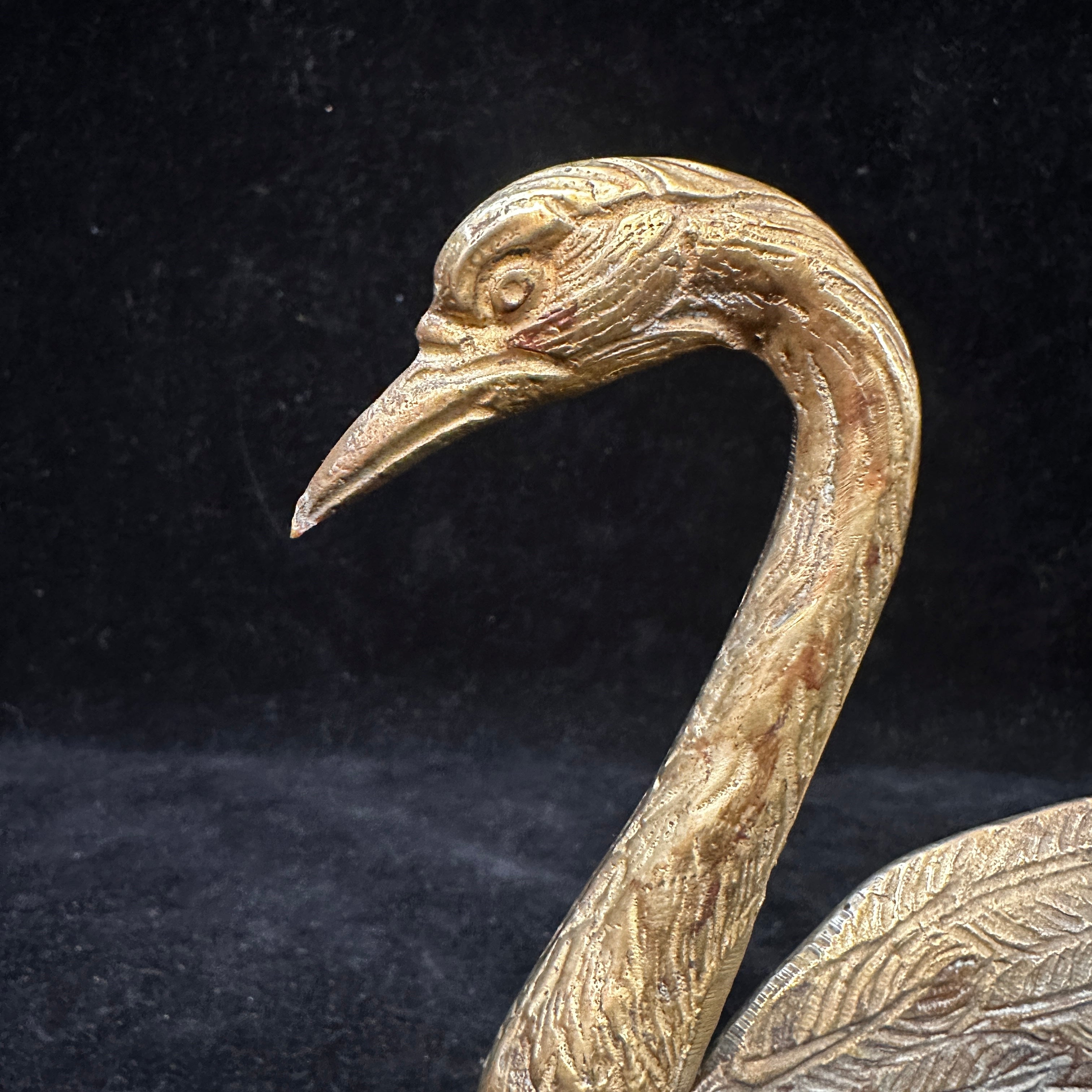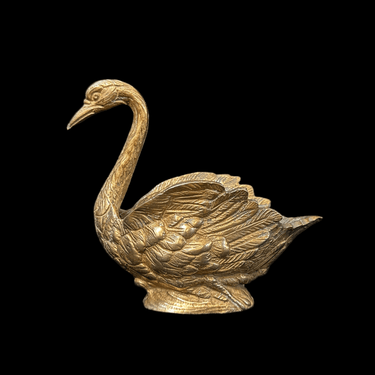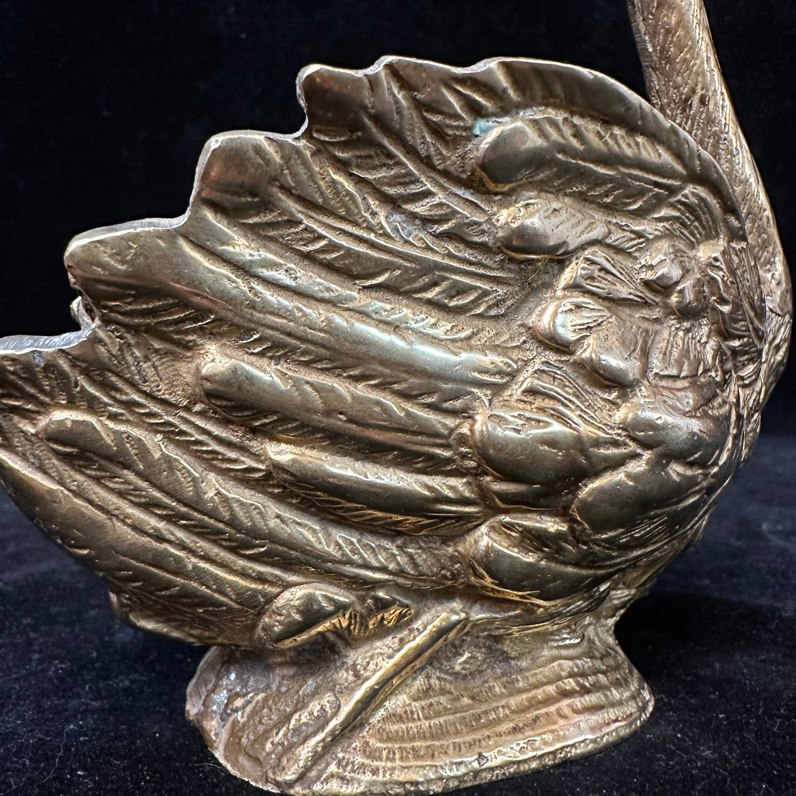 Bella figura en bronce macizo de un cisne en posición de flotación sobre el agua. Diseño de plumaje finamente trabajado.