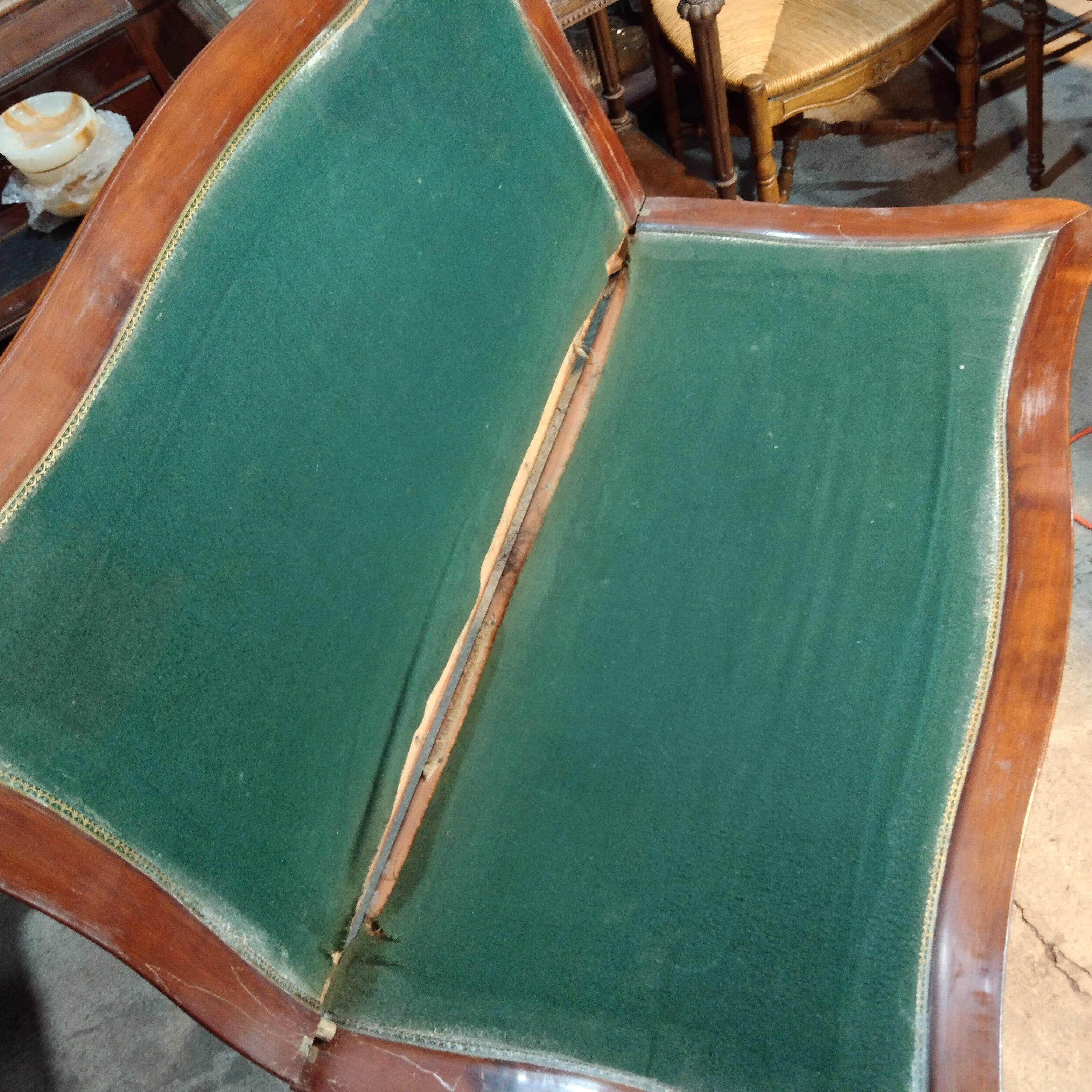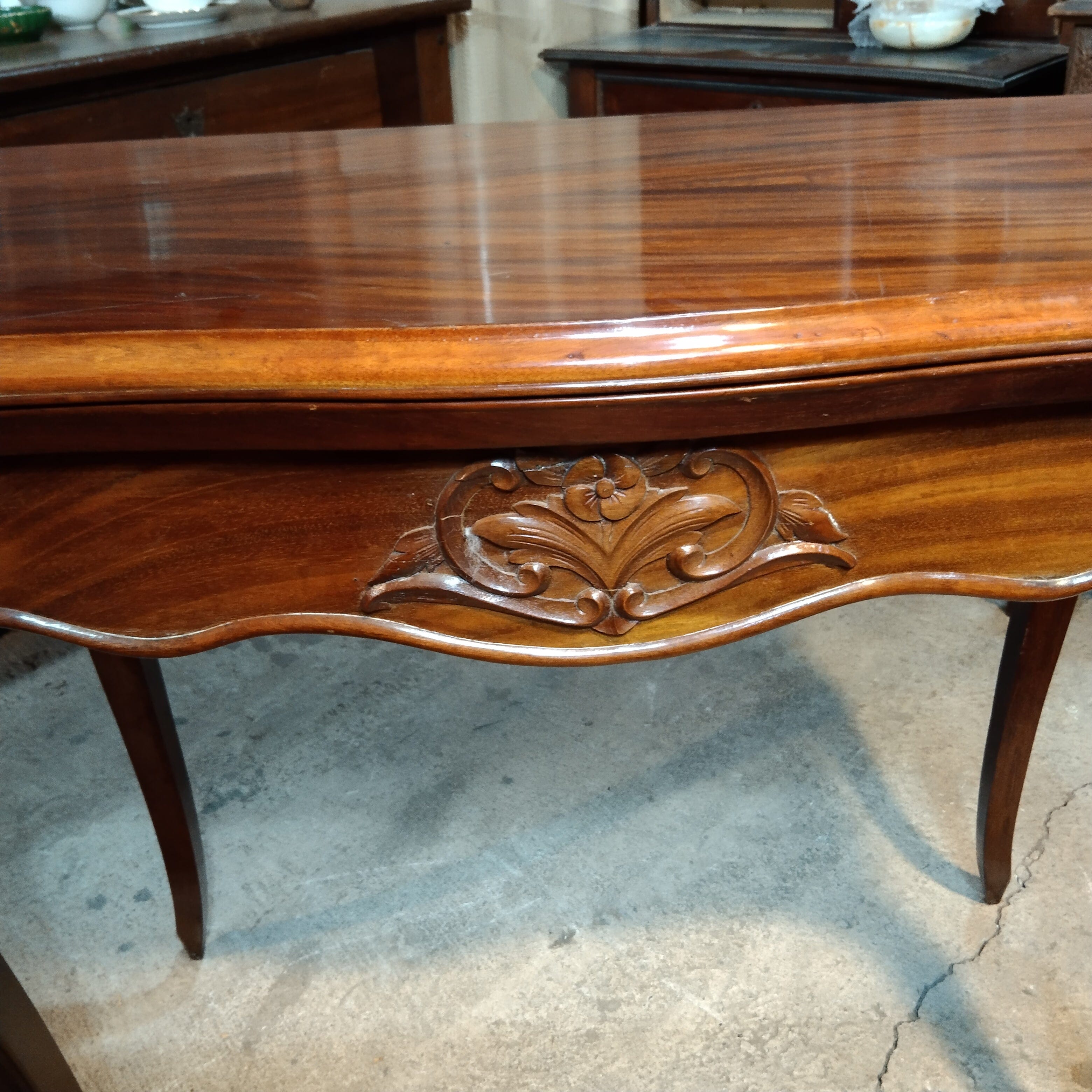 Hermosa mesa de juego plegable en estilo Luis XV, con detalles tallados en el exterior.