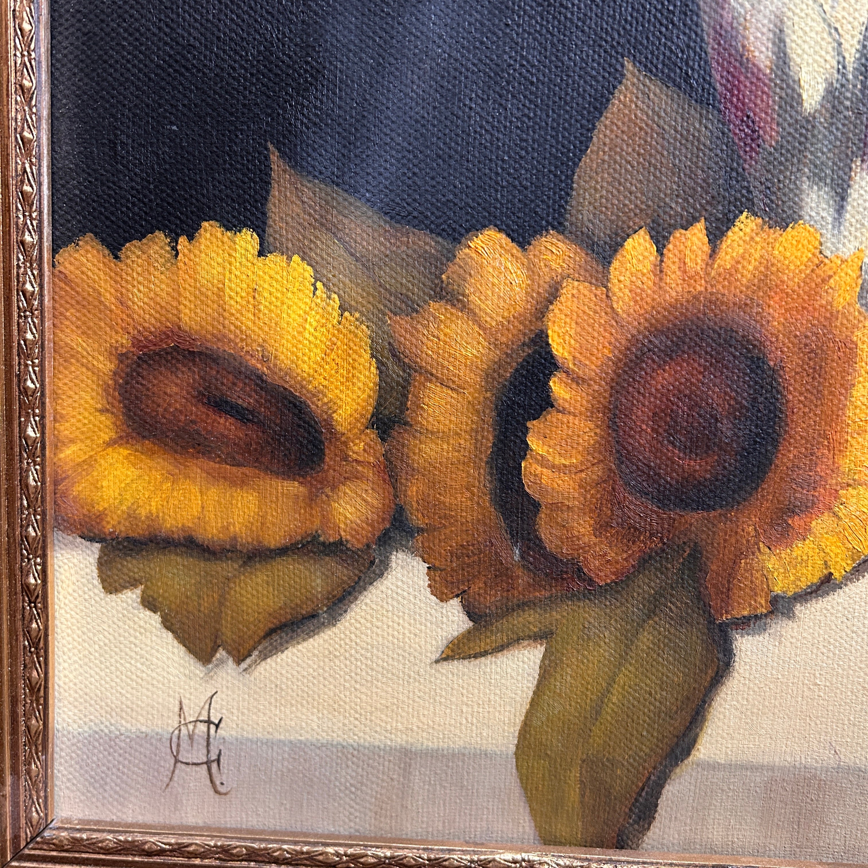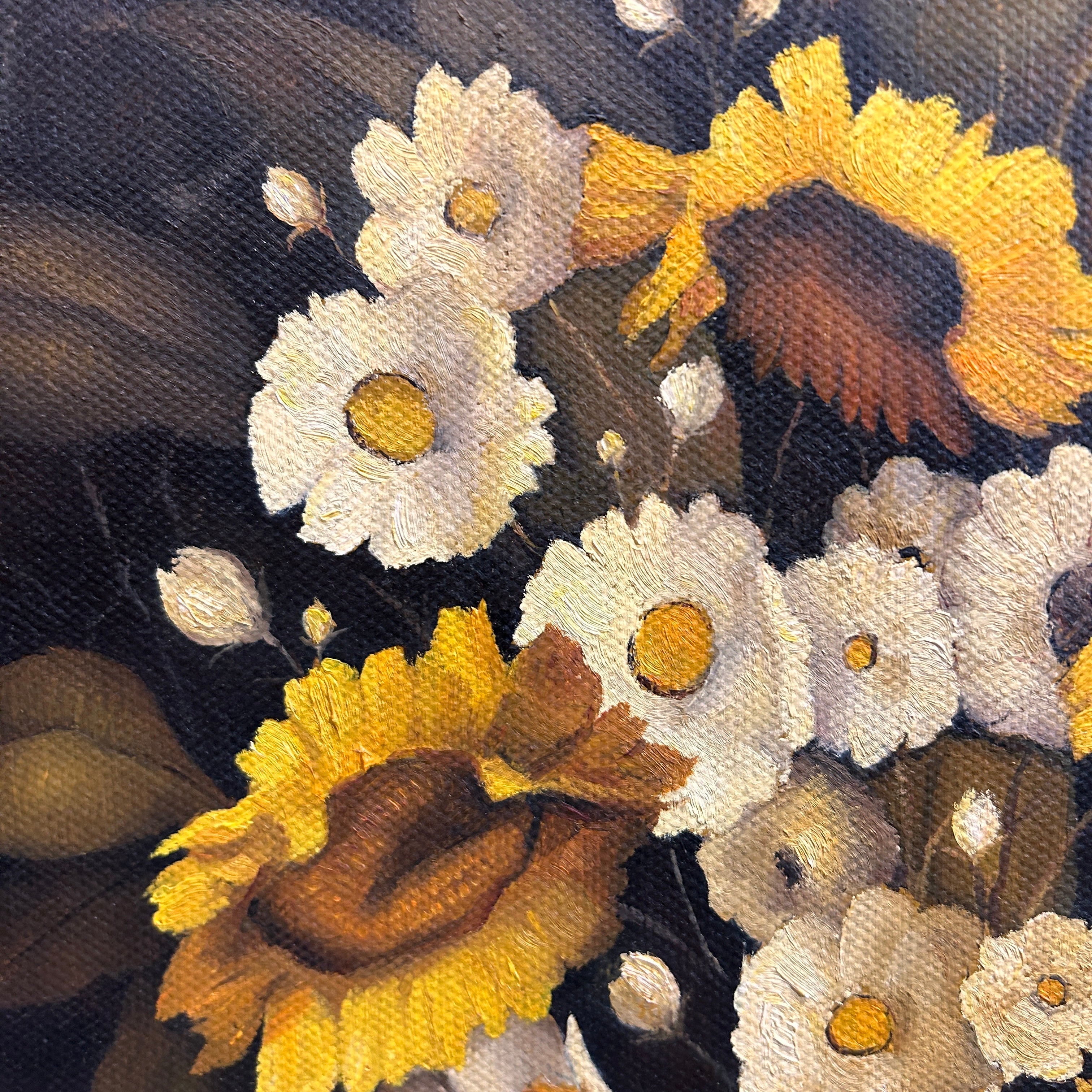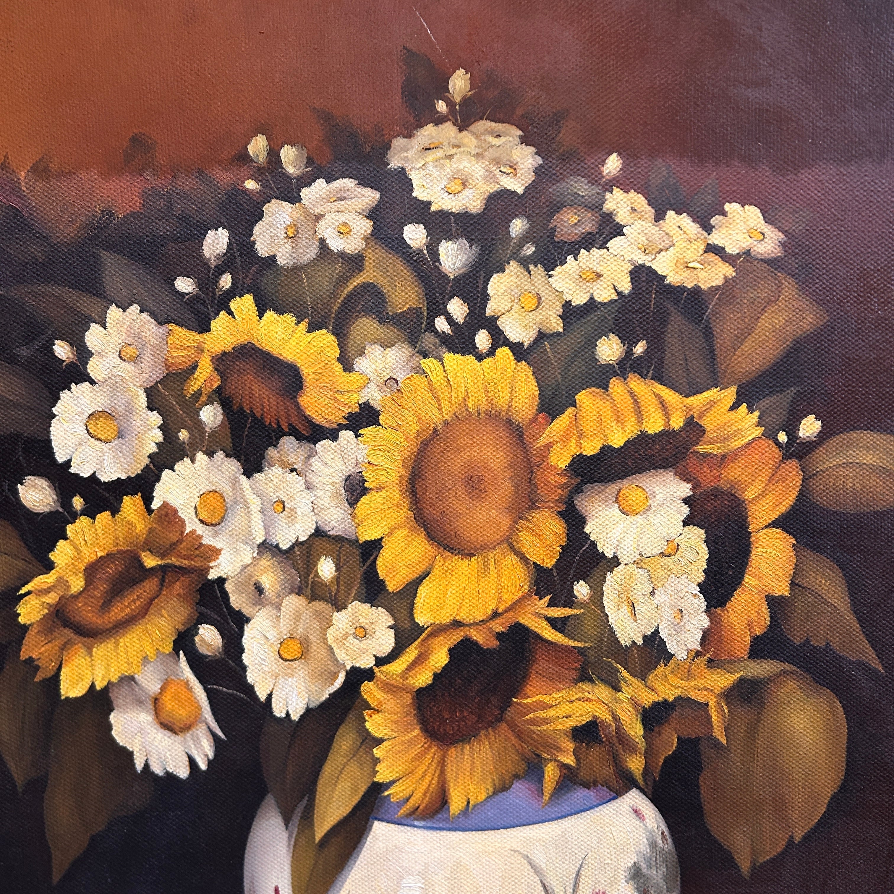 Marcelo Cuevas - Óleo sobre tela Bodegón ‘Margaritas y girasoles’